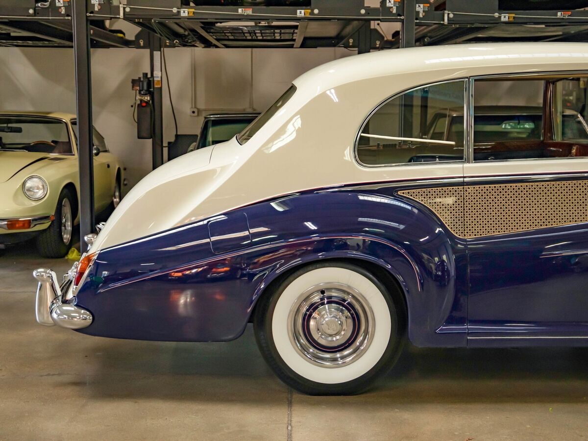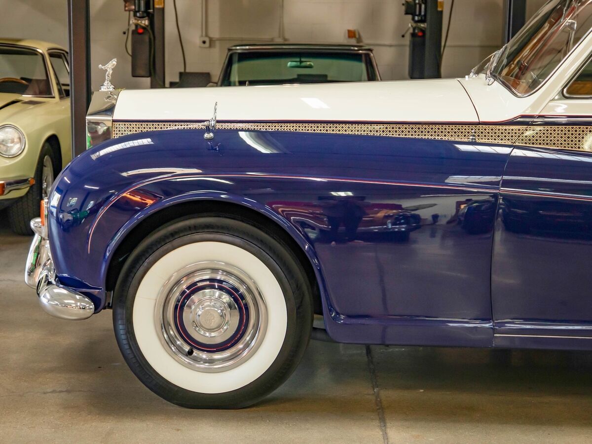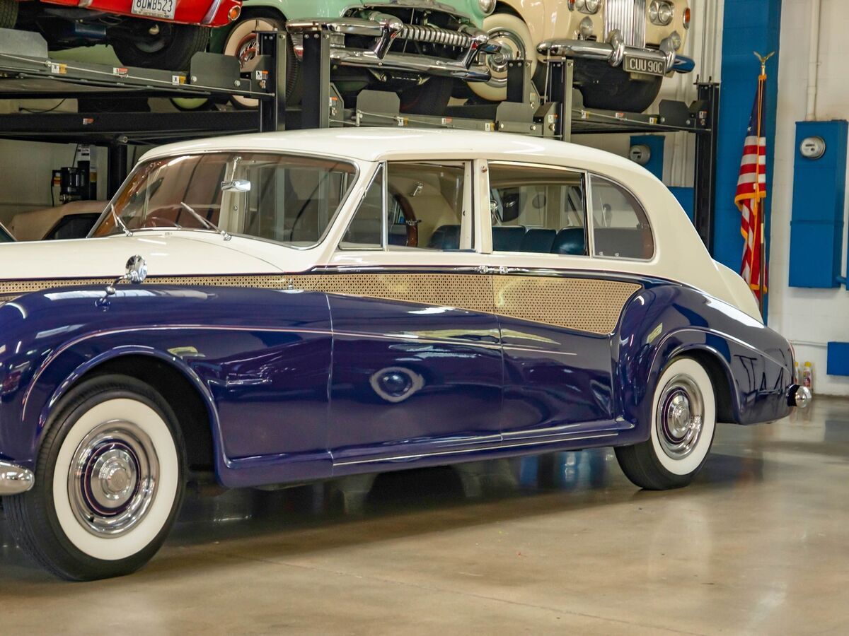The body was liveried for Swinging London, in ivory white and royal blue with panels of decorative sham cane. In this form it surely turned heads at the 1965 Earls Court Motor Show, as is noted on both its build sheet and in Rolls-Royce Foundation records; a book published by its later home, Californias Behring Collection, notes it received a bronze medal at the show. Afterward it was delivered to the original owner B.P. Jenks, of Astbury Hall in Bridgnorth, Shropshire. At one point it was used as the basis for a Top Marques 1/43-scale model.
