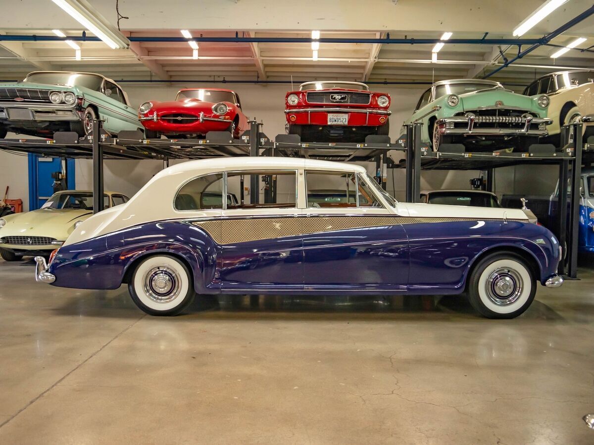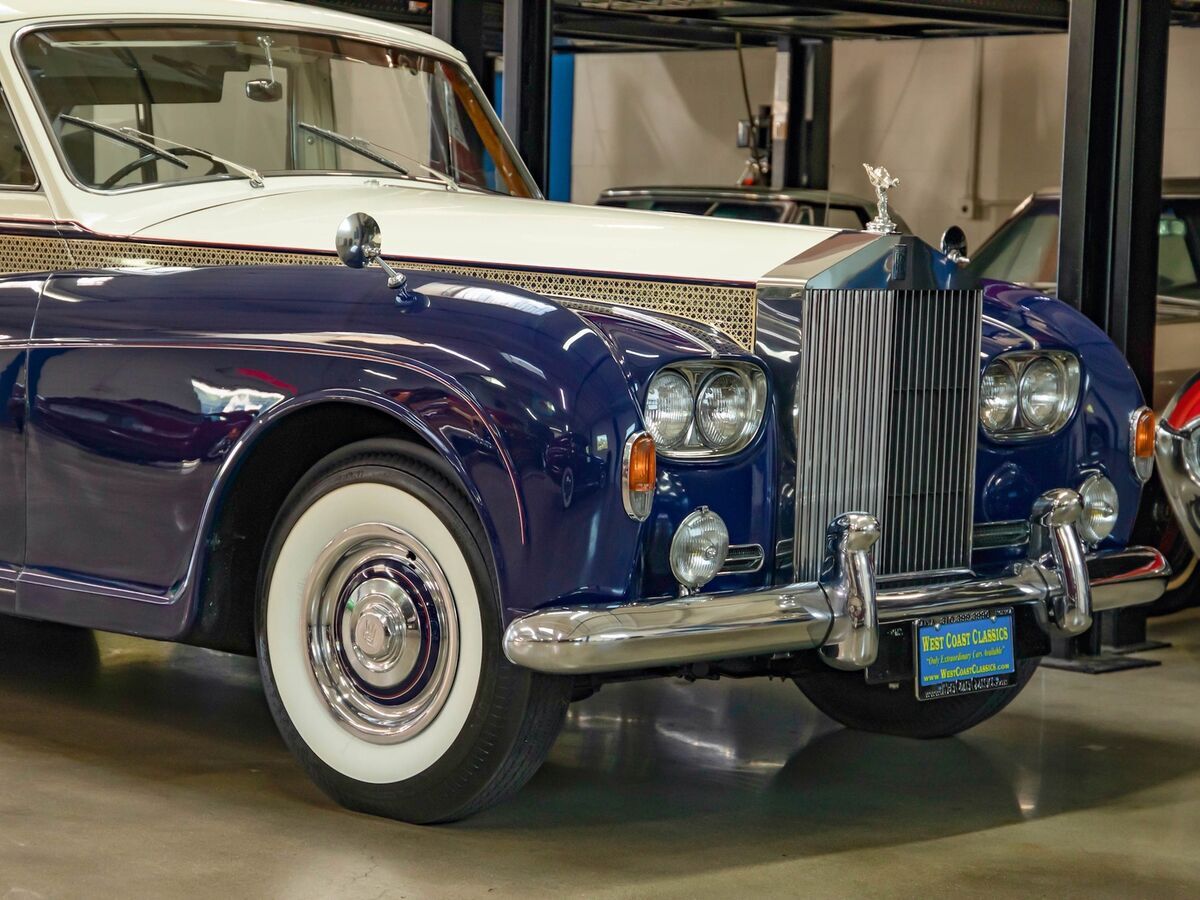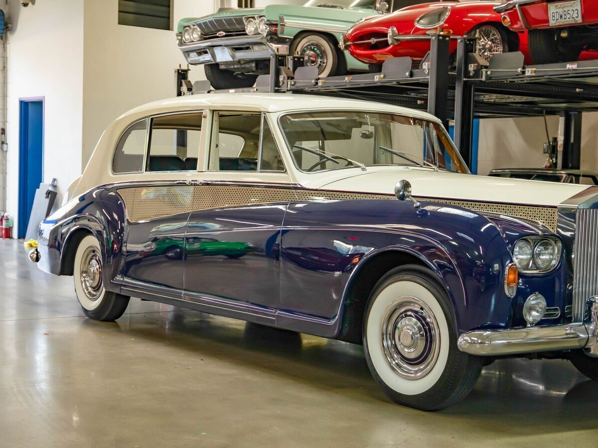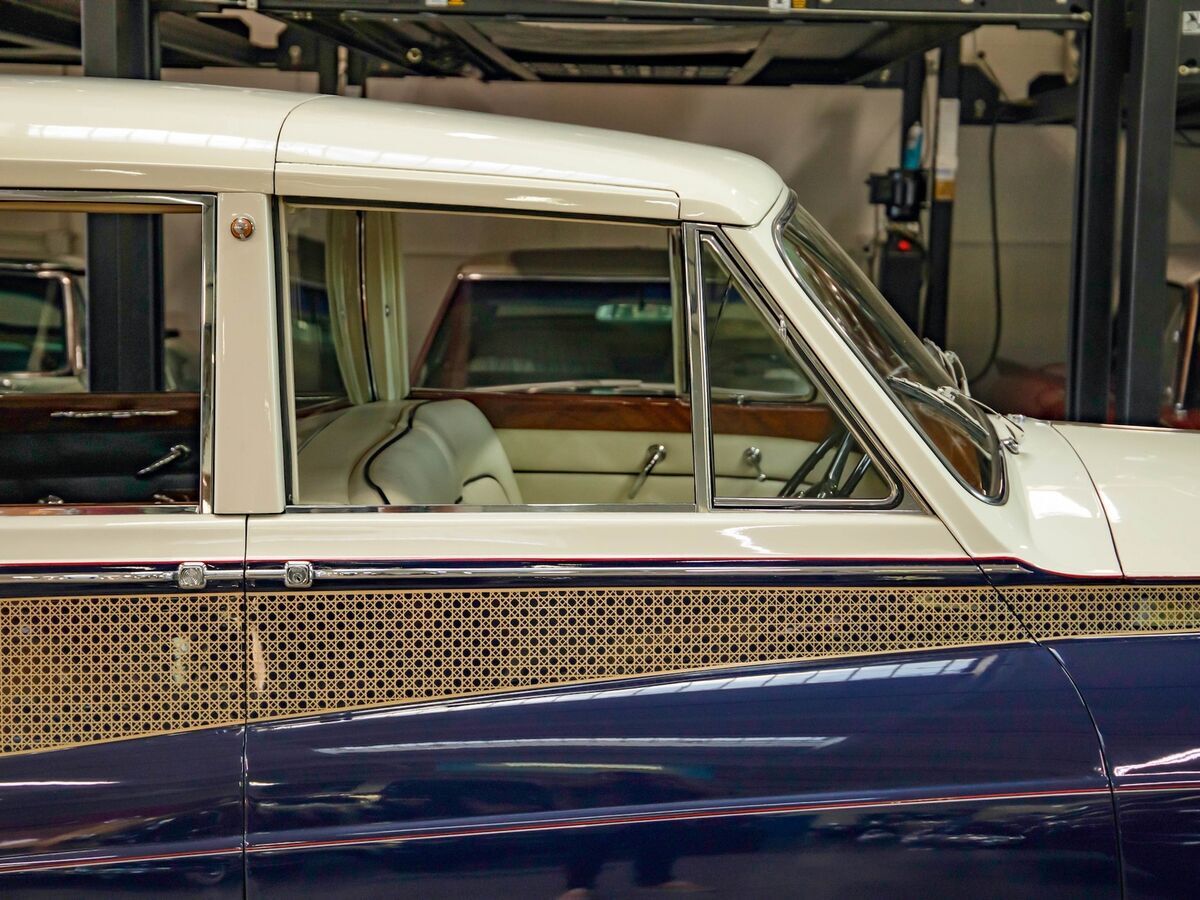 West Coast Classics are proud to present this extraordinarily rare and fully documented 'James Young' coachbuilt 1965 Rolls-Royce Phantom V, Chassis No. 5VE21, one of only 11 open drive Sedanca de Ville bodies built by the renown coachbuilder, and with this particular example as shown at the 1965 Earls Court Motor Show! Recently acquired from the renown Blackhawk Collection and as listed in the legendary Rolls Royce "The Elegance Continues" bibleUnique coachwork by James Young on a Phantom V chassisJames Young produced 11 open-drive Sedanca de Ville bodies for Phantom V chassisThis example was the only car built to the Sedanca de Ville version of design number PV15Formal rooflineTrue 7-passenger interiorChassis no. 5VE21Engine no. E10PVBody no. 9053Shown at the 1965 Earls Court Motor ShowFormerly owned by renowned enthusiasts Dr. Erle Heath and Dr. Samuel Scher6.2L V-8 engineAutomatic transmissionBuild sheetRolls-Royce Foundation recordsCalifornias Behring Collection bookKnown ownership historyFormerly owned by renowned enthusiasts Dr. Erle Heath and Dr. Samuel ScherElaborately detailed and lavishly equippedA fascinating, sumptuous Rolls-Royce; the ultimate luxury statement of its eraRecent 2022 Service CompletedFeatured in Lawrence Dalton's "Rolls-Royce: The Classic Elegance"Hand-painted faux cane-workLeft hand drive6,230cc V-8 engine4-speed automatic gearboxIndependent front suspension with coil springs and anti-roll torsion barRigid rear axle with semi-elliptic leaf springs4-wheel hydraulic drum brakesBustle trunk rear stylingPower windowsLeather upholstery in driver's cabinWilton wool carpeting with lamb wool overlaysBurlwood interior accentsRear jump seats and picnic tablesBar with cocktail requisitesSquare pushbutton door openersSpirit of Ecstasy mascotFender-mounted mirrorsSmiths instrumentsWhitewall tiresJames Young produced 11 open-drive Sedanca de Ville bodies for Phantom V chassis, most of them variants of the coachbuilders PV22 or PV23 touring limousines. The example shown here, chassis number 5VE21, was the only car built to the Sedanca de Ville version of design number PV15, a limousine with a somewhat more formal roofline and a true seven-passenger interior. As the car has a rather early body, number 9053, on a later Phantom V chassis, it is believed that the coachwork may have been built as a standard limousine and then converted by James Young to a limousine de Ville for mounting on chassis number 5VE21. Lavish appointments included a leather-upholstered rear compartment with power-adjustable seat, facing a lighted bar, Mazal clock, and Motorola tape deck, as well as dual front and rear air conditioning systems.The body was liveried for Swinging London, in ivory white and royal blue with panels of decorative sham cane. In this form it surely turned heads at the 1965 Earls Court Motor Show, as is noted on both its build sheet and in Rolls-Royce Foundation records; a book published by its later home, Californias Behring Collection, notes it received a bronze medal at the show. Afterward it was delivered to the original owner B.P. Jenks, of Astbury Hall in Bridgnorth, Shropshire. At one point it was used as the basis for a Top Marques 1/43-scale model.The records of the Rolls-Ro