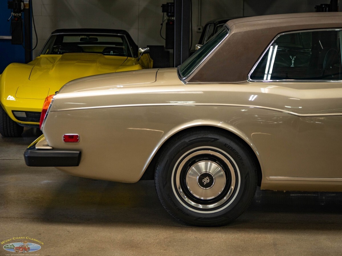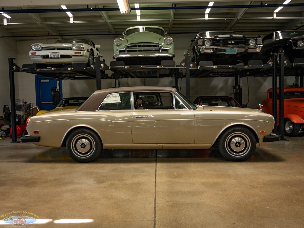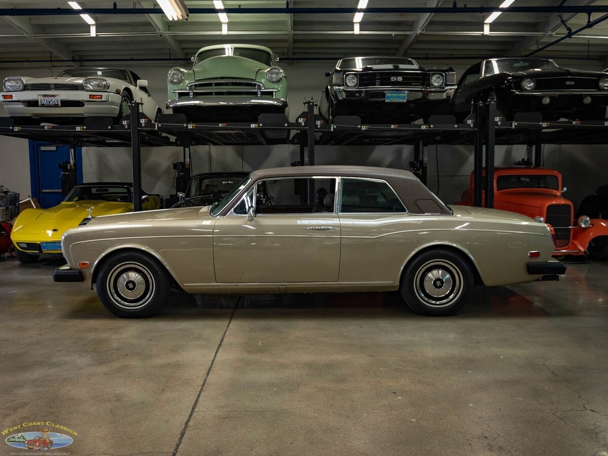 West Coast Classics are proud to present an exceptional and rare all original and stock and therefore very collectible example of this original southern California 1978 Rolls Royce Corniche 2 Door Coupe, coachbuilt by Mulliner Park Ward, with 23K original miles and originally owned by Blake Edwards & Julie Andrews!1 of only 1,108 Corniche Coupes ever built between the 1971-1982 production run.23,132 original milesOriginally owned by Blake Edwards & Julie AndrewsDealer serviced including recent comprehensive full service at renown Rolls Royce specialists. Originally purchased by the renown American film director and Oscar winner Blake Edwards on 8/2/1978 from the Rolls Royce/Bentley dealership, 'Roy Carver Inc' of Newport Beach, CA. A legendary Rolls Royce owner, Mr Edwards was renown for meeting his future wife, the British actress Julie Andrews, in 1966 at a Hollywood intersection whilst driving a Rolls Royce! They married in 1969 and enjoyed over 40 years together before his death in 2010 and he purchased this particular 'Silver Sand' 1978 Corniche Coupe in 1978 and was reportedly one of his and his wife's favorite cars!This particular example is finished in highly striking and virtually flawless all original factory 'Silver Sand' color paint with its original 'Dark Brown' Everflex roof and all original 'Dark Brown leather hides' and matching sheepskin rugs and carpeting.All the chromework including the Rolls Royce grille is in absolutely outstanding condition and the interior has its original 'Dark Brown' leather seats which are in very fine condition with some very desirable original patina but no signs of any significant wear and with no rips or tears. The leather dashboard is also in exceptional condition (always garaged from the sun) and the 'Fawn' mohair headliner is also in very fine condition. The original burled walnut woodwork is also in very fine condition and all the power options including the front electric windows and two rear electric wing vent windows are working as they should.The Silver Shadow coupe was an exclusive model sold in very few numbers (568 in total RR MPW coupes & 98 Bentley T MPW models built between 1965-71) and assembled in Crewe and finished in London at the renown Rolls Royce coachbuilders 'H.J. Mulliner', who had actually already merged with 'Park Ward' and become 'Mulliner Park Ward', and who continued their 1965 Silver Shadow coupes and 1967 dropheads later applying the 'Corniche' name in 1971. The Corniche coupe was discontinued in 1982. Total production of the 'Corniche' coupes (1971-82) was only 1,108 and of the convertibles (1971-87) was only 3,239.The convertible 'drophead coupe' model was reworked in 1986 as the Corniche II (with 1,226 produced), in 1989 as the Corniche III (with 452 produced) and in 1993 as the Corniche IV (with only 244 produced) when production was moved to Crewe after the closure of Mulliner Park Ward and the final form in 2000 was as the Corniche V after which production ceased in 2001.This obviously always very well maintained Rolls Royce engine with only 23K original miles runs extremely strong and these cars are not slow - the engine purrs like a kitten, never stalls or idles rough and is extremely reliable - there is plenty of power to pull away at the lights and it cruises at high speeds with absolute ease. The transmission shift is almost imperceptibly smooth and the temperature always remains cool.This Rolls Royce Corniche is truly a sensual car that you can drive with your fingertips, smooth and relatively silent, it's thoroughly therapeutic for both drivers and passengers. The delightful precision action of the electrically powered steering column gear change and the ultra light weighted power steering allows one to park this 5000lbs of pure luxury with literally one finger and this long but actually quite slender car is anything but ponderous thanks to it's torque and brilliant turning radius! The ride is truly luxurious from a high riding position and the soft feel is like no other car on the road. This particular model drives particularly well and must be driven to be fully appreciated.Without a doubt you will look long and hard to find a finer driving or indeed looking example of this rare all original and very collectible and surviving example of a 1978 Rolls Royce Corniche MPW coupe, an obviously always garaged original southern California car with a storied past and very low original miles!This is one of the last in the original line of cars hand built in the legendary Rolls Royce Crewe factory and then converted at their renown coachbuilders Mulliner Park Ward, of London England, with a quality and craftsmanship that far surpasses that of today's mass produced models with many BMW parts - this is indeed a rare opportunity to own a piece of classic automotive history, from a time when Rolls Royce was truly building the world's finest automobiles - a great investment for the Rolls Royce enthusiast or collector or simply an outstandingly striking example of a very rare and unusual Rolls Royce for the discerning luxury classic car owner!