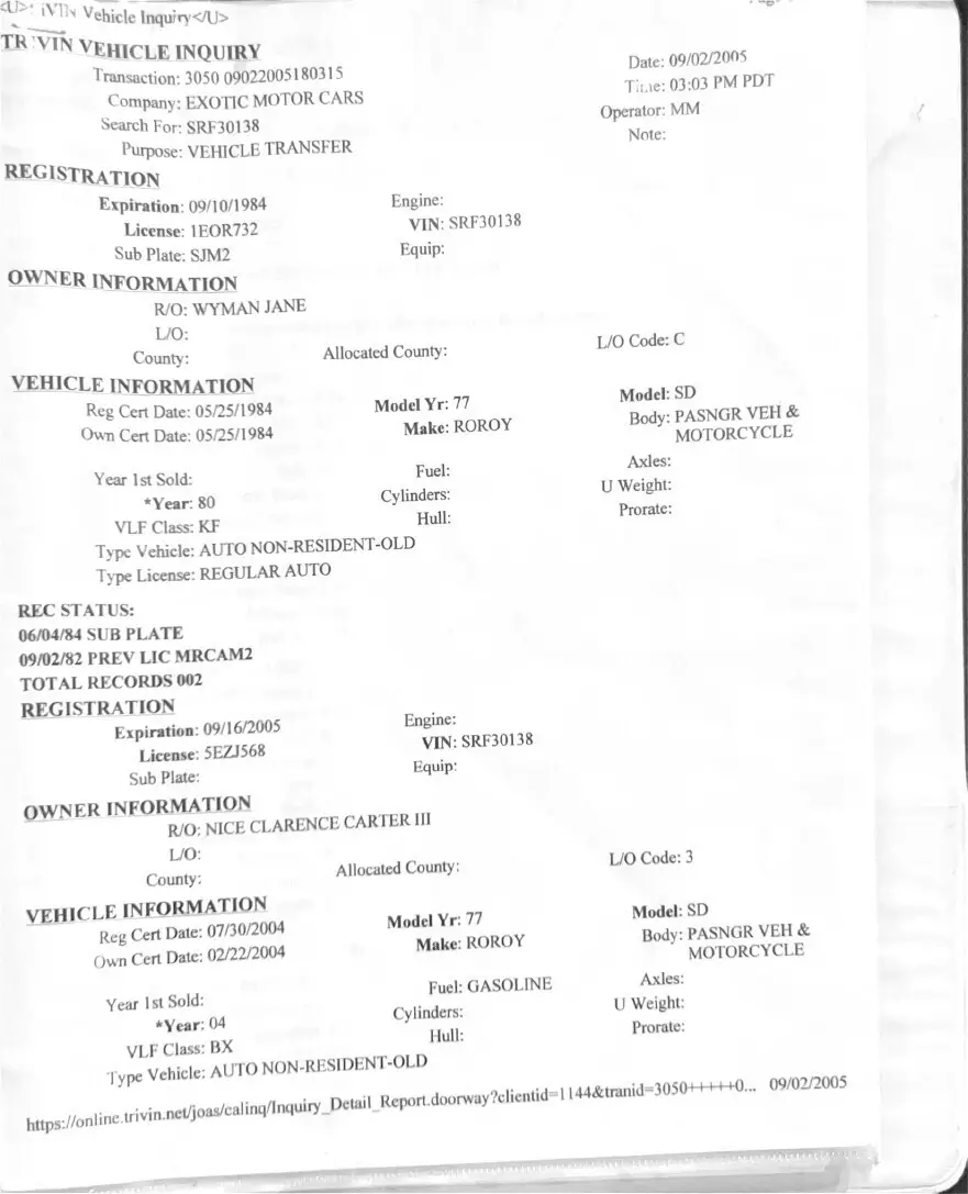 | VIN: | srf30138 |