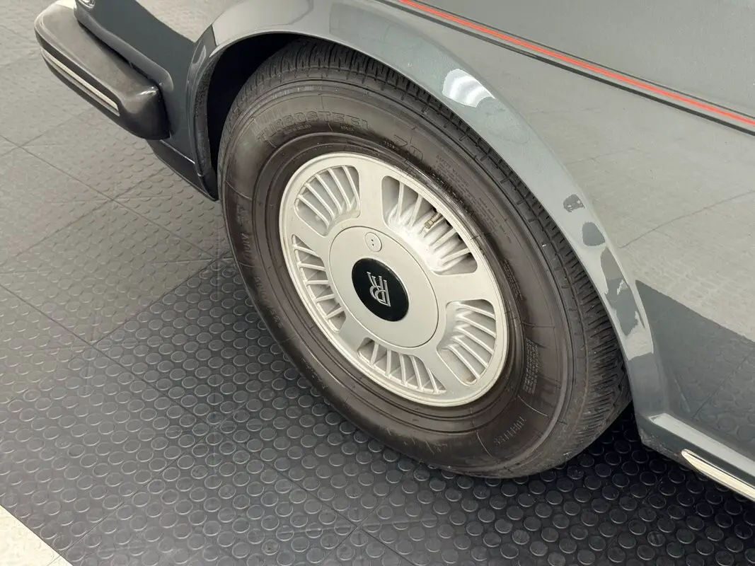 Green-Gray Metallic was skillfully applied to this Rolls, presented on a stunning and elegant profile that the best of the best is known for, here augmented with a red pinstripe on the shoulder line. We simply can't review the exterior without mentioning the legendary grille, emulated by many, respected by all, and flying the Spirit of Ecstasy on top. The high shouldered car is 211 inches long with a long wheelbase that accommodates four full sized doors, and the black vinyl roof is in wonderful shape. The chrome bumpers are mated with black rubber pads and then silver and black is repeated in the bezels of the U.S. spec headlights. The back is almost as regal as the front with wide and high tail lights that fit the proportions of the car and a large flat, deck lid. It's stately and upright and the 15-inch wheels wear 70 series tires. Imperfections include some chipping and cracking paint on the rocker panel and some touched up scratches on the body.