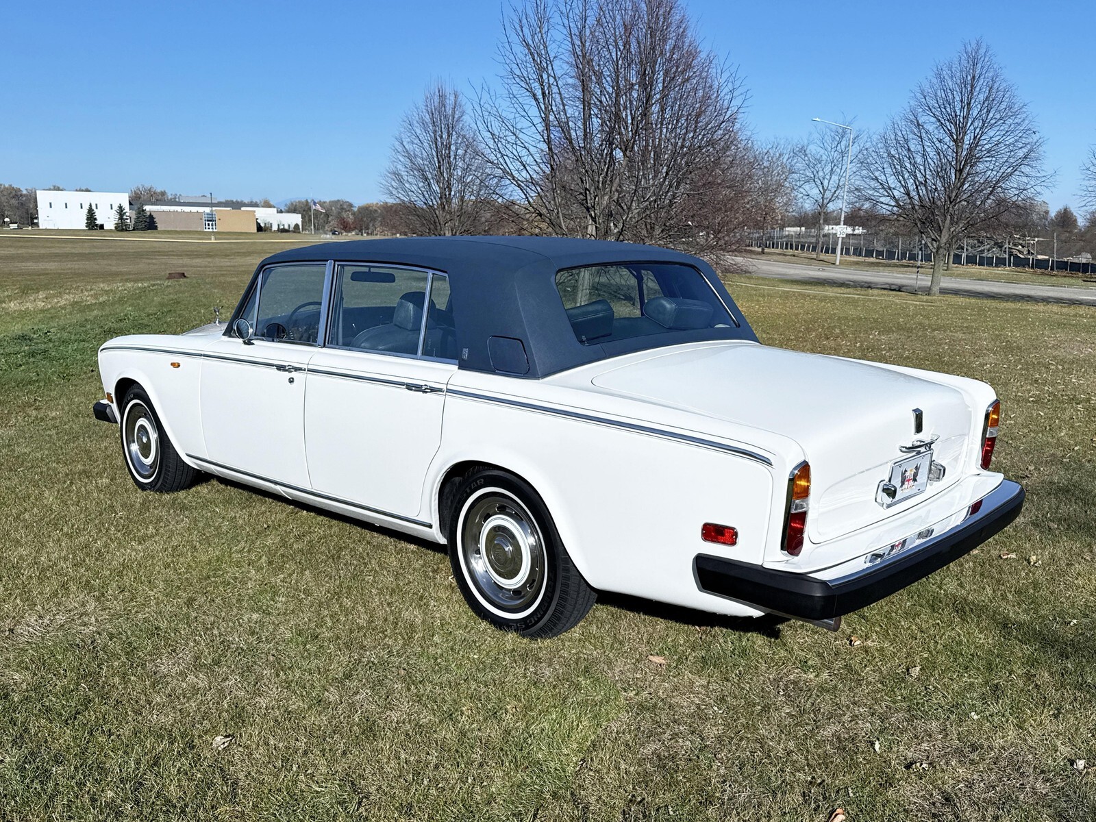 The body on this Silver Shadow is very straight and the paint is shiny and lustrous. The car still sports its original paint and is in immaculate condition. When you look down the sides of the car, they are very straight and true. The paint presents beautifully with only the most minor little mark here and there from use but consistent with a low-mileage car. It needs nothing other than a wax from time to time. The Everflex top is also original and in perfect condition.