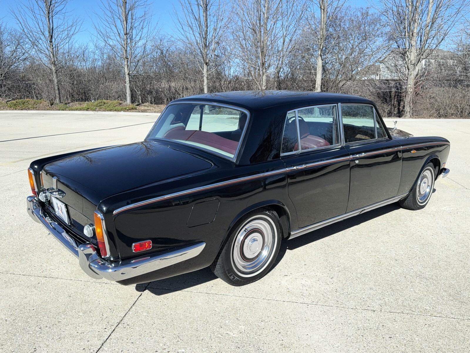 This is a gorgeous presenting Silver Shadow sedan finished in Masons black with rich burgundy Connolly hide interior. It has a hand-painted single burgundy fine line to the waist-rails and hubcap beauty trim rings complemented accordingly.