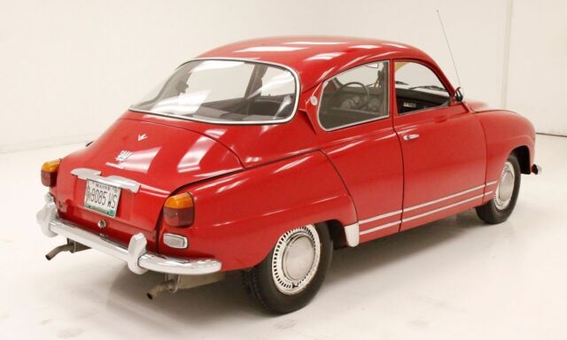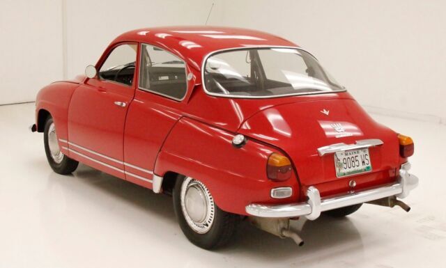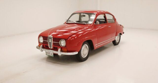 For consignment, one of the first Saab 96's to be imported into the US with the new Ford V4 engine which is a 4 stroke engine. This red painted bean was bought from an in process restorer with wide eyes larger than his abilities, so our consignor took it and gave it TLC. Today it runs great but sadly spends most of its time in a garage in Maine, far away from our restorers residence here in Pa where he spends most of his time. Our knowledgeable consignor has lots of pertinent info, only some of which I will convey in this description, but you are buying it from a very intelligent and thoughtful restorer who did his utmost to retain much of its originality right down to the freewheeling plastic and working pedal. ( A first for this test driver/writer.) So join me on this description journey.