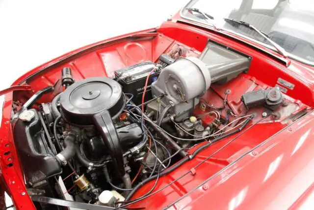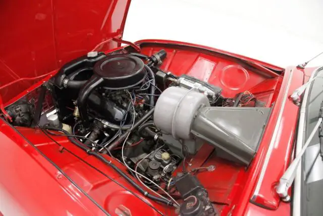 Starting with stripping and totally repainting it is now bathed in "Arrest Me Red!", ( Thanks Hagerty!). A total stripping and any body work was completed prior to the painting. All new rubber seals were then installed. Some previous rusted rear shock mounts, ( a common problem with these cars), was remediated with new metal inserts and are stable and strong. The front of the car has beautiful chrome with an Alfa Romeo styled vertical central grille, flanked by a single headlight. Formed and rounded front fenders and a curved to match the shape in the body front bumper gives it an aero retro feel. Straight steel runs back to the rear and on the way has nicely minded gaps in the doors as well as dual chromed rocker trimmings A small plate in chrome protects the fore part of the rear rounded protruding fender. It has VW-esque small elephant footprint tail lights topping it and this corresponds with a gently sloping Swiss Alp-like rear glass and trunk deck. Shiny large dog dish wheels are in all 4 corners. This car has a wonderfully unique, yet familiar with the 60's styling exterior. You'll love it or hate and I'm in the former category. Proscht!