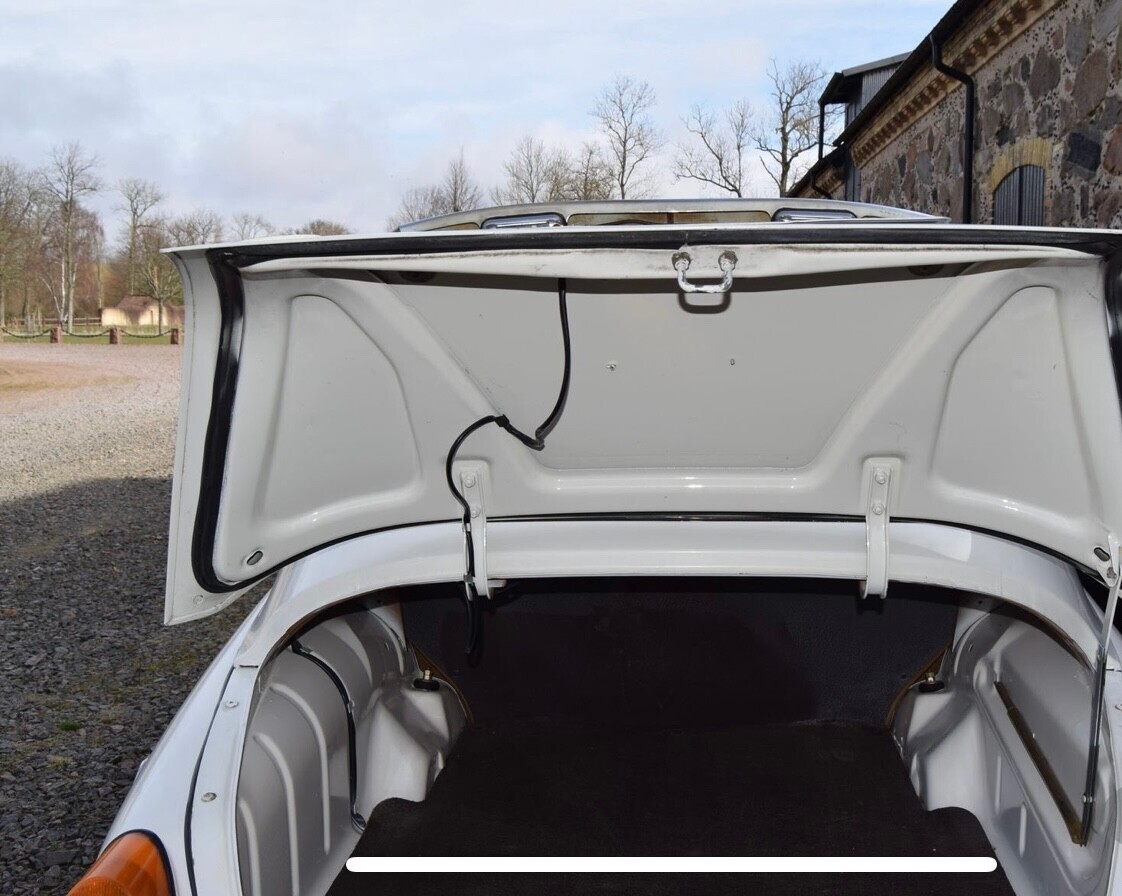 The car has been serviced and inspected in january 2025.New brake cylinders and hoses.The car overall is in excellent condition, the Ford V4 engine spins nicely and the 4 speed freewheel gearbox works flawlessly. The 2-port Solex carburetor is well tuned and the automatic choke is functional. The engine and enginebay have been thourogly cleaned and detailed.Original interior in good condition with few signs of wear. The top of the back of the rear seat is sun-bleached and has a couple of small holes. Well-preserved carpet in perfect condition, protected by original rubber mats. The car was repainted from brown to Saab's original polar white W1 in 1990. The paint has held up well. Bumpers and moldings in good condition, original rims with stainless hubcaps and good summer tires. This is an enthusiast car in good condition, ready to drive for the summer's events.Vehicle information from the Swedish Transport Agency Vehiclestatus: In traffic 2025-01-18Original inspection: 1977-08-16 (typbes)