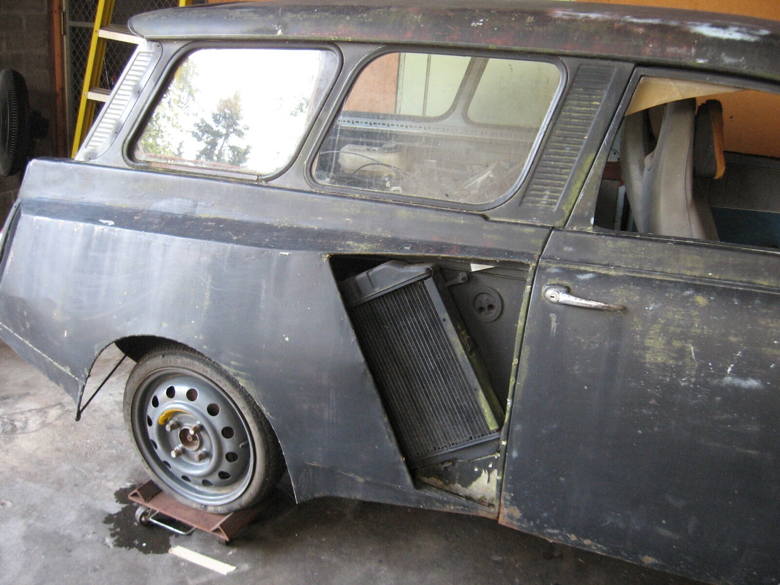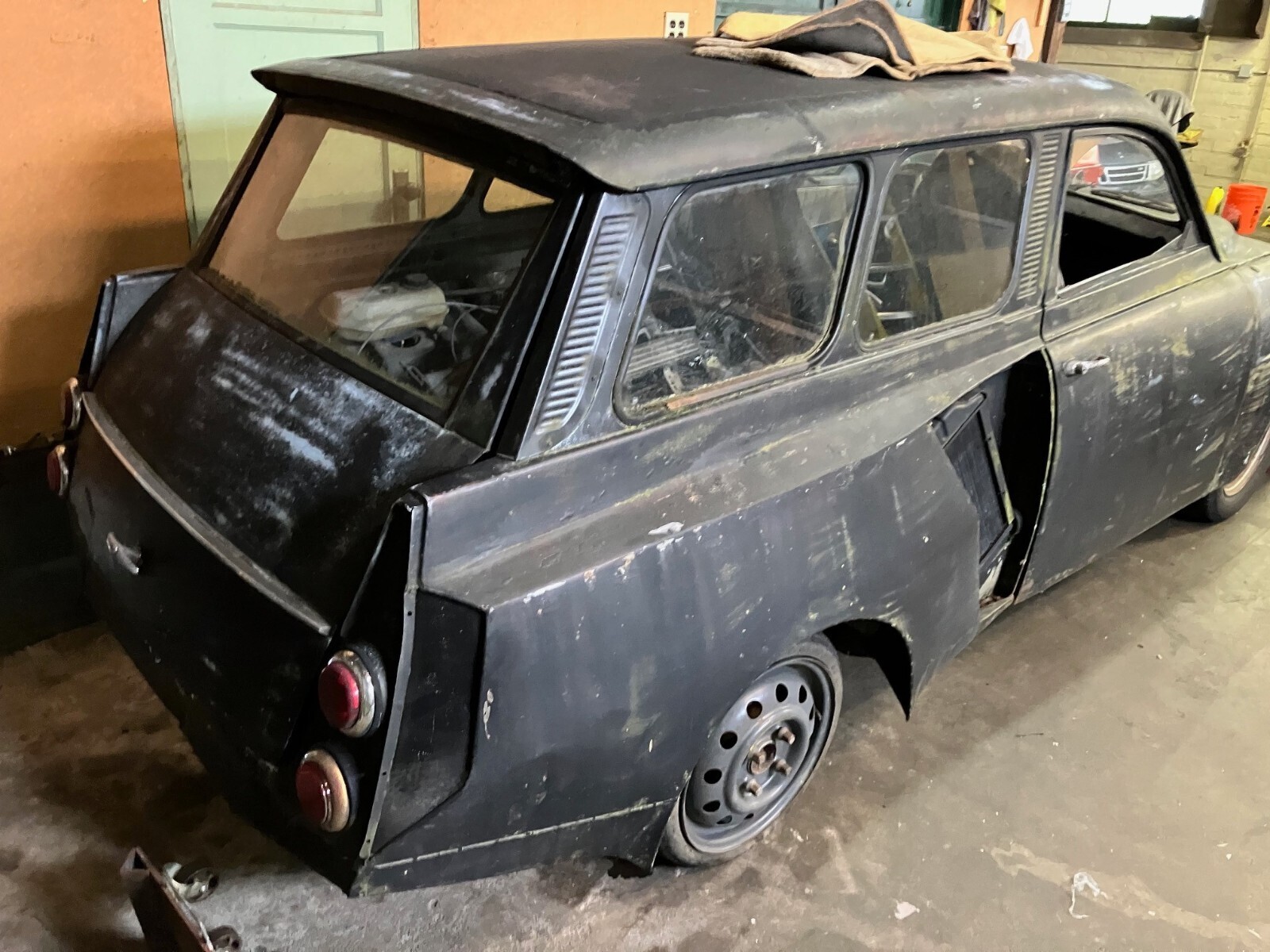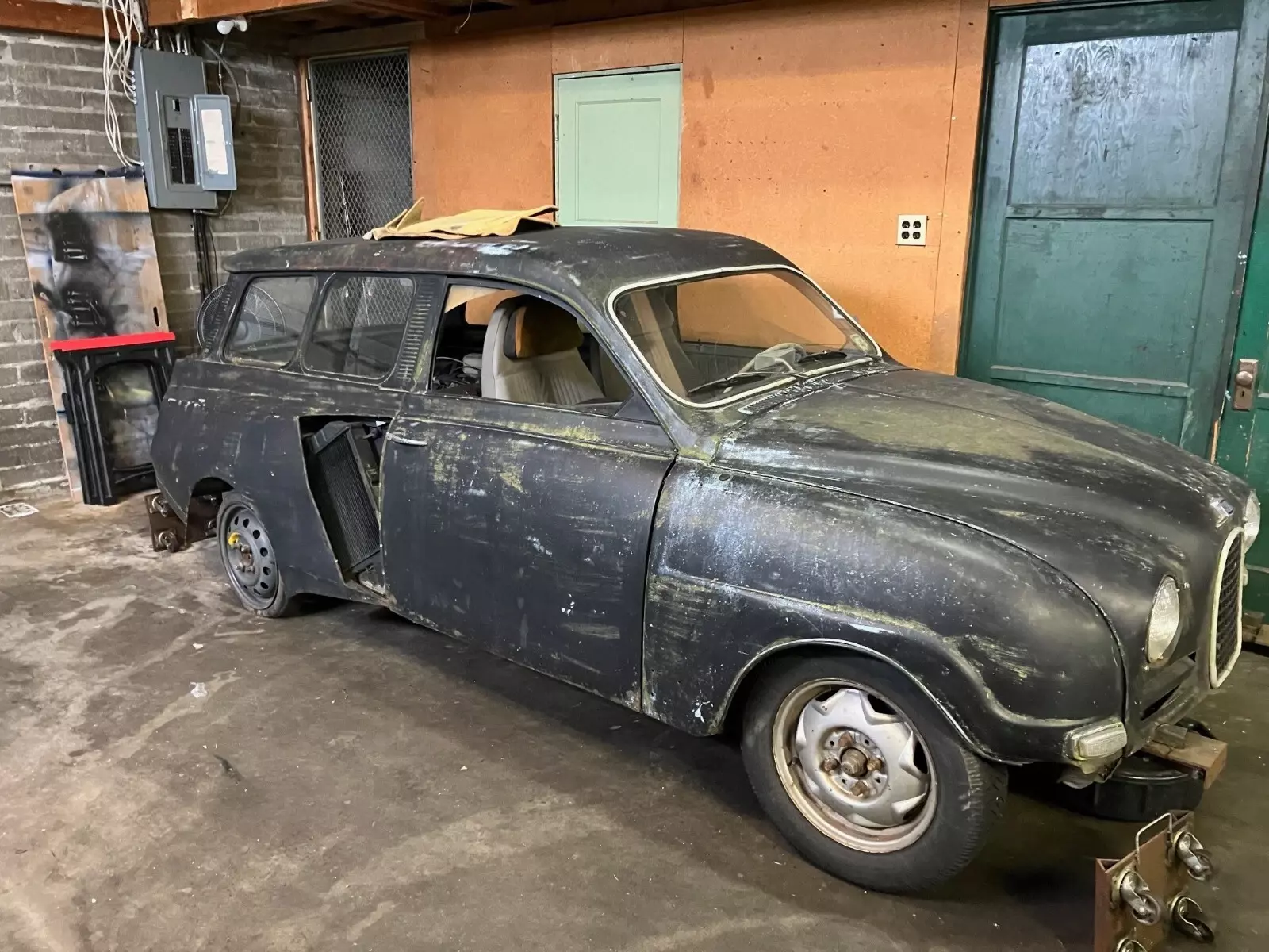 1962 Saab 95 wagon converted to rear wheel drive using a classic 900 turbo drive train. Here’s a one off car that was built in the late 80’s by Rick Parr of Parrformance in Pennsylvania. After seeing the listing on Saabnet.com, Rick Parr and his son Jeremy contacted me and I learned more about the car. The car started life as a 1962 95 two stroke wagon and the builders cut and fit a late 80’s c900 16 valve turbo drivetrain into the back driving the rear wheels. It’s truly a wild build that is very well engineered. There’s no second or third row seat – it’s all engine and trans. The rear fenders were custom built and widened to accommodate the extra width of the c900 drivetrain. All the electronics to run the motor are built into a panel behind the front seats. The bracing in the rear is custom built and doubles as a jacking point. A custom locked steering rack is fitted to the rear. The car was running and driving and driven to the 1987 Saab Owners Convention in Delaware. The trans is an automatic to ease installation issues. The fuel tank, battery and spare are placed in the front where the two stroke engine was. The fuel tank is missing and the car does not start or drive. There is a rectangular fuel tank tray in the front. There is a fuel pump fitted and I used a plastic gas tank for a fuel supply. I removed the pump and bench tested it and it does work. I changed the engine oil in anticipation of it starting. The pump runs as expected when fitted to the car and the engine would turn over but not start. The wagon retains the stock front end of the 62 wagon and was not widened but is fitted with mid 80’s c900 front brakes. Four bolt wheel hubs all around from a c900 as well as the seats. The turbo is intercooled and you can see the intercooler in the side pictures. The radiator and air intake are also located in the sides. The exhaust is a Supertrapp muffler that comes right off the turbo. A C900 instrument cluster is fitted and operational. There is no key to start it. There is just the ignition switch operated with a screwdriver. The underside is fitted with a steel plate from the firewall to the engine. There is some surface rust on this plate and in the engine bay. It will need to be trailered. This is a huge project with the end result of a truly unique Saab. Car is located near Tacoma WA. Clear title. True mileage unknown.I’d be happy to answer further questions.