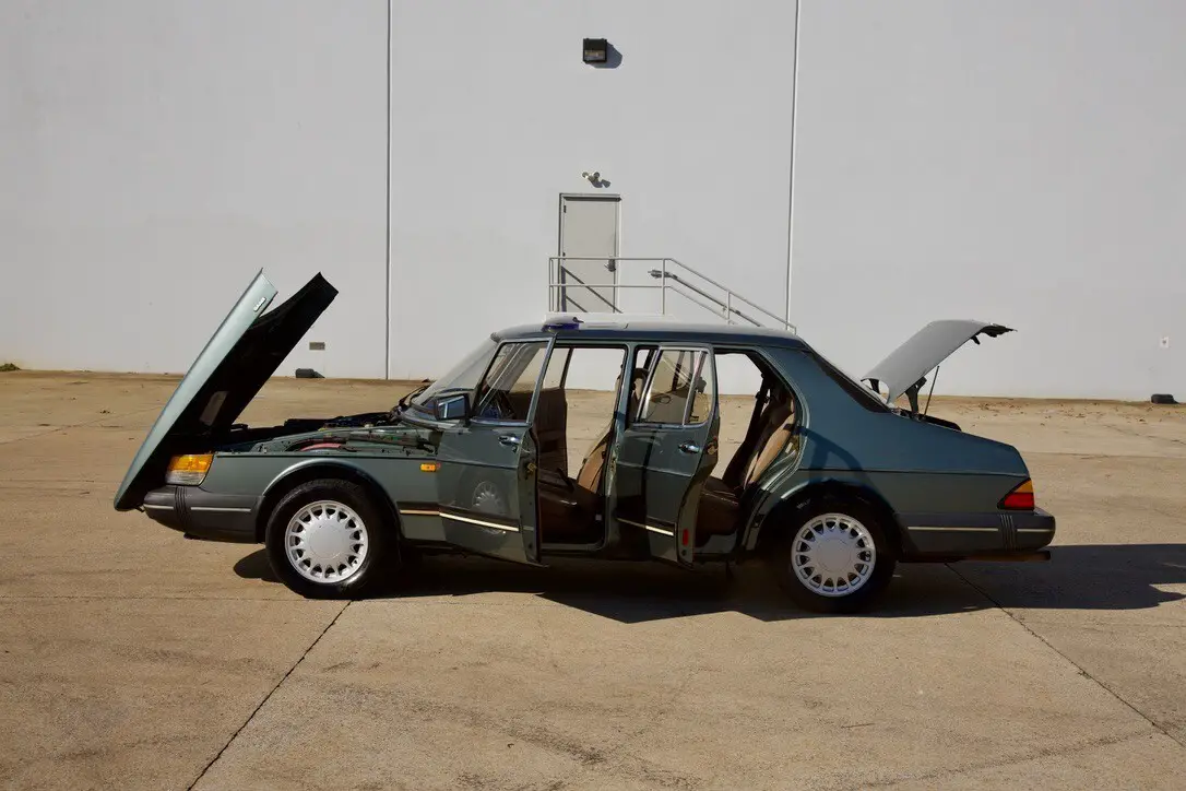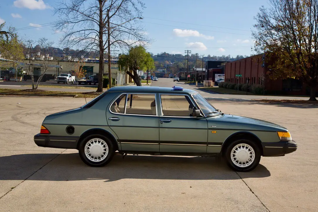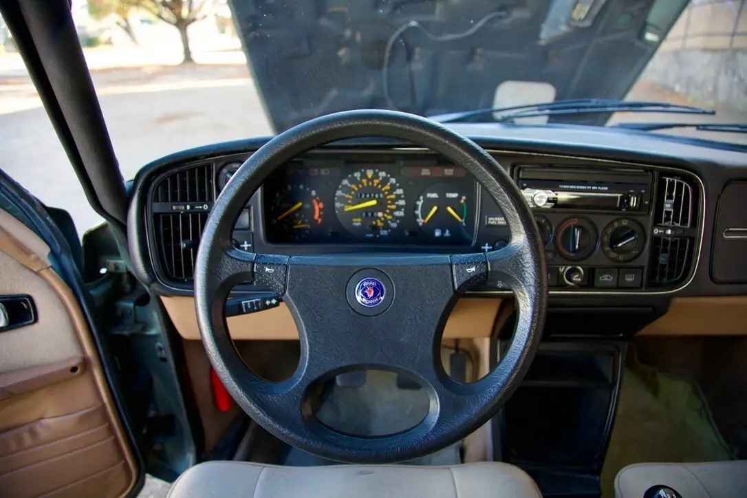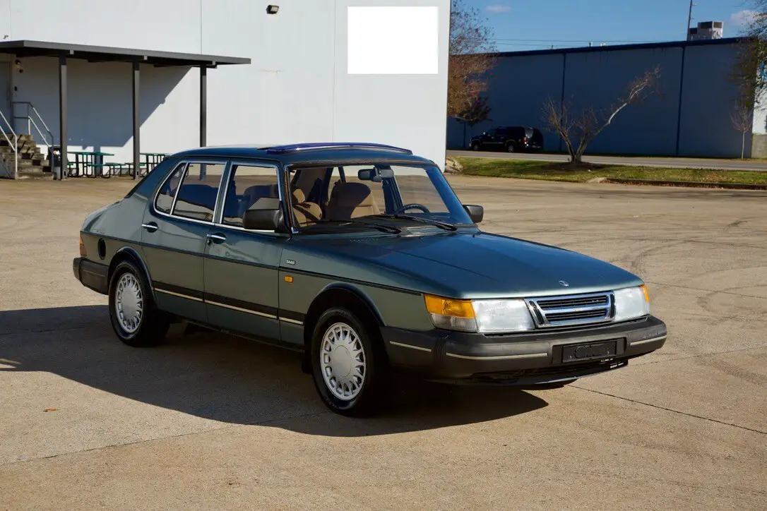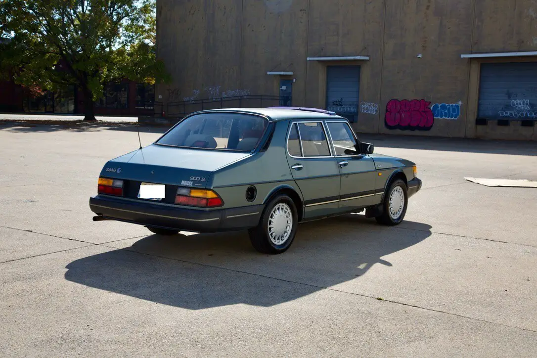 The 1989 Saab 900 S is a classic car with a tan interior and green exterior. This manual transmission vehicle has a 2.0L gas I4 engine, providing 128HP. It features a comfortable sedan body type with 4 doors, seat heating, climate control, air conditioning, cruise control, power locks, electric mirrors, and a navigation system. With a clean vehicle title and safety features like fog lights, this Saab 900 S is a stylish and reliable option for any car enthusiast looking for a unique driving experience.