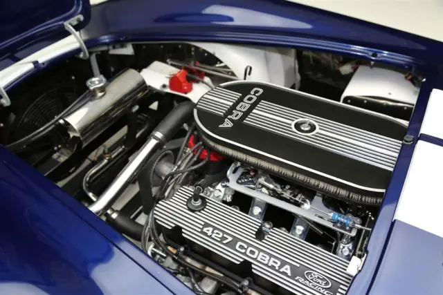 BACKDRAFT 1965 SHELBY COBRA, ELECTRIC BLUE WITH WHITE SHELBY STRIPES, BACKDRAFT, ONE OF THE BEST COBRA BUILDERS, SCARY FAST 427/535 HP,LOW MILES, LIKE NEW ROLLING ON CORRECT 18 INCH KNOCK-OFF SHELBY RIMS