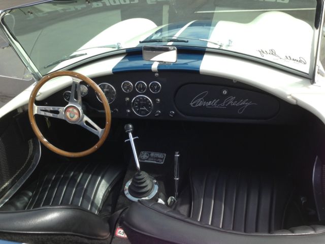 Authentic 1965 Shelby Cobra 427SC Continuation built by Carroll Shelby. CSX4948 The Shelby Cobra is arguably one of the world's most famous and recognizable sports cars today. Today's CSX 4000 Series 427 S/C component vehicles from Shelby Automobiles, Inc. are everything the 1965 models were and more. The authenticity of each vehicle is documented by Shelby CSX numbers and a manufacturer's Statement of Origin (MSO) from Shelby American signed by Carroll Shelby himself. Era correct coloring Wimbleton White with Guardsman Blue stripes. This is one of the last to be built and SIGNED by Carroll Shelby. The man sat in this car! Official Shelby registry and titled in Utah as SHELBY COBRA with VIN CXS4948. Copy of original MSO signed by Carroll. Like all of the authentic Continuation Series Cobras, this one was sold by Shelby American without an engine and transmission (called a “roller”) and ready to finish with the powertrain of your choice. As a roller this sells for $100k+. Finished by Gregory Motorsports. An authentic 1960’s Cast Iron Ford FE block was located and built to spec. The block alone is a collector item and worth a fortune. Producing incredible power, known for running 0-60 in under 4 seconds. Careful consideration was put in to get this gem to as close to the original build as you can get. Holley carburetor, ceramic-coated side pipes, aluminum radiator, electric cooling fans, oil cooler, Tremec TKO 5-speed gearbox, 4” round-tube frame, Halibrand-styled knockoff wheels with street legal tires, coil-over, rack & pinion, Shelby race-quality brakes, SS rollbar, 'correct' reverse-winding speedometer, original-style hardwood steering wheel, fiberglass body, Carroll Shelby's personal autograph on glovebox door! Less than 300 miles. Dry climate stored and like-new. If you're looking for a real Shelby Cobra, built by Shelby American, Signed by The Man, but don't want to invest a million dollars plus, here's a way to do it. Priced for sale at $149,900