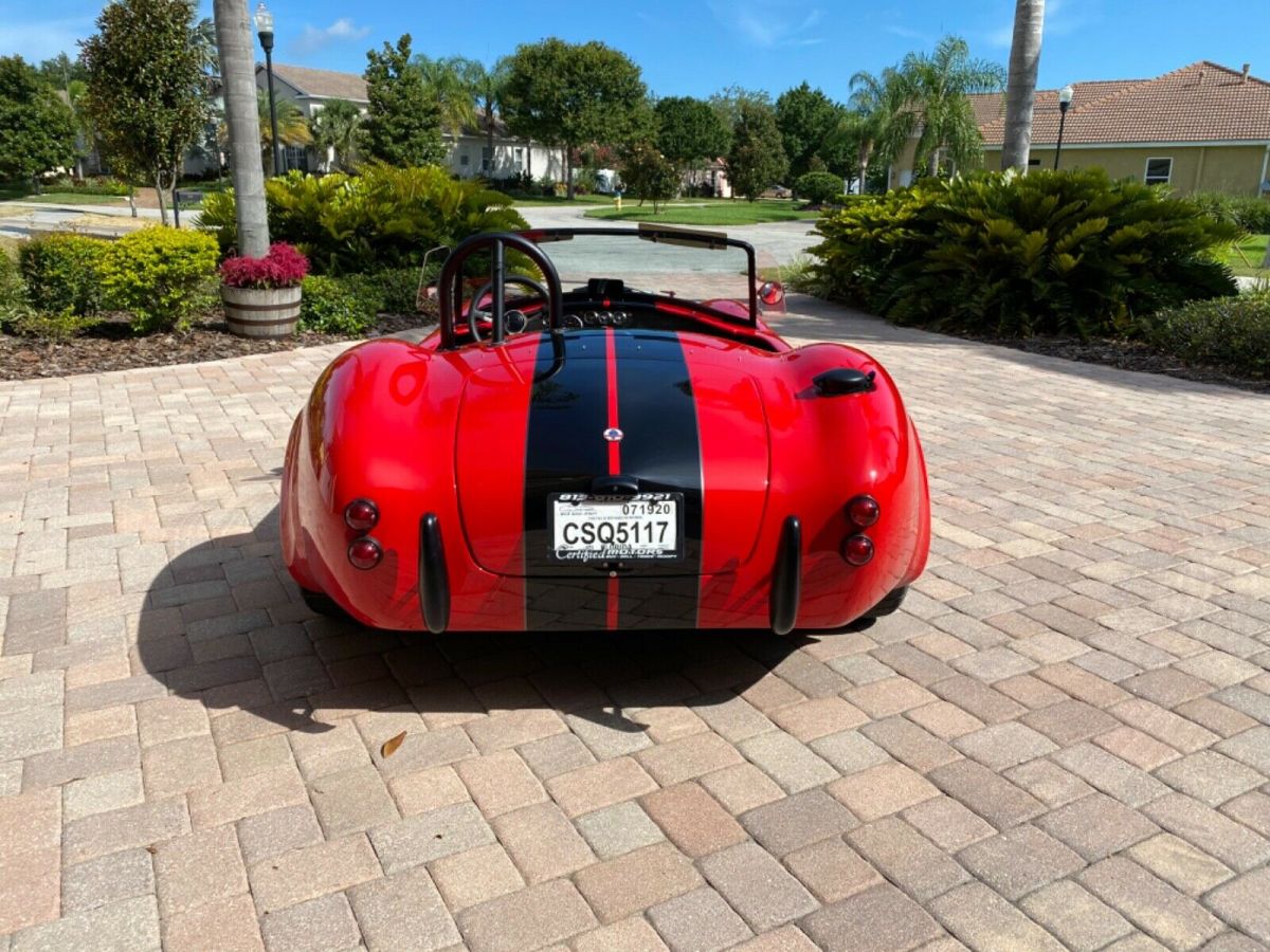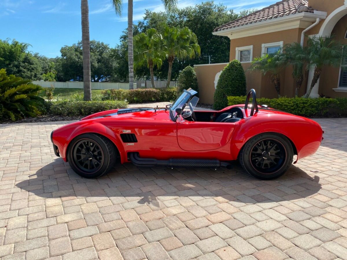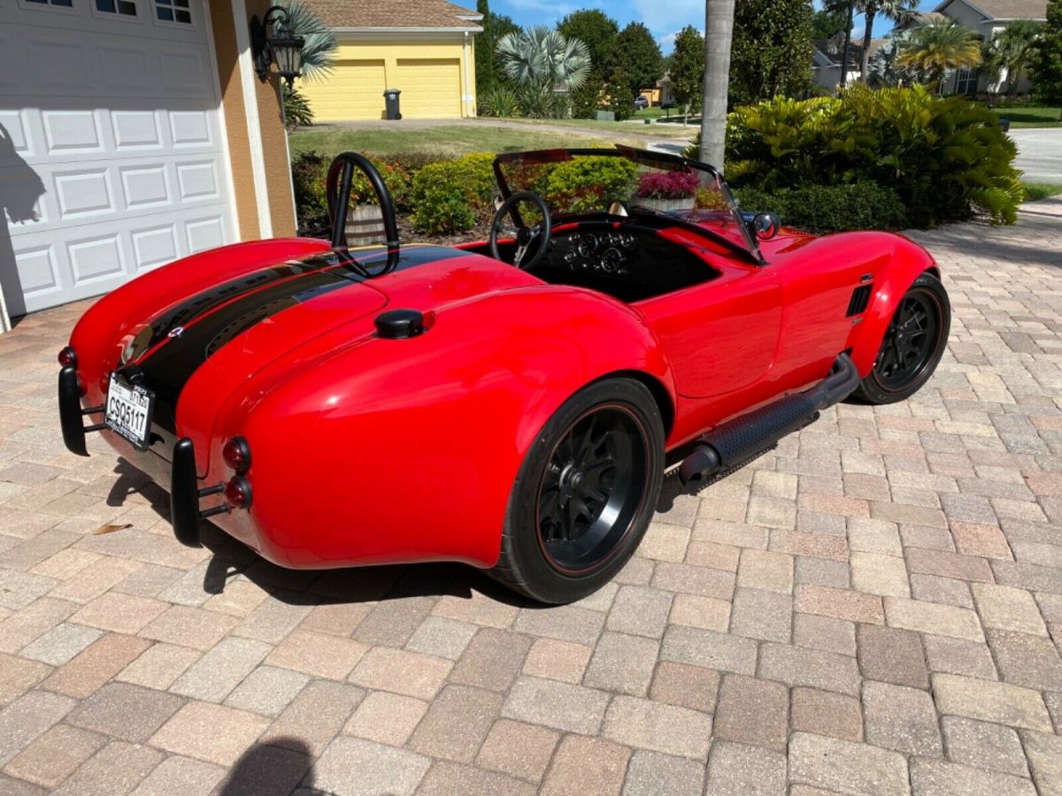 | 1965 Backdraft Edition 427-R Cobra Replica Roush Performance Package built in 2013. 550HP/518TQ 2200lbs Roush 427 engine RARE 4 speed automatic Miles are 460 Roush autographed version imprinted on window Lightweight aluminum heads Roush valve covers Ceramic coated heads for longevity MSD Blaster SS high output coil MSD Pro-Billet distributor Polished SS tank & water pump Chrome pullies & powermaster alternator Chrome steering and fuel pumps 3.46 limited slip differential Rear wishbone suspension w/ coil over strut stabilizer bar Disc brakes 6 piston front 4 piston rear Exhaust is ceramic coated 18” knock-off wheels black series 4 point racing harness 427 emblems Halogen head lights Mota-lita styled steering wheel Carbon fiber dash Billet pedals Blackout package w/ gas cap & roll bar Paint protection mask rear Cobra Shelby badges front and rear Dual mirrors Chrome fire extinguisher Black bumper option New tires just installed and recently serviced Gorgeous red with black and silver stripes 0-60 in 3.4 seconds Top speed is 180mph 1/4 mile in 11.2 seconds @ 128.40 mph |