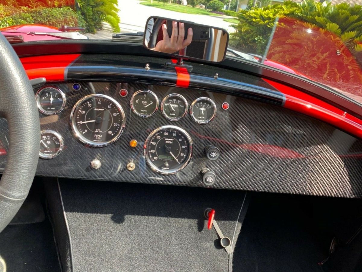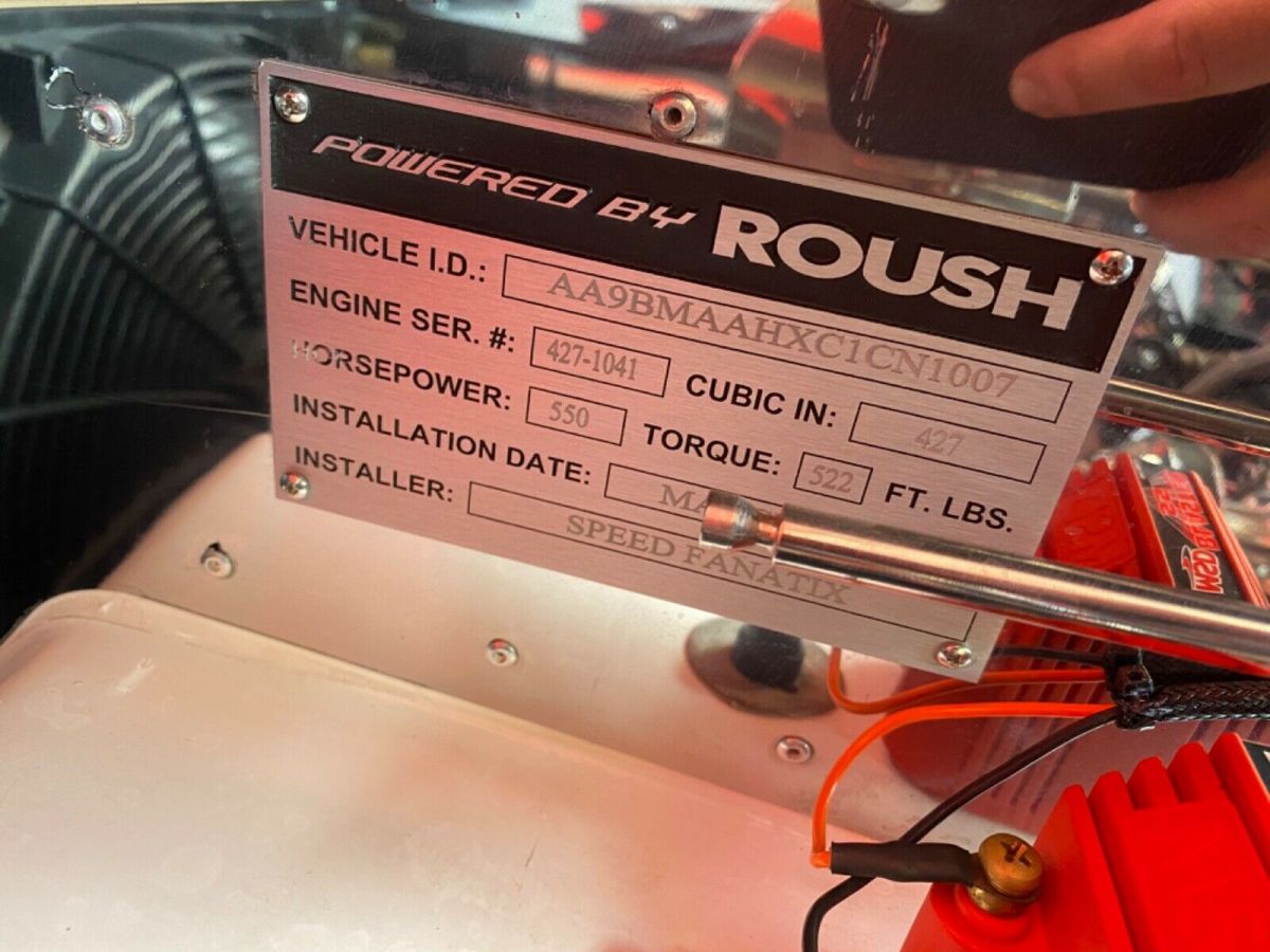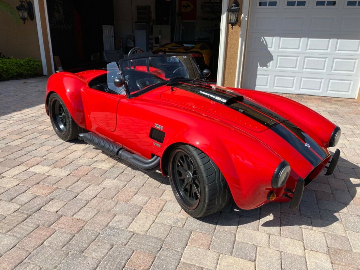 | 1965 Backdraft Edition 427-R Cobra Replica Roush Performance Package built in 2013. 550HP/518TQ 2200lbs Roush 427 engine RARE 4 speed automatic Miles are 460 Roush autographed version imprinted on window Lightweight aluminum heads Roush valve covers Ceramic coated heads for longevity MSD Blaster SS high output coil MSD Pro-Billet distributor Polished SS tank & water pump Chrome pullies & powermaster alternator Chrome steering and fuel pumps 3.46 limited slip differential Rear wishbone suspension w/ coil over strut stabilizer bar Disc brakes 6 piston front 4 piston rear Exhaust is ceramic coated 18” knock-off wheels black series 4 point racing harness 427 emblems Halogen head lights Mota-lita styled steering wheel Carbon fiber dash Billet pedals Blackout package w/ gas cap & roll bar Paint protection mask rear Cobra Shelby badges front and rear Dual mirrors Chrome fire extinguisher Black bumper option New tires just installed and recently serviced Gorgeous red with black and silver stripes 0-60 in 3.4 seconds Top speed is 180mph 1/4 mile in 11.2 seconds @ 128.40 mph |