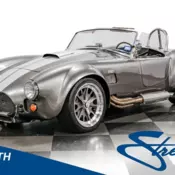 1965 Shelby Cobra Roadster As the saying goes there is more than one way to skin a cat, or you can have your cake and eat it too! The solution lies in this classic reproduction from Lone Star Classics, and, in this case it's all wrapped up for you with 3,100 miles non verifiable miles showing on the odometer. Just get in and drive. If the powerful 351ci Windsor V8 under the hood, 4 wheel disc brakes, and knock off wheels aren't enough to get your Cobra juices flowing, then lets add in an AM/FM/CD & Bluetooth capable stereo, the rarely seen installed air conditioning and a new carburetor. Still not enough for you to need a dribble bib? Then don't overlook the 4" of added wheelbase to make for a roomier cockpit and the painted to match hardtop for those Autumn drives. Read on and try not to drool on your keyboard. Exterior Words like Awesome, really cool, gorgeous, great job come to mind when gazing at this car. Sapphire Blue with light blue wide stripes running the gamut in the center harken back to the racing heritage these cars were racking up in the mid 60's. A driver's side chrome roll bar, wing glass side shield windows, and those amazing snaking from underneath big side pipes emanate from the front wheel well. Shiny chrome front and rear bumperettes are on along with a bedrail rear bumper connecting the 2 uprights. Also, lest I forget the 15-inch Centerline wheels wrapped in raised white letter Goodyear radials. Definitely adorned and ready to roll to a car show near you. As mentioned earlier, a color and stripe matched fiberglass hardtop is included with your purchase and looks just as good as the rest of the car. Interior Black leather low back bomber style bucket seats with RJS 4-point belts, black carpeting, black dash with plenty of toggle switches to keep you busy greet us upon entry. A nice lineup of black faced gauges has everything one needs to keep the pulse on the car and just below is the controller for the rarely seen heat and AC controller. A leather booted shifter is noted, while textured black foot pedals hang above the clean black low pile carpet. A 3 spoke Grant GT steering wheel is noted, and a large center hump with the AM/FM/CD/Bluetooth stereo in the back is noted and keeps the bomber seats in check. Drivetrain The 351ci Windsor V8 is tucked neatly into the clean engine bay. A new Holley 4-barrel carburetor feeds the mill via an aluminum intake distributed fuel and air. A Tremec 5-speed manual transmission sends power back to a Ford 8.8" 4.10 geared rear axle. A light patina coats the engine bay and with a little elbow grease things will be looking top notch, including the polished serpentine accessory drive system. UndercarriageA black painted custom square tube and bar chassis, custom fabricated aluminum inner structure, firewall, and trunk floors, all finished to show quality. Front features rack and pinion steering and independent coil over suspension keeps you on track and the rear features a 4 link and adjustable rear coil-overs. 4-wheel disc brakes all around with frame mounted dual brake booster to put the hooks out! Headers are on for the big exhale and i'm chomping at the bit to fire this snake up and listen to the symphony of the big V8 racking off out the side pipes. Drive-Ability This car with its awesome power can quickly become a handful, so we took it easy. It was nice to listen to the powerful roar as we accelerated up to highway speed and took a few corners in the track where it handled like it was on rails. Bias free braking, and all functioning and all added up to a pleasurable and exciting experience. While Classic Auto Mall represents that these functions were working at the time of our test drive, we cannot guarantee these functions will be working at the time of your purchase. Here's a classic car you can drive! Overall a beautiful presentation with a shade of blue and textures you just do not see everyday. Well kept, but driven, and with the extra 4" of leg room, even a tall fellow can pilot this one. Plus, it's a neck snapper, and thrill giver, all at a reasonable price, with no wrenching, just turn the key. Classic Auto Mall is home to more than 1,000 classic and collectible vehicles for sale via consignment in a climate controlled 336,000-square foot showroom (that's more than 8 acres!). The largest single location consignment dealer of classic and collectible vehicles in the country is located in Morgantown, Pennsylvania, just 1-hour west of Philadelphia off Exit 298 of the I-76 Pennsylvania Turnpike. For more information visit or call us at 855-201-7026. Contact us anytime for more information or to come see the vehicle in person. With so many great cars, you know we have a lot to talk about, and we do that each week on the Classic Auto Mall Podcast with host Stewart Howden. Stewart discusses new inventory as well as trends in consignments and car prices, while interviewing celebrities and automotive professionals about amazing cars and their history. Tune in each week to the Classic Auto Mall Podcast wherever you enjoy listening. You can also watch on YouTube!