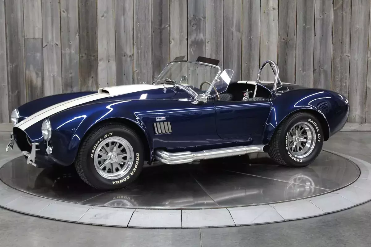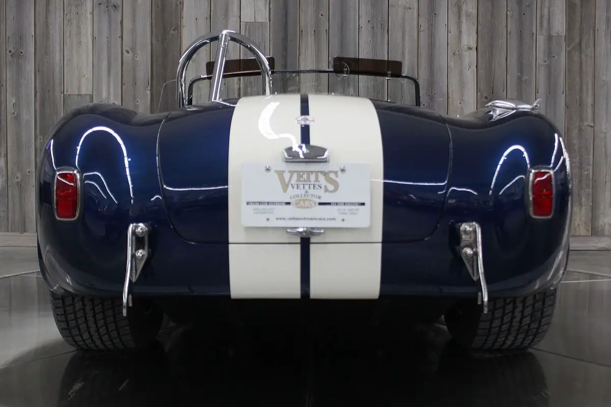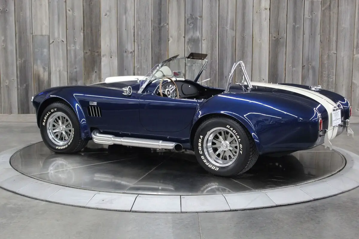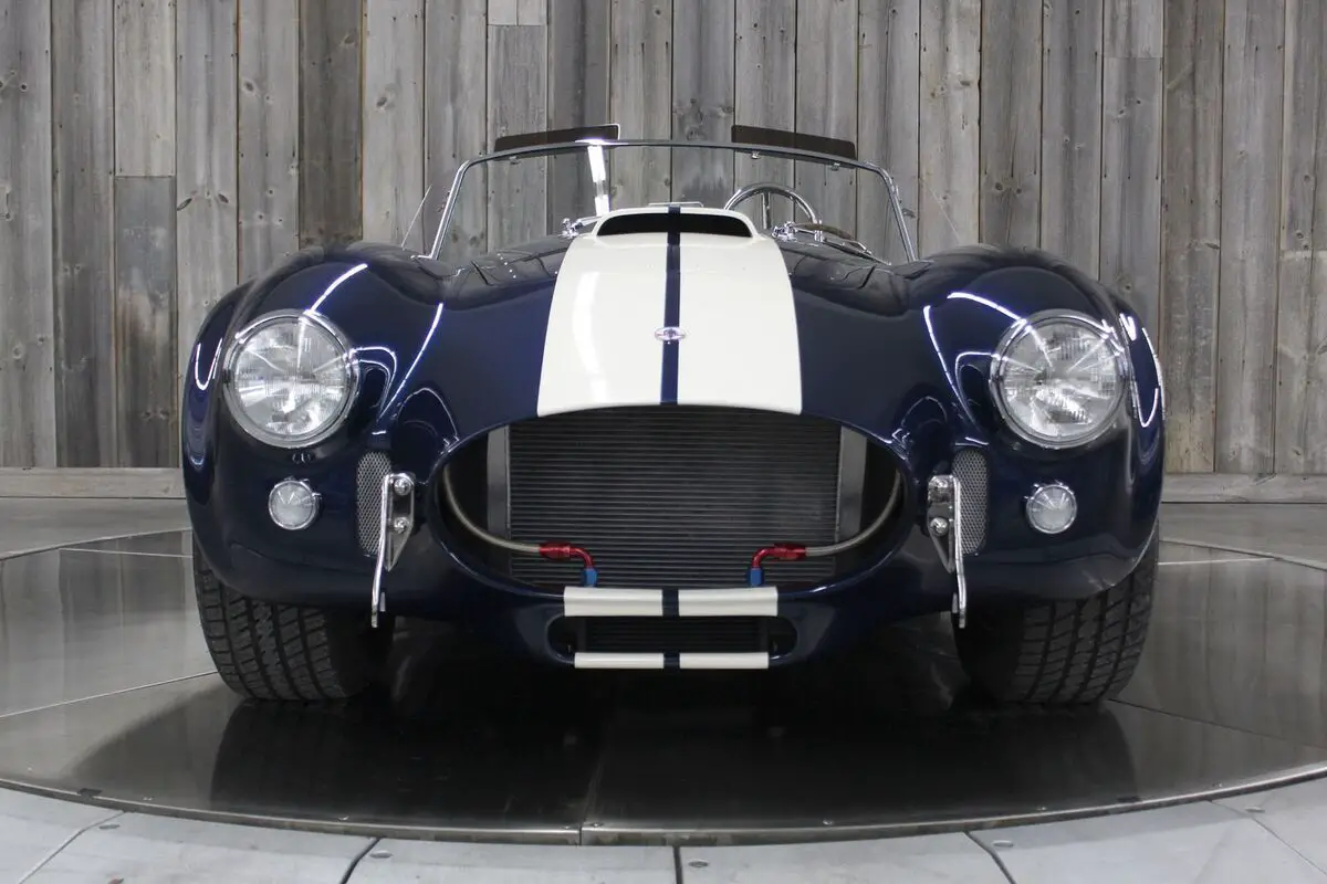 Vehicle Original VIN : IA044174’65 Cobra Superformance – Indigo Blue with Wimbledon White Stripes. The SPO # 3229 was built in 2017 and the drive train was installed in May 2019. One owner car. Driven only 702 miles. PERFORMANCE ENGINEERING ADDED OPTIONS: Roush 427R (small block) polished engine package, Dual disc clutch kit upgrade, Runner kit with Tremec 5-speed 4617 transmission. 427 Cobra side emblems and Cobra round hood and trunk emblems, Braided line upgrade in engine compartment. 4-wheel alignment, force balance wheels, and tires, Chrome 3" dia fire extinguisher with mounting hardware, expansion tank and polish, misc. Ventureshield clear rear fender protection from Advanced Paint Protection. Superformance carb to firewall linkage with Heim joints and ball socket studs. 700 miles since built. STANDARD EQUIPMENT: Show quality two-stage paint finishes. Hand-laminated fiberglass body with reinforcing inserts. Heavy duty TIG welded ladder frame chassis with crumple zones. Fully independent front and rear suspension. Limited slip differential. Willwood® power-assisted vented disc brakes (4-pot calipers front, single-pot calipers rear). Custom crafted coil-over shocks. Side and rear view mirrors. Original style pedals, catches and fittings. Original style shifter and hand brake lever. Carpeted interior and trunk, aluminum finished firewall. Sun visors and wind wings. Wipers & washer, heater/defogger. Leather seating surfaces (drivers adjusts). Original style latch-lock seat belts. Moto - Lita wooden steering wheel. Monza style filler. (locking gas cap). Aluminum, single core hi-performance radiator, shroud and dual fans. Oil cooler and braided lines. Stainless steel fuel tank 17 gallons (pressure tested). Original style side pipes and headers to accommodate Ford based V8 engine. Original style gauges (Smith) and switches (Lucas) reverse 180mph speedometer. Stainless steel roll bar, chassis mounted. DIMENSIONS and CAPACITIES: Wheelbase: 90", Length: 152", Height (Top of screen): 48", Width (Overall): 69", Track Front: 54", Track Rear: 57", Fuel Tank: 17 gal., Aluminum pin drive “Halibrand” style wheels, Front Wheels: 15" x 8J, Rear Wheels: 15" x 10J, Tires-Front 255/60 R15 Tires-Rear 275/60 R15, Ford Super 8.8 differential. Ratio 3:55:1, Empty Weight: 1,840 lbs., 427 Motor 2,590 lbs. CHASSIS: Jig-welded parallel ladder frame of heavy wall 2" x 4" rectangular steel tubing with large diameter outriggers. frame incorporates front and rear crumple zones. The door hinge, steering column, and windshield pickup points are incorporated onto the main chassis. BODY: Hand-laid fiberglass panels with steel tube reinforcements in all openings. Where the body points carry loads they are reinforced with steel bars or panels. The body is bonded to the chassis and is completely non-stressed. Supplied painted in base coat and clear coat urethane finish. FRONT & REAR SUSPENSION: The front sports fully independent unequal length A-arms with adjustable coils over telescopic shock absorbers, while the rear is also independent unequal length A-arms, with fabricated hub carriers and coil-over shock absorbers. STEERING: Rack and pinion. Original style steering wheel. PEDAL BOX: Fabricated steel plate pedal box assembly with adjustable pedal pads. Incorporates brake booster and master cylinder assembly with hydraulic clutch actuation. FRONT BRAKES: Ventilated disc with 4-pot calipers. REAR BRAKES: Ventilated disc. Cable-operated hand brake actuates rear brakes. EXHAUST SYSTEM: Superformance MK III: Side-mounted exhausts to original specifications. Superformance Roadster: Custom-made muffler and tailpipes with stainless extensions. GENERAL: Latest technology single row high-performance aluminum core radiator with 2 thermostatically-controlled electric fans; original specification oil cooler; hand fabricated stainless steel engine louvers; heater unit with 2-speed fan; original style wiper assembly with 2 speeds and 140-degree wiper arc; hand fabricated windshield assembly to original specification, chrome plated. INSTRUMENTATION/CONTROLS: Original style instruments specially manufactured by Smiths of England, fitted to original S/C and Roadster layouts. Hand-crafted shifter and handbrake. REAR-END: Ford Limited slip differential. Ratio 3:55:1 as standard equipment. INTERIOR: Hand-made seats upholstered in German specification automotive leather. Fully carpeted floor, center console, sides, and rear firewall. Slide adjusters for driver's seat. Tonneau cover and soft top supplied as optional equipment. Hard top optionally available. WHEELS: Optional 15" or 18" knock-off wheels. (Validate entire description for accuracy before bidding/purchasing)
