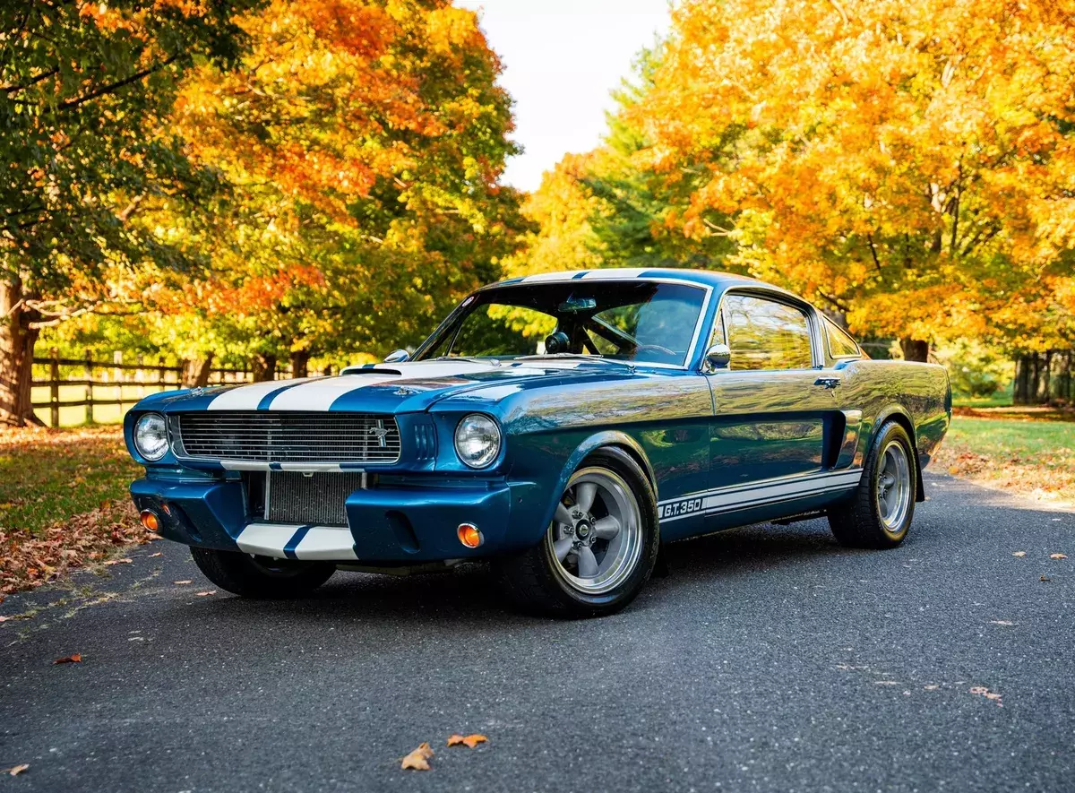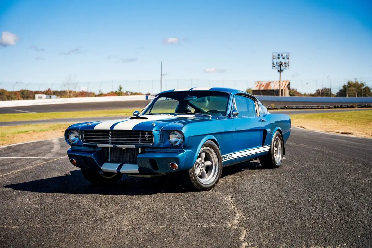 Restored Exterior With Original Sapphire Blue With Wimbledon White Stripes1965 Gt350R NOS R-Model Front Apron For Enhanced Aerodynamics16x8-Inch Phil Schmidt Engineering (Pse) Five-Spoke Wheels245/45/ZR16 BFGoodrich G-Force Sport TiresRear Mounted Brand New Optima Red Top Battery245 Wide Tires In All Four CornersOriginal Fenders and Quarter Panels