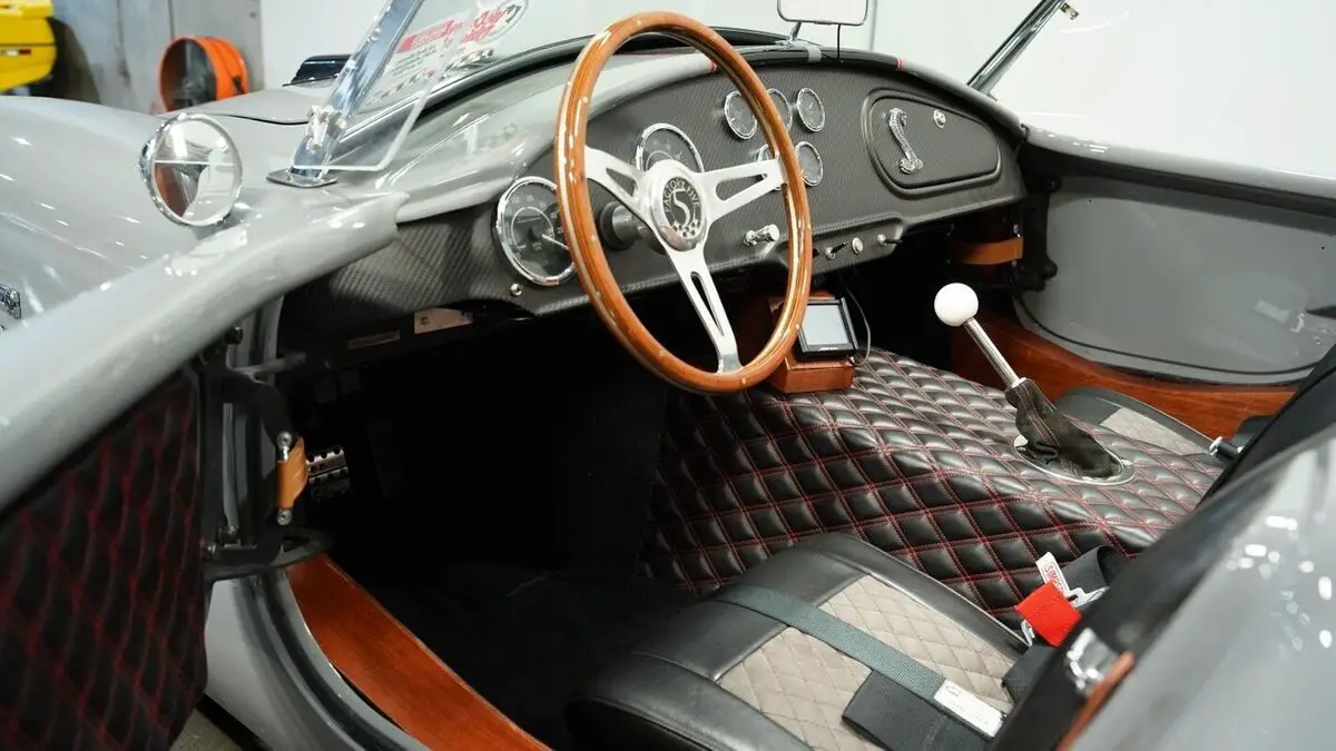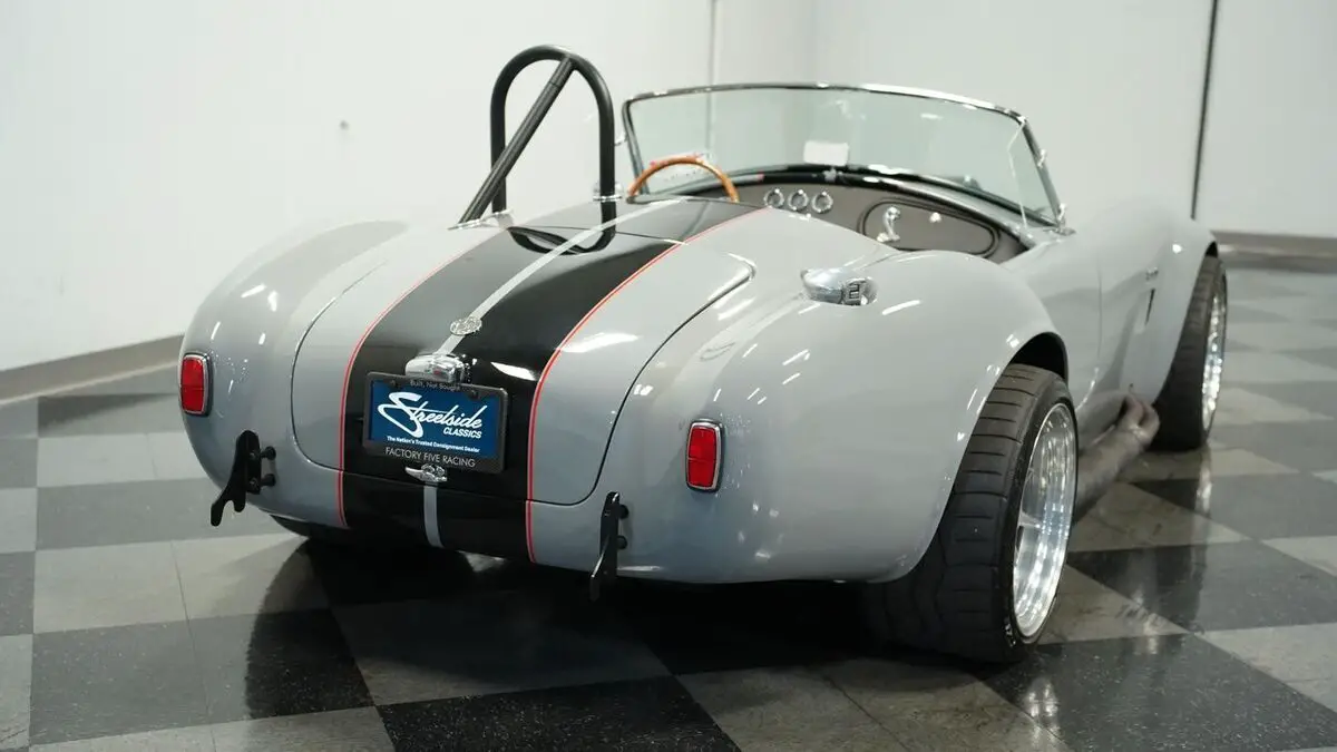 Vehicle Original VIN : F5R1009983RD• Blueprint 302 V8 Crate Engine (#356997) • T5 5-Speed Manual Transmission • Electronic Fuel Injection • Adjustable Coilover Suspension • Four-Wheel Power Disc Brakes • Factory Five Dual Side-Exit Exhaust • Gray Exterior with Black Racing Stripes and Red Pinstripes • Functional Hood Scoop • 18" Shelby Wheels with 225/40R18 Front, 315/30R18 Rear Tires • Aluminum Roadster Body • Leather Bucket Seats with Red Stitching • Power Steering • Console-Mounted Shifter • Carbon Fiber Wrapped Dashboard • Custom Wood Trim • Electronic Fuel Injection Display • Unfinished Hardtop (In Primer) • Extra Set of Mustang Wheels • 3,105 Miles Since 2021 Build