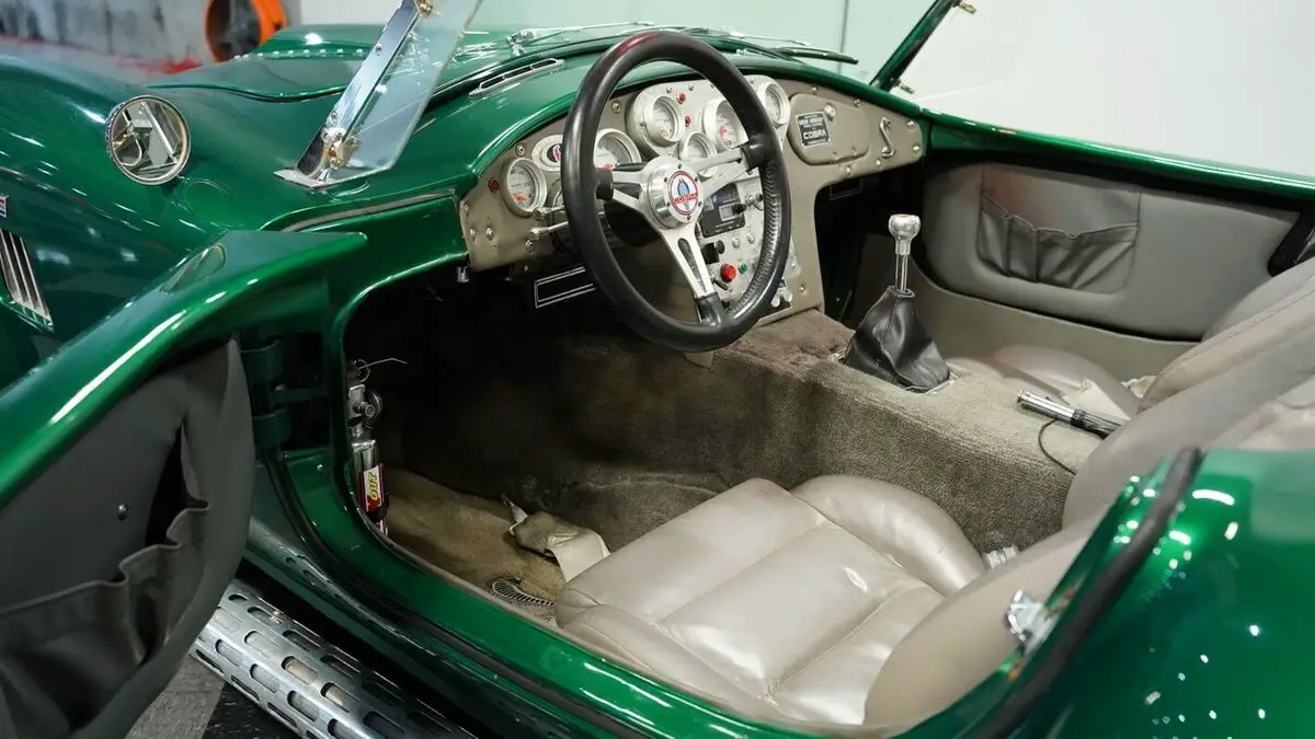 Vehicle Original VIN : HKC0204037• 351 Windsor V8 Engine • 4R70W 4-Speed Automatic Transmission • USShift Quick 1 Controller • Comp Cams Roller Cam • Scorpion Roller Rockers • Trick Flow 351 EFI Intake • Accufab 75mm Throttle Body • 36lb Injectors • Walbro 255LPH Fuel Pump • Mallory Hyfire VI-AL Box • Ford Racing ECU • QA1 Adjustable Coilovers • Four-Wheel Disc Brakes • Dana 36 Rear End with 3.75 Richmond Gears • Ceramic-Coated Headers • Side-Exit Baffled Straight Pipes • Aluminum Radiator • Finish Line Twin Pusher Fans • Mocal Transmission Cooler • Green Metallic Paint • Silver Stripes • LED Headlights • 17-inch Wheels with 245/45/17 Front, 315/35/17 Rear Tires • Gray Interior with Reupholstered Acura Bucket Seats • RCI Platinum Racing Harnesses • B&M Quicksilver Shifter • Moto-lita Steering Wheel • AutoMeter Ultralite Gauges • Vintage Air Gen II Heater • CX Racing Aluminum Fuel Tank This Hunter Cobra replica takes street performance to the next level. With its stretched chassis, race-ready powerplant, and aggressive stance, this machine owns the streets with raw American muscle. Call today!