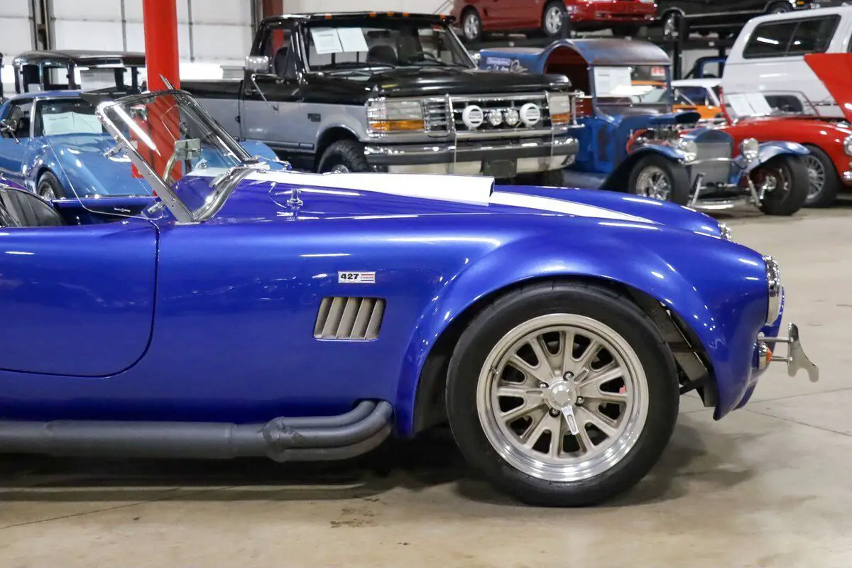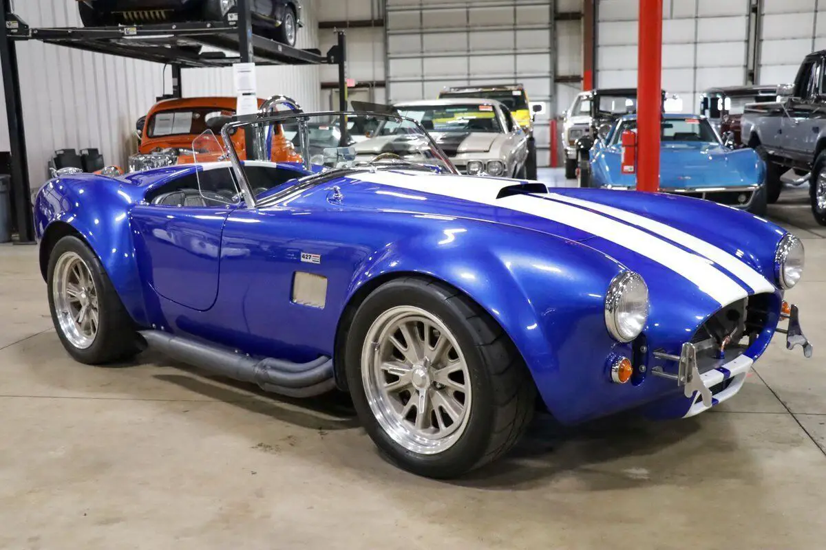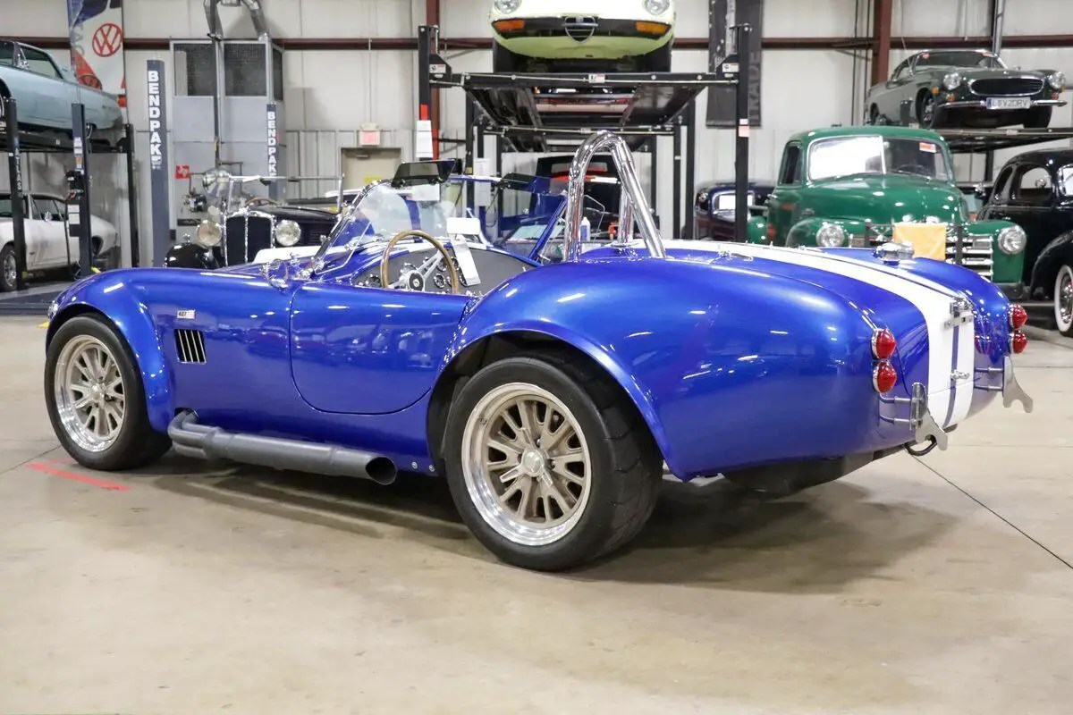 Vehicle Original VIN : FFR3531KVery few cars can bring attention to itself like the Shelby Cobra. The strong history and the raw nature of the exhaust and engine is unlike any other vehicle on the road. Add in the amazing style and setup of these Factory Five kits and you have a very special vehicle. Pleased to bring to market this 1965 Shelby Cobra by Factory Five. This Mark II edition is in great shape and has a devious sound and look to it. Vehicle has been in California for the past few years and passed their inspections. Offered here is a unique setup with the rare Diamond Blue Metallic paint and the well setup interior. Vehicle is dialed in with; dual side pipes, chrome roll bar, front and rear lift bumpers, knock off style wheels, side window wings, dual painted racing stripe down middle, quick release fuel cap, and 427 badging. Inside is well cared for and has; wood rimmed steering wheel, interior lights, full carpet kit, working wipers, Simpson harness seat belts, stereo with speakers, fire extinguisher, gauge cluster, and rear mirror. This snake is dialed in and ready to enjoy. The massive V8 engine roars to life and hustled thru the gears with precision and begging to be pushed harder. A large file and extra parts come along with this Cobra as well as side windows and soft top (not installed). Engine was an original 351W V8 that has been stroked to a 398 and mated to a Tremec TKO transmission with a 2.73 rear differential. Upgraded rear disc brakes and Mishimoto radiator and Holley ignition system. These continue to draw a strong demand as they are becoming extremely expensive to build new and many of the kit companies have a backlog of orders. This is a great opportunity to buy one already done and ready to enjoy. Assembled as a 2002 Factory Five Shelby Cobra