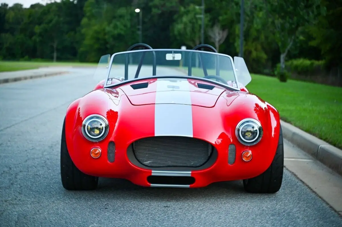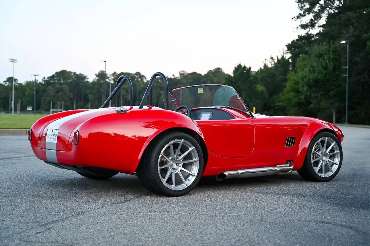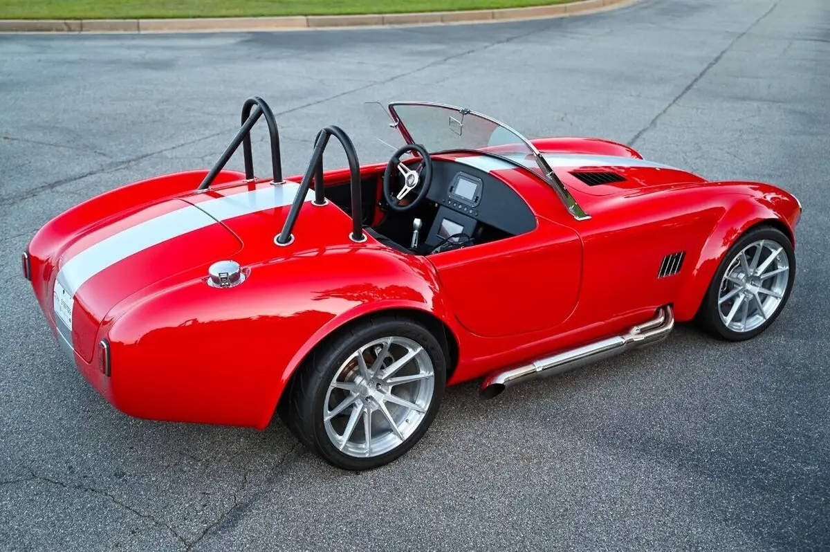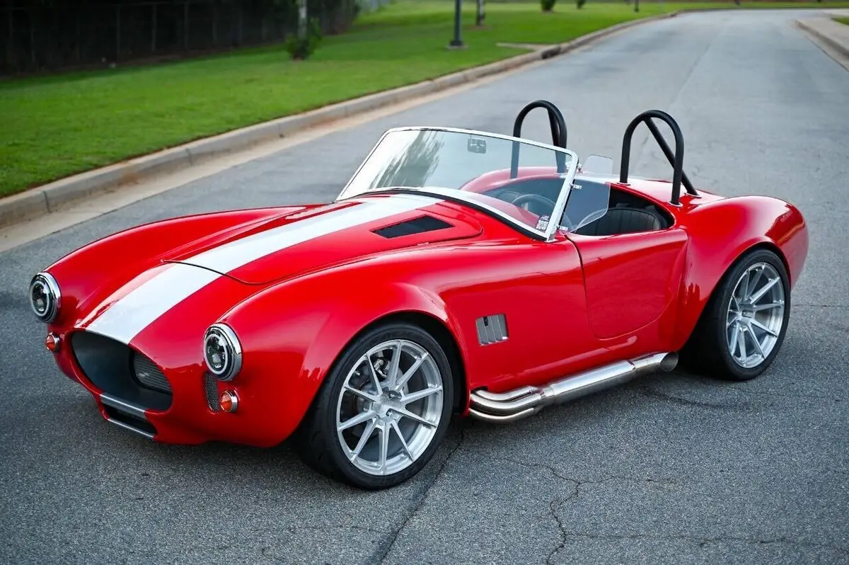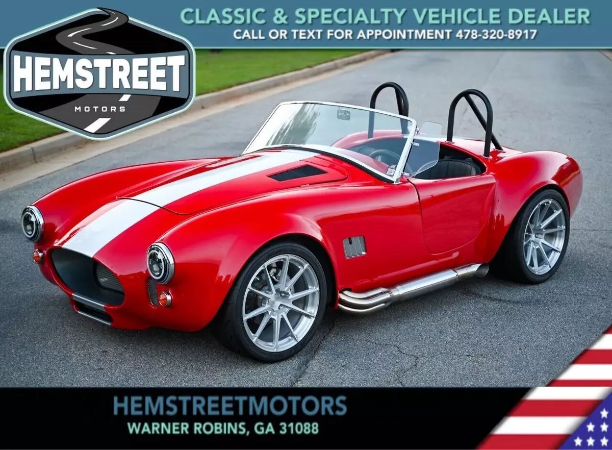 100+High resolution photos and detailed description on Affordable Nationwide shipping available! NO dealer or doc FEE's!! WE DO TRADE IN's!! WE BUY SPECIALTY Vehicles, even if you don't buy from us! Factory Five Racing MK5 Roadster 1965 Cobra Vin & Registration (no emissions) Professionally built by Hot Rod Brothers in Atlanta, GA BRAND NEW BUILD with only 41 miles!! Save $25k off a new build and a 6-month + wait time! Engine, Fuel, Cooling system & Exhaust: Ford Performance Gen 3 Coyote crate motor -302 cubic inch V8 producing 460 hpr and 420 ft/lbs of torque - 12.0:1 compression Ford Performance Gen 3 Control Pack and ECU Moroso Low Profile Oil Pan for Gen 3 Coyote Coyote Headers and Side Pipes made by Factory Five Racing Painted Engine Cover (Firecracker Red) OEM style polished fuel tank with in tank electric fuel pump & sending unit Pre-bent fuel lines and connections Aston Lemans style polished aluminum fuel filler cap Aluminum Radiator & electric cooling fan Temperature controlled cooling fan set to 185 degree Stainless radiator hose kit & stainless overflow tank 4-into-1 side exit custom stainless steel exhaust header & muffler Transmission: Tremec TKX 5-speed Transmission Ram 11 Clutch and Mcleod Racing Super Street Pro Clutch TKO 31 spline driveshaft made by Factory Five Racing (11.25”) Suspension & Steering: Tubular front upper and lower control arms Coil-over suspension with KONI brand shock absorbers Front & Rear Rear 3-Link Suspension by Factory Five Racing 8.8 Positive traction Rear End axle assembly 15:1 Manual steering rack Brakes: Front: 4-Piston Mustang calipers with 11 rotors (Factory Five design) Rear: 2-Piston Mustang Calipers (FactoryFive design) Individual master cylinders for brake and clutch mounted to pedal assembly Tunnel mounted parking brake handle and hardware Wheels & Tires: Front: BC Forged EH173 in Brushed Aluminum (18x9) 255/35/18 Falken Azenis Rear: BC Forged EH 173 in Brushed Aluminum (18x11) 315/30/18 Falken Azenis Body, Paint & lighting: Hand laid 3/16 laminate composite body & panels with vinylester resin Driver & passenger doors with molded door liners & integral steel door frames Hood and trunk with molded liners Multi-adjustable door hinges with bronze bushings & stainless fasteners Billet Adjustable hidden hood & trunk hinge kit Over 40 laser cut pre formed aluminum panels for floor, body, underhood & trunk FireCracker Red with a single Quantum Silver Stripe Professionally Painted by Billy Vickery Custom fit chassis wiring harness & fuse panel Authentic chrome-on-brass vintage windscreen & driver/passenger side glass laser cut aluminum side & hood louvers 3.5 Aston Lemans fuel filler cap recessed into the body work LED headlight assemblies with LED Halo's LED rear tail light assemblies Custom recessed LED third brake lights in driver/passenger rollbar assemblies British style LED front amber turn signals Power actuated hood and decklid Adjustable Stroke Linear Actuators Controlled by 2 Rocker Switches under the dash 360-degree camera powered by a PAC Camera Switcher Custom mounted Hood Louvers Frenched in License Plate Interior: MK5 pre-cut aluminum dashboard that is leather wrapped AIMS MXP Strada 6” Street Dash w/ GPS Module Sony 6” Headunit for Radio and Camera displays 4x Rockford Fosgate Speakers behind seats roadster style Low Profile metal framed Bucket Seat wrapped in leather All-weather black carpet set & floormats throughout interior Simpson 4 point Racing Harnesses Customs made head unit and speaker box under dash Billet Buttons installed in Dash to perform all driving functions Push button start Turn signal switches engage side view mirror cameras Full billet shift handle and knob assembly