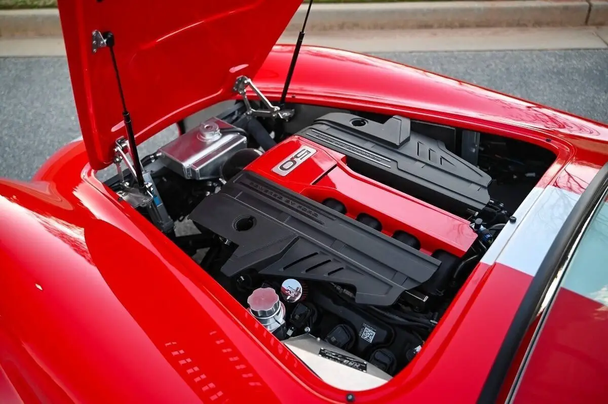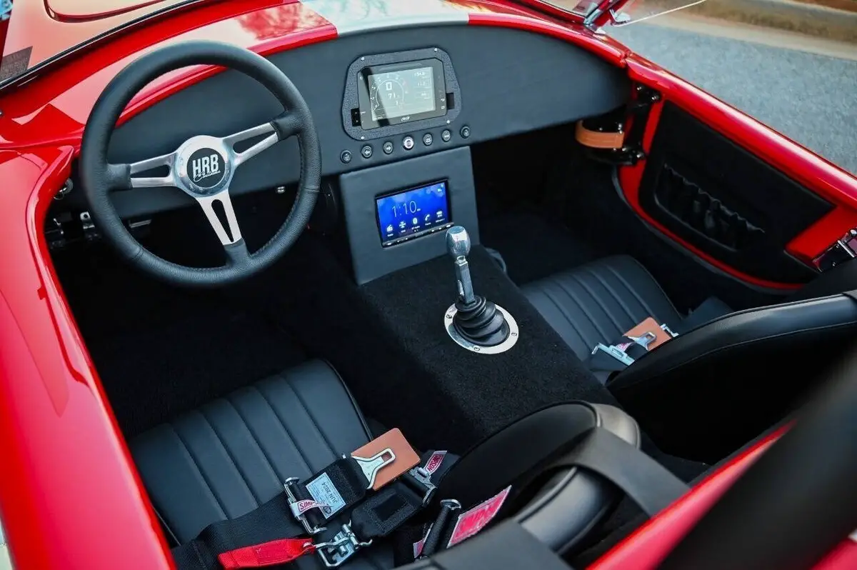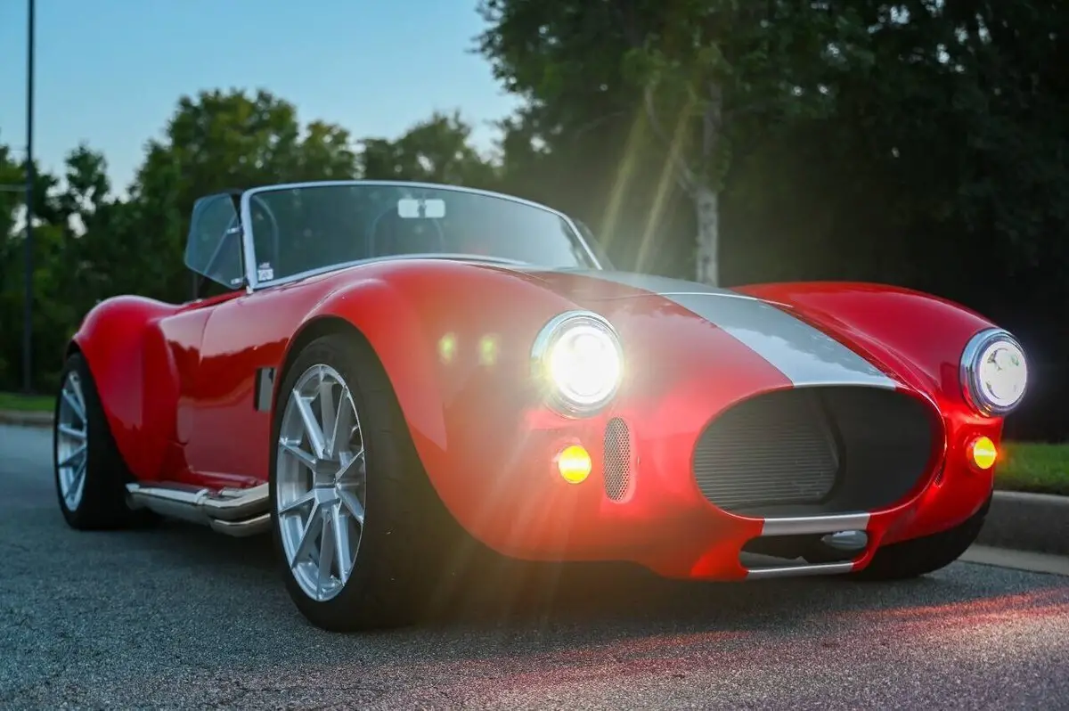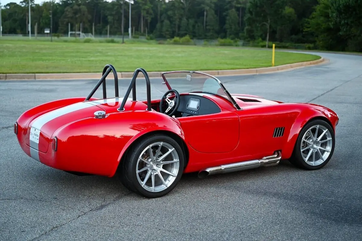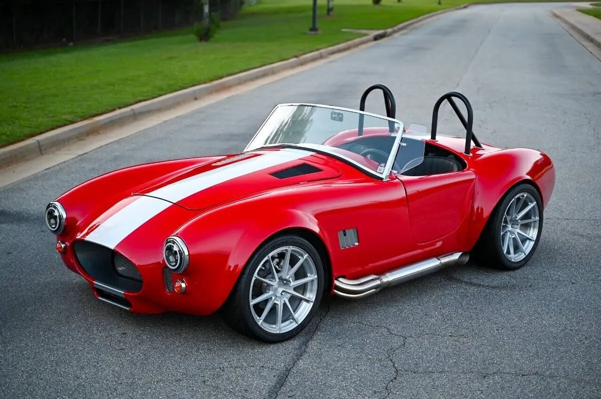 100+High resolution photos and detailed description on Affordable Nationwide shipping available! NO dealer or doc FEE's!! WE DO TRADE IN's!! WE BUY SPECIALTY Vehicles, even if you don't buy from us! Factory Five Racing MK5 Roadster 1965 Cobra Vin & Registration (no emissions) Professionally built by Hot Rod Brothers in Atlanta, GA BRAND NEW BUILD with only 41 miles!! Save $25k off a new build and a 6-month + wait time! Engine, Fuel, Cooling system & Exhaust: Ford Performance Gen 3 Coyote crate motor -302 cubic inch V8 producing 460 hpr and 420 ft/lbs of torque - 12.0:1 compression Ford Performance Gen 3 Control Pack and ECU Moroso Low Profile Oil Pan for Gen 3 Coyote Coyote Headers and Side Pipes made by Factory Five Racing Painted Engine Cover (Firecracker Red) OEM style polished fuel tank with in tank electric fuel pump & sending unit Pre-bent fuel lines and connections Aston Lemans style polished aluminum fuel filler cap Aluminum Radiator & electric cooling fan Temperature controlled cooling fan set to 185 degree Stainless radiator hose kit & stainless overflow tank 4-into-1 side exit custom stainless steel exhaust header & muffler Transmission: Tremec TKX 5-speed Transmission Ram 11 Clutch and Mcleod Racing Super Street Pro Clutch TKO 31 spline driveshaft made by Factory Five Racing (11.25”) Suspension & Steering: Tubular front upper and lower control arms Coil-over suspension with KONI brand shock absorbers Front & Rear Rear 3-Link Suspension by Factory Five Racing 8.8 Positive traction Rear End axle assembly 15:1 Manual steering rack Brakes: Front: 4-Piston Mustang calipers with 11 rotors (Factory Five design) Rear: 2-Piston Mustang Calipers (FactoryFive design) Individual master cylinders for brake and clutch mounted to pedal assembly Tunnel mounted parking brake handle and hardware Wheels & Tires: Front: BC Forged EH173 in Brushed Aluminum (18x9) 255/35/18 Falken Azenis Rear: BC Forged EH 173 in Brushed Aluminum (18x11) 315/30/18 Falken Azenis Body, Paint & lighting: Hand laid 3/16 laminate composite body & panels with vinylester resin Driver & passenger doors with molded door liners & integral steel door frames Hood and trunk with molded liners Multi-adjustable door hinges with bronze bushings & stainless fasteners Billet Adjustable hidden hood & trunk hinge kit Over 40 laser cut pre formed aluminum panels for floor, body, underhood & trunk FireCracker Red with a single Quantum Silver Stripe Professionally Painted by Billy Vickery Custom fit chassis wiring harness & fuse panel Authentic chrome-on-brass vintage windscreen & driver/passenger side glass laser cut aluminum side & hood louvers 3.5 Aston Lemans fuel filler cap recessed into the body work LED headlight assemblies with LED Halo's LED rear tail light assemblies Custom recessed LED third brake lights in driver/passenger rollbar assemblies British style LED front amber turn signals Power actuated hood and decklid Adjustable Stroke Linear Actuators Controlled by 2 Rocker Switches under the dash 360-degree camera powered by a PAC Camera Switcher Custom mounted Hood Louvers Frenched in License Plate Interior: MK5 pre-cut aluminum dashboard that is leather wrapped AIMS MXP Strada 6” Street Dash w/ GPS Module Sony 6” Headunit for Radio and Camera displays 4x Rockford Fosgate Speakers behind seats roadster style Low Profile metal framed Bucket Seat wrapped in leather All-weather black carpet set & floormats throughout interior Simpson 4 point Racing Harnesses Customs made head unit and speaker box under dash Billet Buttons installed in Dash to perform all driving functions Push button start Turn signal switches engage side view mirror cameras Full billet shift handle and knob assembly