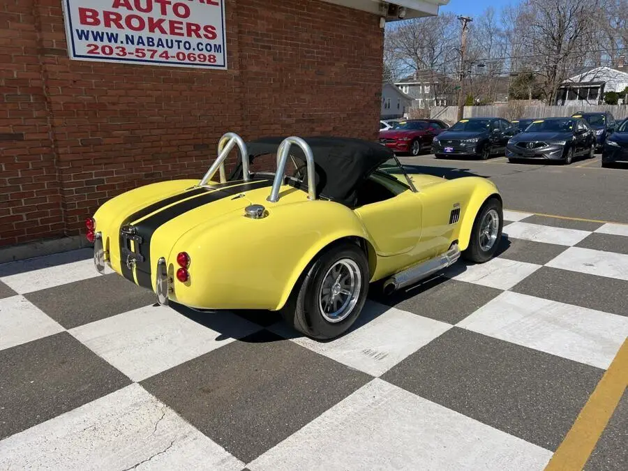 Classic And Specialty Cars Are Shown by Appointment Only. Please Do Not Just Show Up At The Dealership Without An Appointment As The Vehicles Are Not At The Dealership. Please Call 203-574-0698 For An Appointment To See The Car. We Have You Tube Videos Of The Car Running Below. If The Links Do Not Work We Can Text 203-592-2478 Or Send Us Your Email Address So We Can Email Them To You Additional Photos On Our Website www.nabauto.com This Factory Five Racing Mk2 Roadster was completed in 2003. The car is finished in yellow with black stripes over black leather upholstery and is powered by a 347ci stroker V8 linked with a five-speed manual transmission. The fuel-injected 347ci stroker V8 features a Griffin aluminum radiator, long-tube exhaust headers, and an MSD distributor and ignition coil. Equipment includes a Rick Young black soft top, double roll hoops, a hood scoop, center-mounted fog lights, side-exit exhaust pipes, Beard racing harnesses, a wood-rimmed steering wheel, 15" Halibrand-style wheels, and disc brakes. The 15" Halibrand-style wheels are mounted with Mickey Thompson ET Street tires measuring 235/60 up front and 275/50 out back. The car is equipped with independent front suspension, and stopping power is provided by four-wheel discs. The paint and body are in very good condition. The car runs strong! Here are a few You Tube videos of the car running. Copy and paste links into your browser: https://youtu.be/9BJO9VcwPY0?si=nF0edQFIGw91f5-s https://youtu.be/z6tzPJdj6mg?si=QzjSm0tfCkOMFVFl https://youtu.be/8i_XAu8zJc8?si=SCc0rr45CzfOEmoK https://youtu.be/WUKqcLGm8Ho?si=XX3UIEndXKqYTbkE https://youtu.be/dWkLjxDgNDY?si=6CesTMZPmAT6glvq