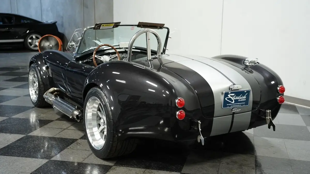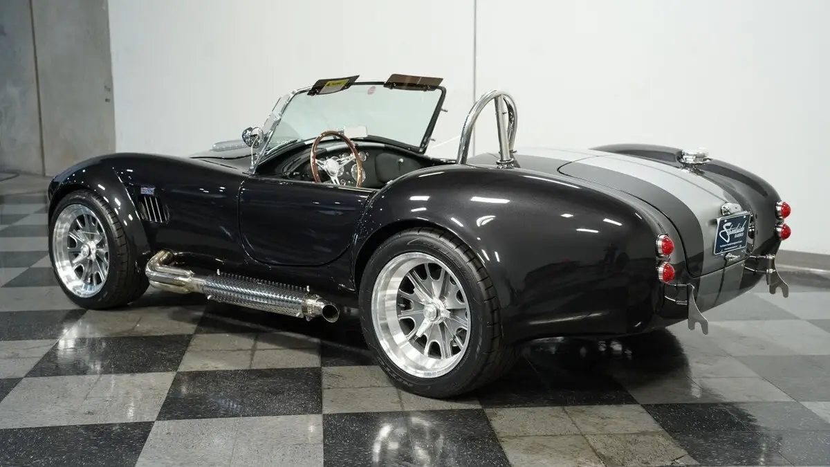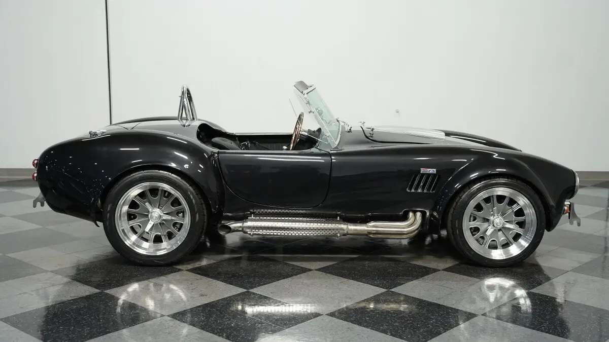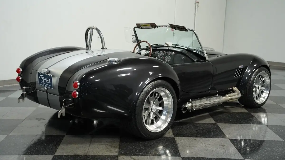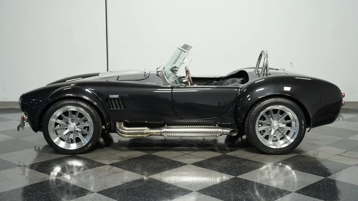 Vehicle Original VIN : AE9BMAAH1R1MT1199• Iconic 427 V8 engine • Holley 4-barrel carburetor • Performer RPM intake • MSD ignition • Aluminum heads • Tremec TKX 5-speed manual transmission • Long tube headers • Stainless steel side pipes • 330mm front vented disc brakes • 315mm rear vented disc brakes • Adjustable front coilovers • Independent rear suspension • Ford Super 8.8 rear axle with 3.55 gears • Power steering • Volcano Black Metallic paint • Silver painted stripes • 18" alloy knock-off wheels • 245/40R18 front & 295/40R18 rear Nitto NT555 tires • Stainless side pipes • Stainless quick jacks • Chrome LeMans-style fuel cap • Black leather interior with bucket seats • Chrome floor shifter • Push-button start • Backdraft binder with specs, cam card, dyno sheet, and hat