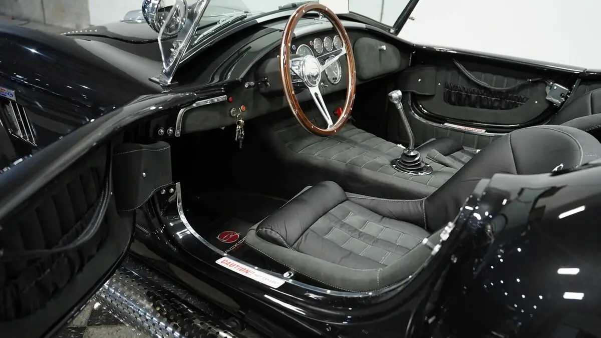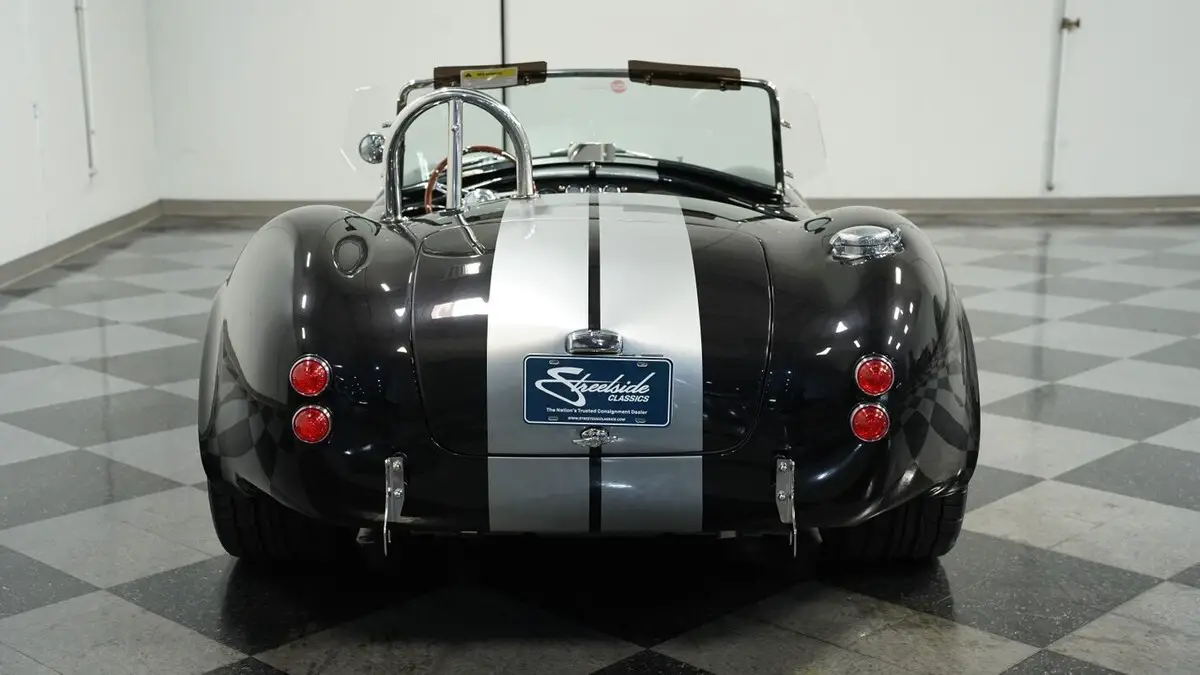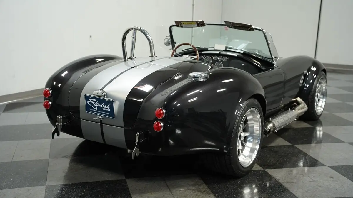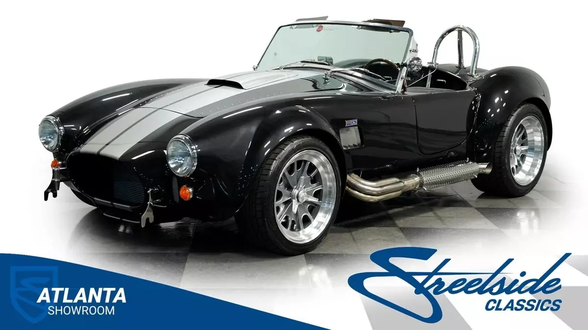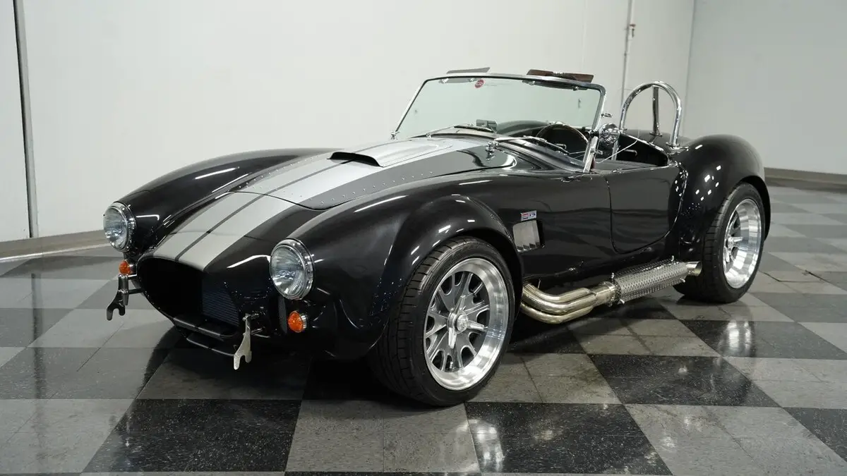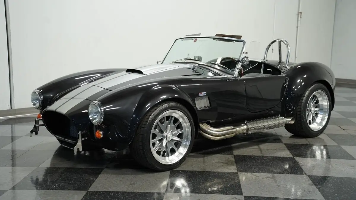 Vehicle Original VIN : AE9BMAAH1R1MT1199• Iconic 427 V8 engine • Holley 4-barrel carburetor • Performer RPM intake • MSD ignition • Aluminum heads • Tremec TKX 5-speed manual transmission • Long tube headers • Stainless steel side pipes • 330mm front vented disc brakes • 315mm rear vented disc brakes • Adjustable front coilovers • Independent rear suspension • Ford Super 8.8 rear axle with 3.55 gears • Power steering • Volcano Black Metallic paint • Silver painted stripes • 18" alloy knock-off wheels • 245/40R18 front & 295/40R18 rear Nitto NT555 tires • Stainless side pipes • Stainless quick jacks • Chrome LeMans-style fuel cap • Black leather interior with bucket seats • Chrome floor shifter • Push-button start • Backdraft binder with specs, cam card, dyno sheet, and hat