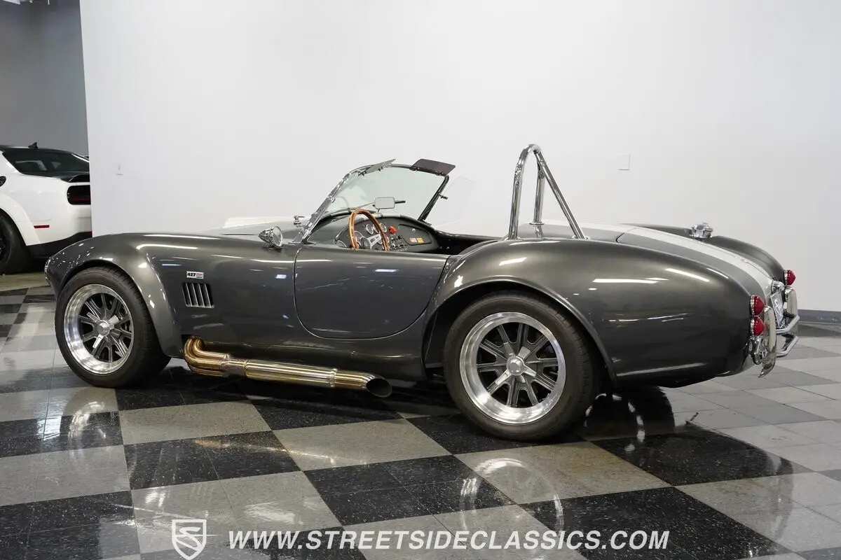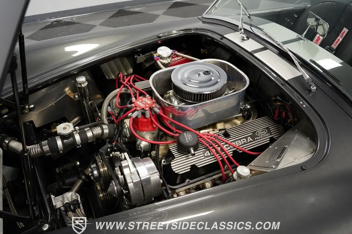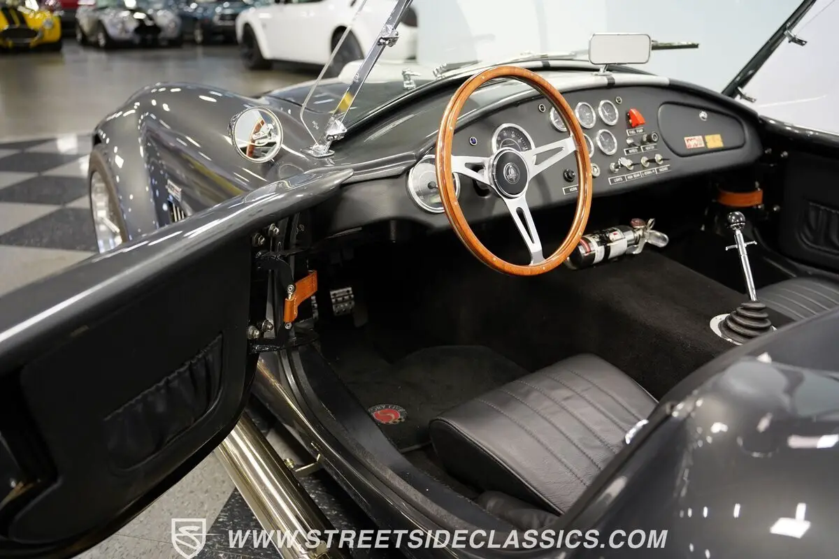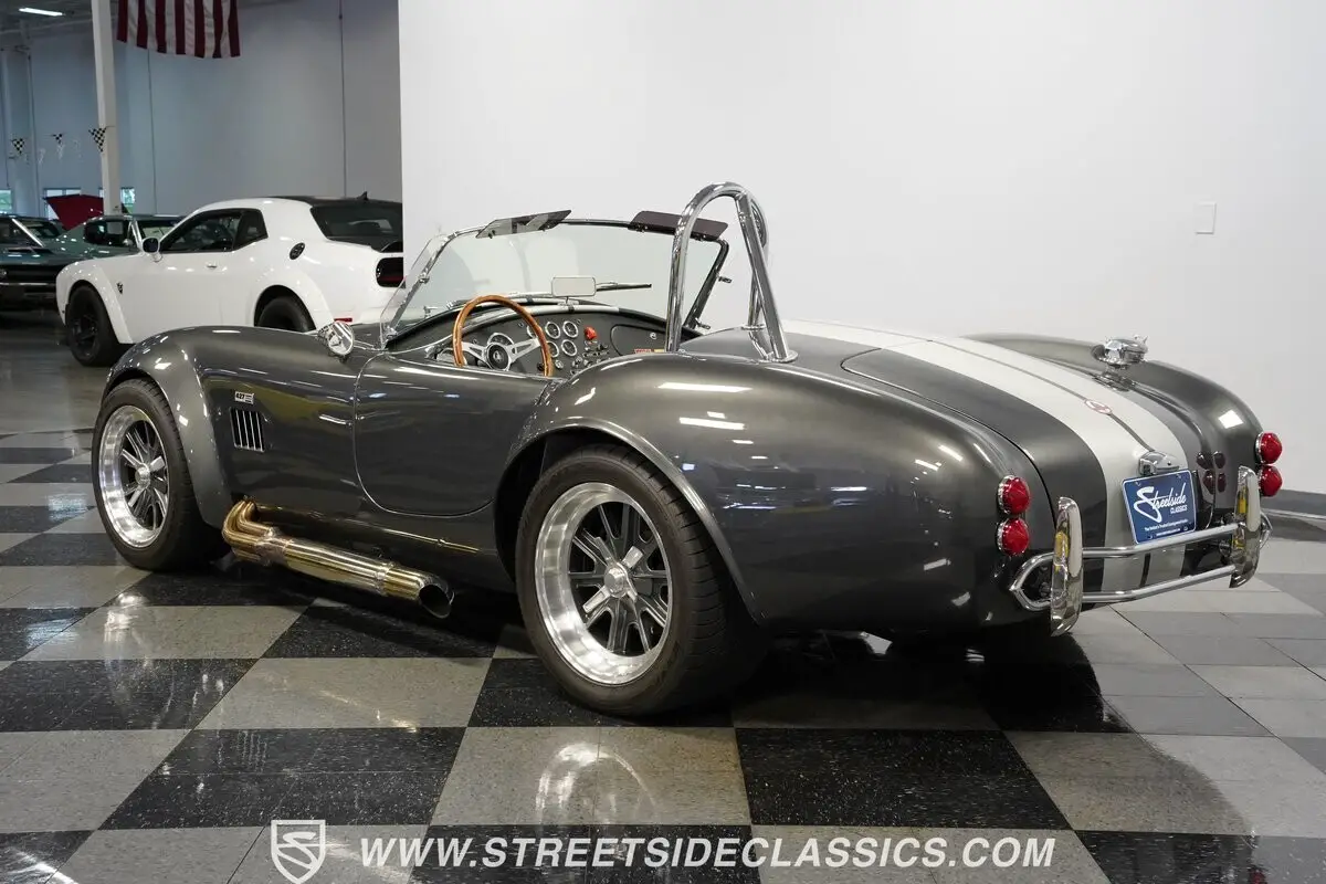 Vehicle Original VIN : DPS20ASVE04980052HIGHLIGHTS: • 351 Windsor V8 Engine • Tremec 5-Speed Manual Transmission • Holley 4-Barrel Carburetor • Long Tube Headers • Side Exit Exhaust • Four-Wheel Disc Brakes • Coilover Suspension • Ford 8.8 Rear Axle • Aluminum Radiator • Electric Fans • Grey Paint with Rally Stripes • 17" Wheels • 245/45ZR17 Front, 315/35ZR17 Rear Tires • Single Chrome Roll Bar • Side Exit Exhaust • Black Leather Bucket Seats • Wood Grain Steering Wheel with Cobra Emblem • Chrome-Bezelled Gauges • Floor Shifter • Power Steering • 1,518 Miles Since Built • Factory Five Racing Certificate • Factory Five Assembly Manual • Receipts