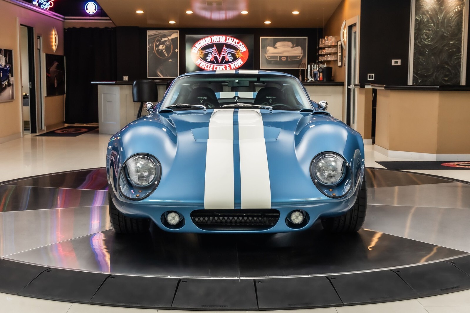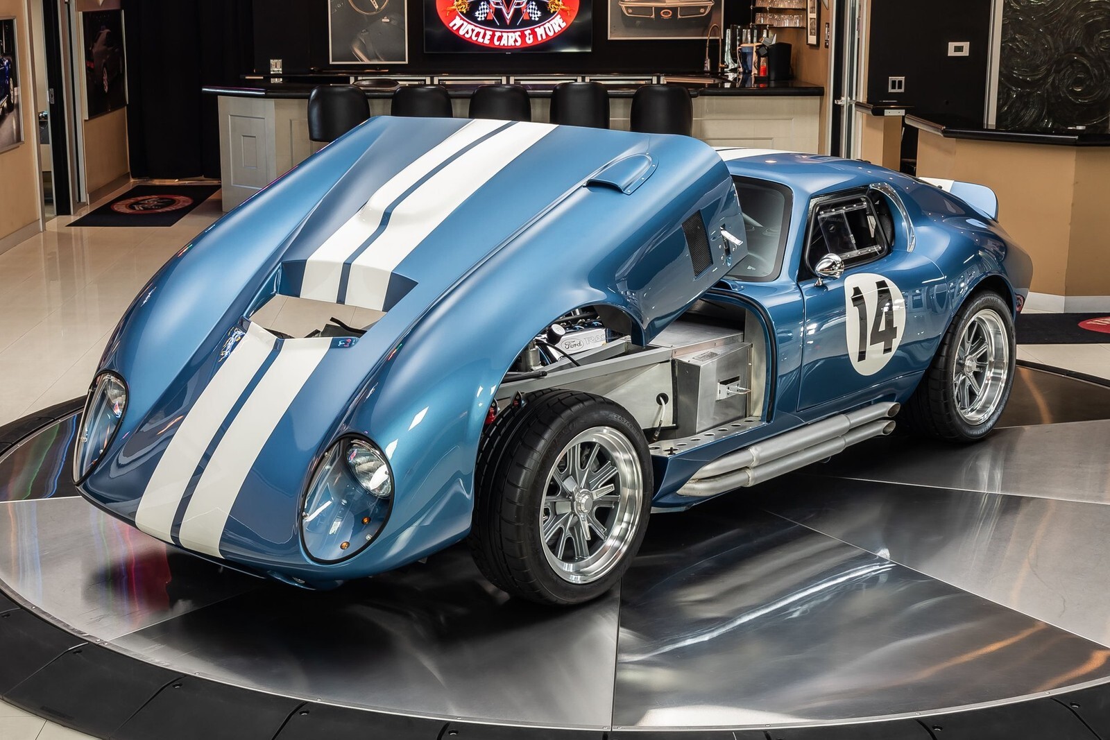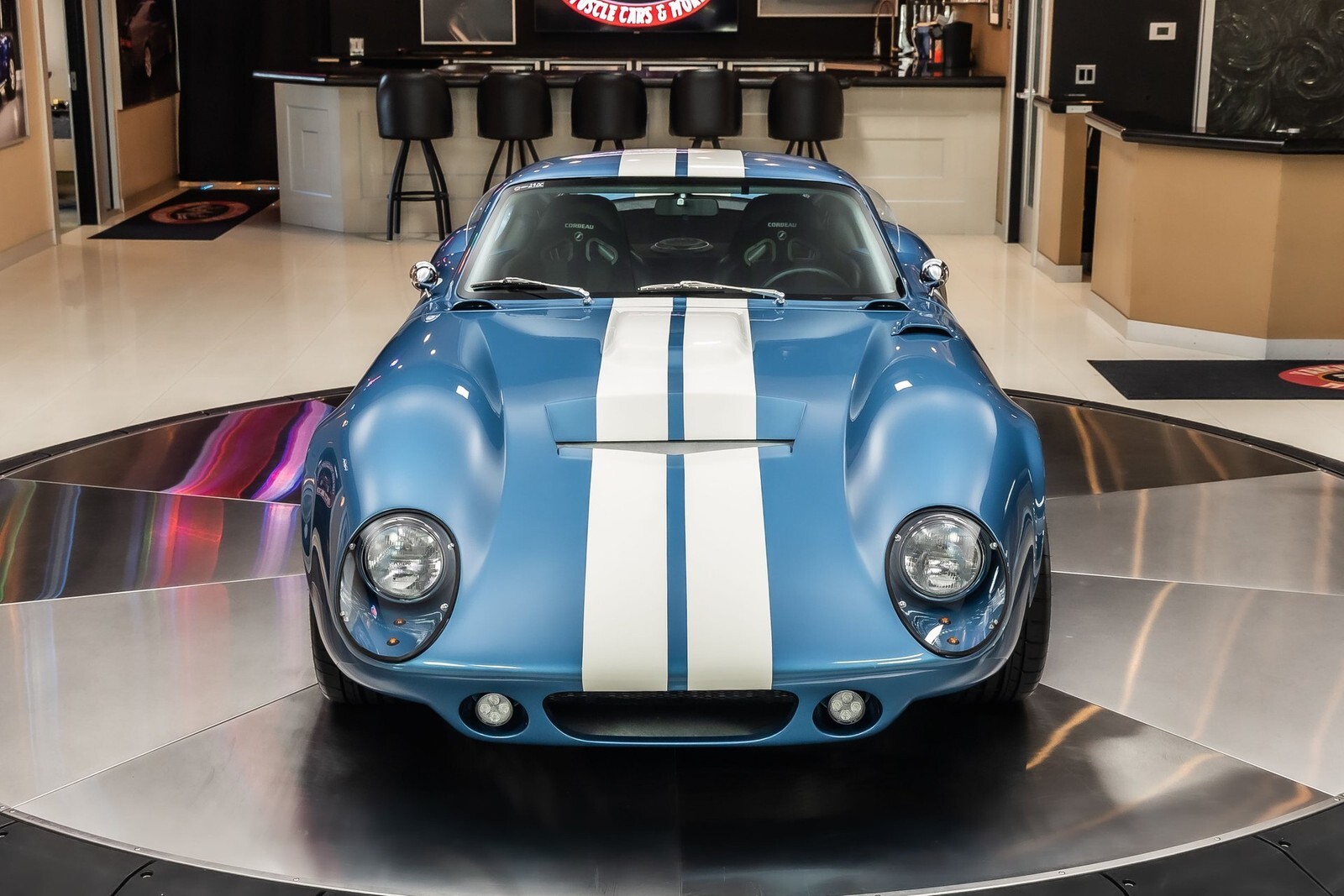 Check out this incredible 1965 Shelby Daytona Coupe! This Daytona is a Gen 3, Factory Five and is sporting Blue Exterior Paint with White Decals and sits on Factory 5 Knock Off Style Wheels to complete the look! Inside, this '65 is fitted with a Black Interior with Corbeau Bucket Seats! Features include, Racing Harness Setup, Kenwood Audio System, Removable Side Windows, Rear Glass Hatch, Shelby Shifter Handle, Roll Bar, and Air Conditioning to keep you cool in the summer heat.