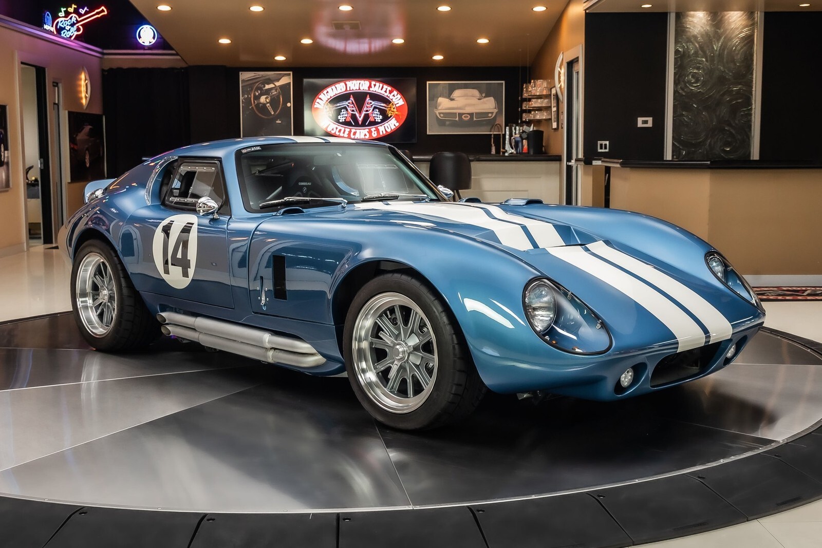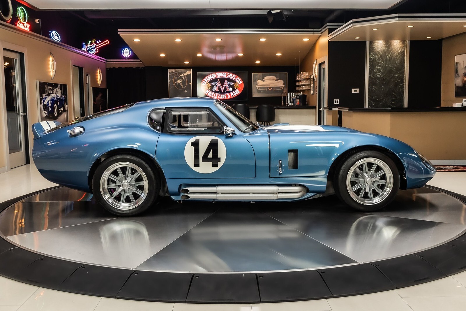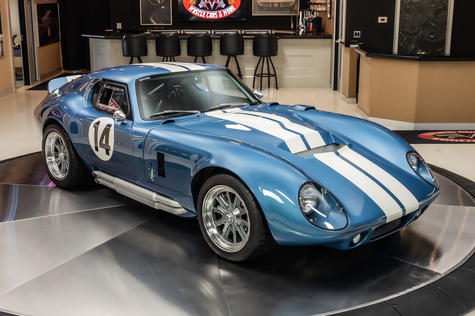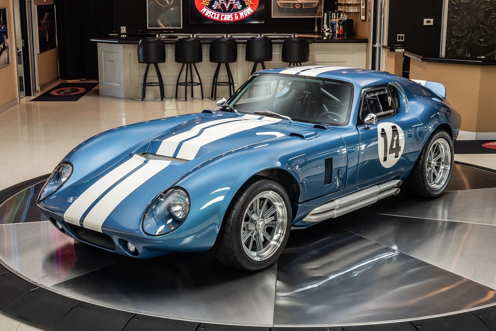 Check out this incredible 1965 Shelby Daytona Coupe! This Daytona is a Gen 3, Factory Five and is sporting Blue Exterior Paint with White Decals and sits on Factory 5 Knock Off Style Wheels to complete the look! Inside, this '65 is fitted with a Black Interior with Corbeau Bucket Seats! Features include, Racing Harness Setup, Kenwood Audio System, Removable Side Windows, Rear Glass Hatch, Shelby Shifter Handle, Roll Bar, and Air Conditioning to keep you cool in the summer heat.