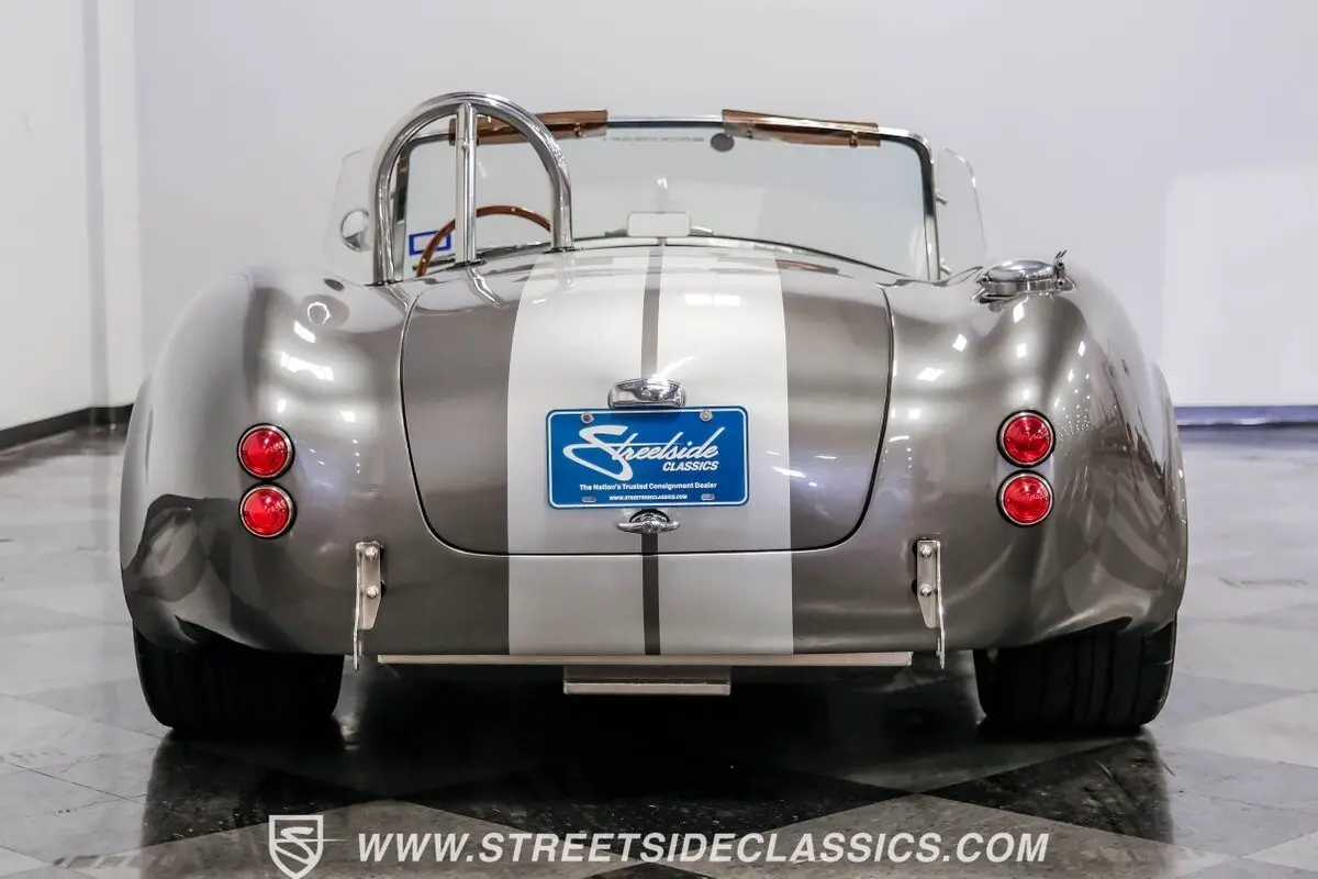 Under that signature front-hinged hood, we find an incredible Roush-built crate engine 427 R V-8 engine. Outfitted with lightweight aluminum heads and a performance cam, this big block is fed by a single Holley four-barrel carburetor covered by a large air cleaner proudly displaying the Roush name. Long tube headers connect to the aforementioned side pipes to efficiently dispel exhaust gases, enabling this motor to produce an incredible 554 horsepower and 529 pound-feet of torque. That massive power is routed through a Tremec TKO600 five-speed manual transmission, operated in traditional Cobra fashion by a forward-mounted gear shift before heading out to a Ford 8.8-inch rear end housing stout 3.55 gears to provide the perfect balance of off-the-line acceleration and reasonable fuel efficiency on the highway.