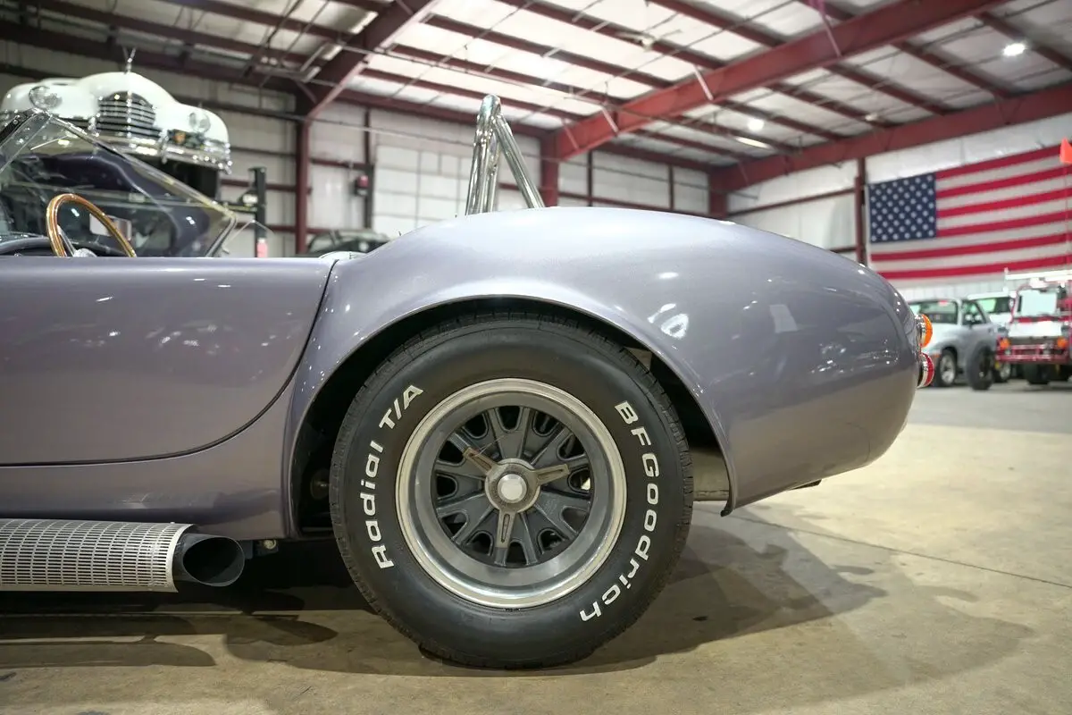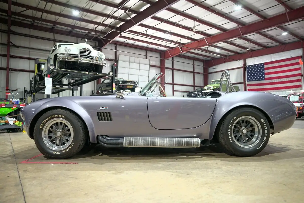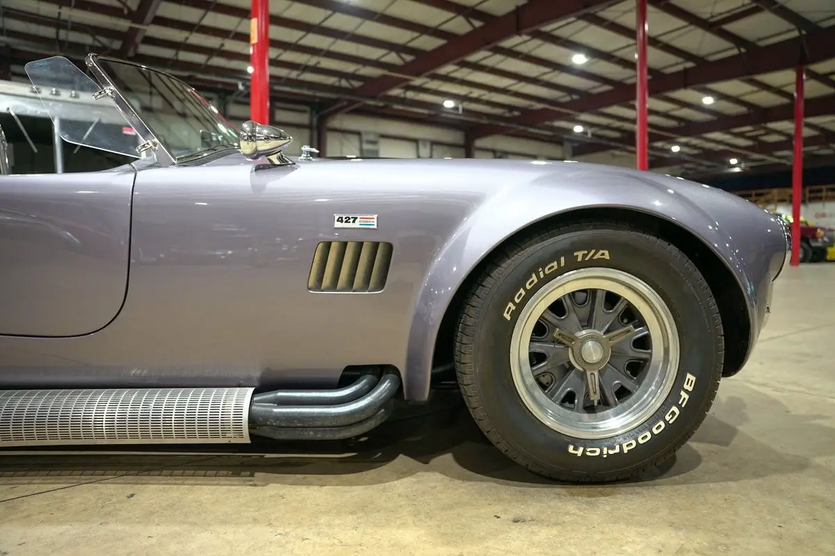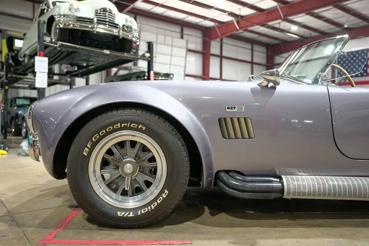 Under the hood lives a thundering Ford 427ci V8, fed by dual Holley carburetors and paired with a 5-speed manual transmission. The power-to-weight ratio is everything you'd expect from a Cobra, raw, visceral, and unrelenting. From the first crank, the car delivers the kind of bark that turns heads and pins you to the seat, and the manual gearbox gives you complete control over every ounce of its fury.
