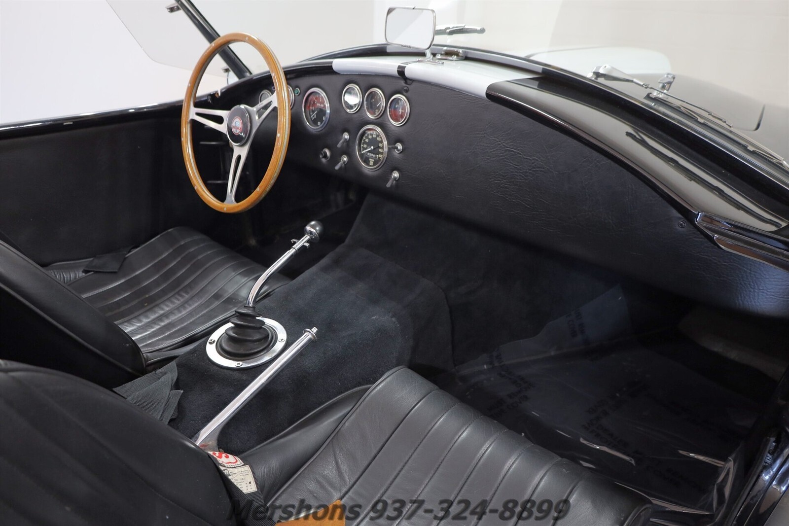 Gloss Black with White Stripes over a Black Interior. 289 Cubic Inch Small Block paired to a 4 Speed Manual Transmission. This is one INCREDIBLY Desirable Cobra! Contemporary was a Company that built near 1:1 exact Cobra Kits. With a Tubular Ladder Chassis, A Jaguar style independent Rear Suspension, And a body that utilized the same molds as the Original Cobras this is as close as you will get without spending over a MILLION Dollars on a Real Shelby Cobra! Most Replicas have inner fenders and trunk pans that are pop riveted to the body, Not a Contemporary. The entire Bodyshell is a true Monocoque piece with every panel properly bonded together just like the Originals were. The Frames are built exactly like the Originals but with thicker tubing for less flex and better handling. This really is the most honest version of the Legendary Shelby Cobra. Driving a Contemporary Cobra will be the same experience as driving an original, and that is part of why they are so sought after and can command sky high prices! This one is Incredibly well dialed in! Loads of fun out on the road with a warmed over 289 that RUNS OUT! In a car that weighs less than 2,300 pounds this Cobra will FLY! And it is incredibly fun to bang gears in the toploader 4 Speed! Get ready to feel like you are Ken Miles because this is the same view he had out the windshield! This Cobra will NOT LAST LONG! So please give us a call today!!