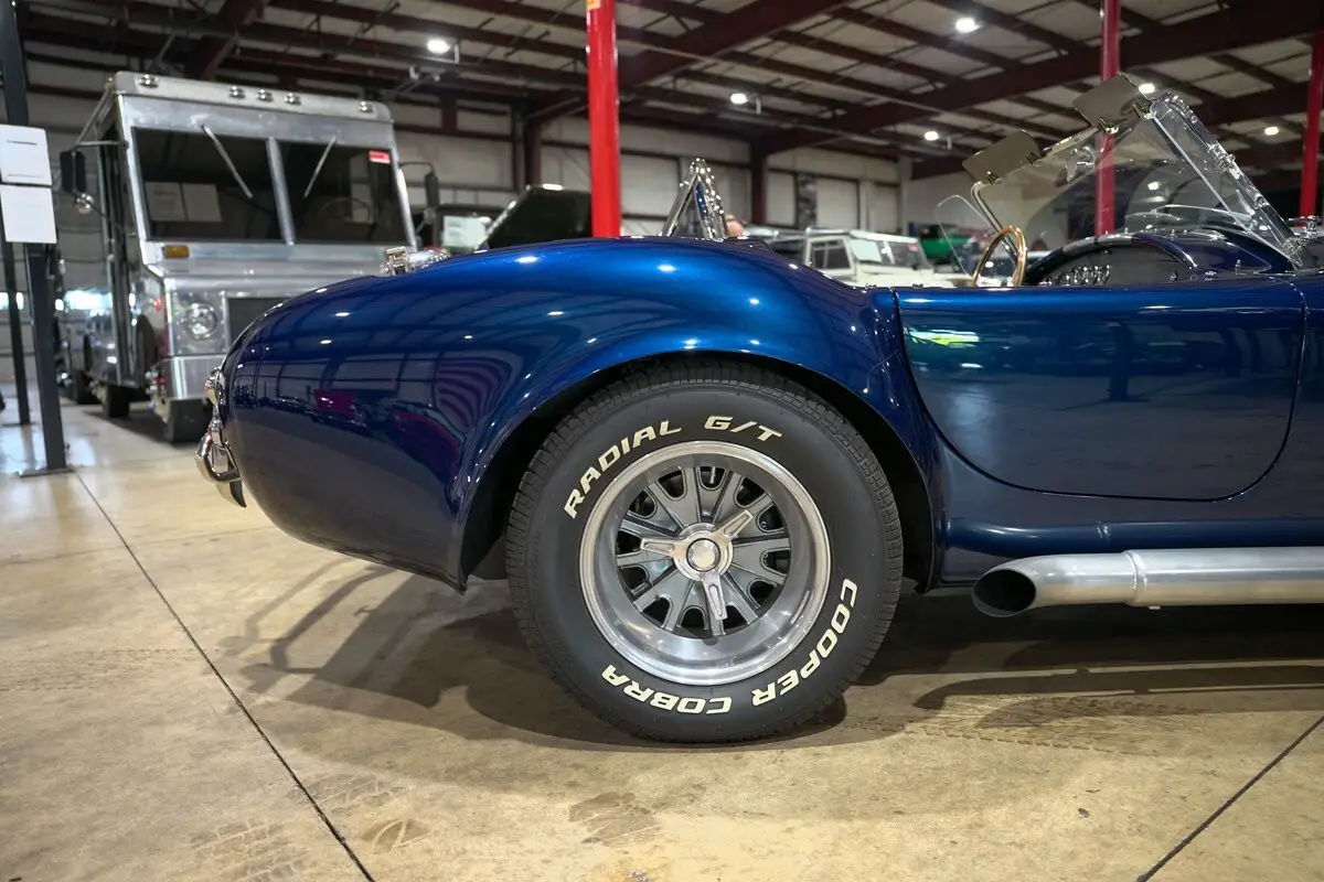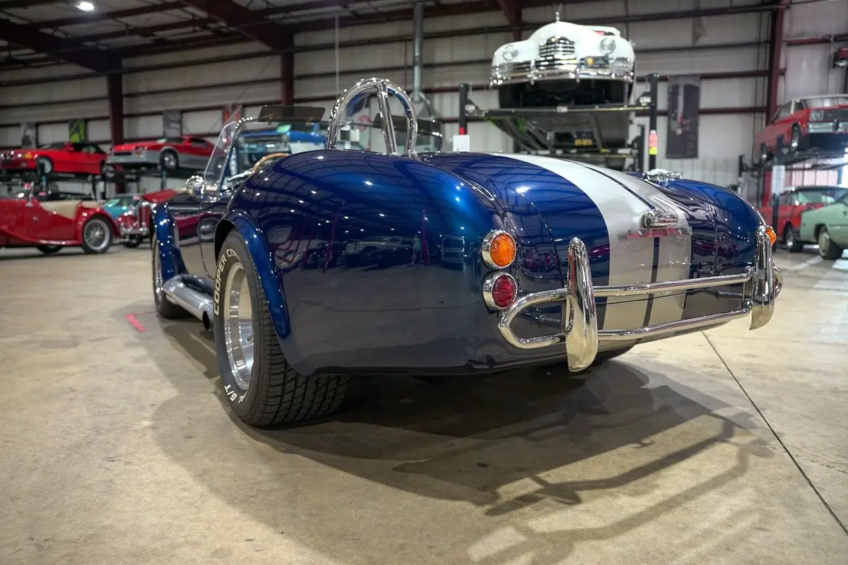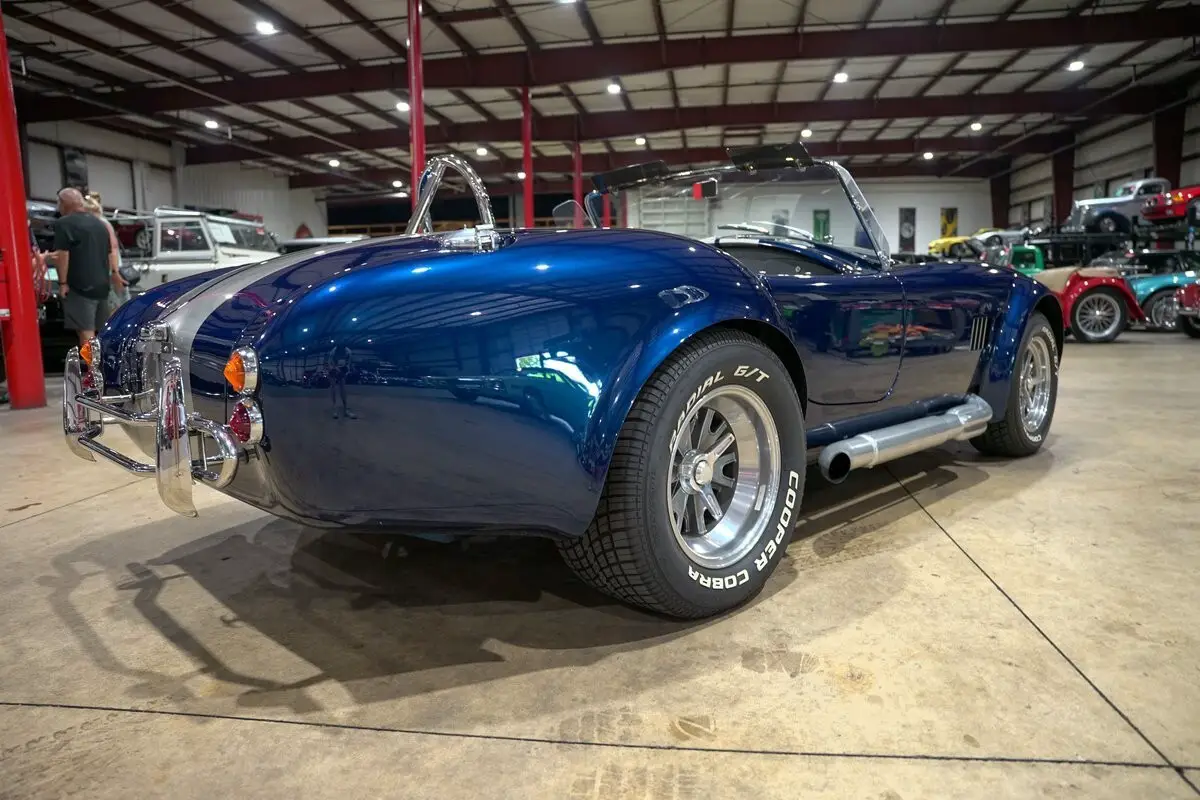 GR Auto Gallery is excited to present this 1965 Shelby Cobra Superformance Replica, finished in Indigo Blue with a titanium stripe over a black leather interior. Built to replicate one of the most iconic sports cars in history, this MKIII from Superformance captures the essence of the original 427 Cobra with remarkable accuracy and craftsmanship. The classic styling cues are all here, from the knock-off style wheels and chrome bumpers to the polished stainless driver's roll bar, hood scoop, and round taillights. The silver ceramic side pipes add both performance and an unmistakable soundtrack, making this Cobra look and sound every bit as menacing as its 1960s inspiration.