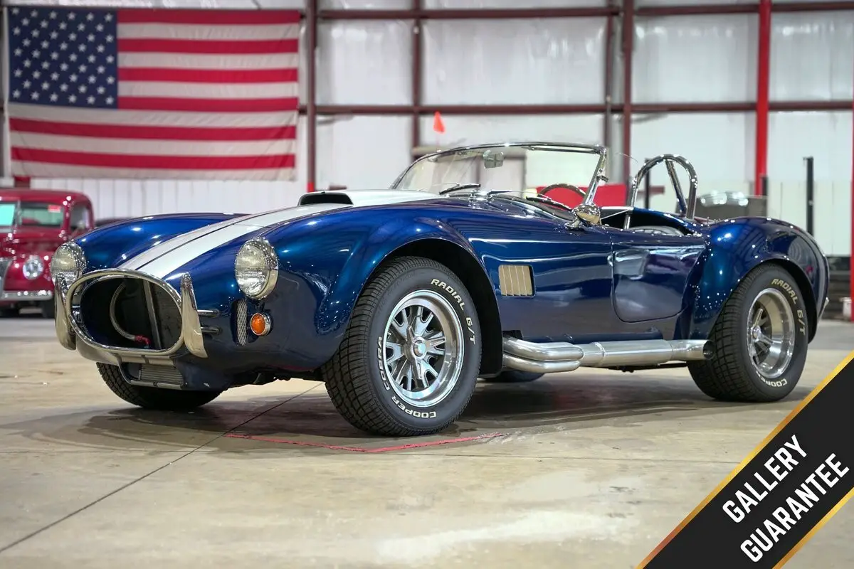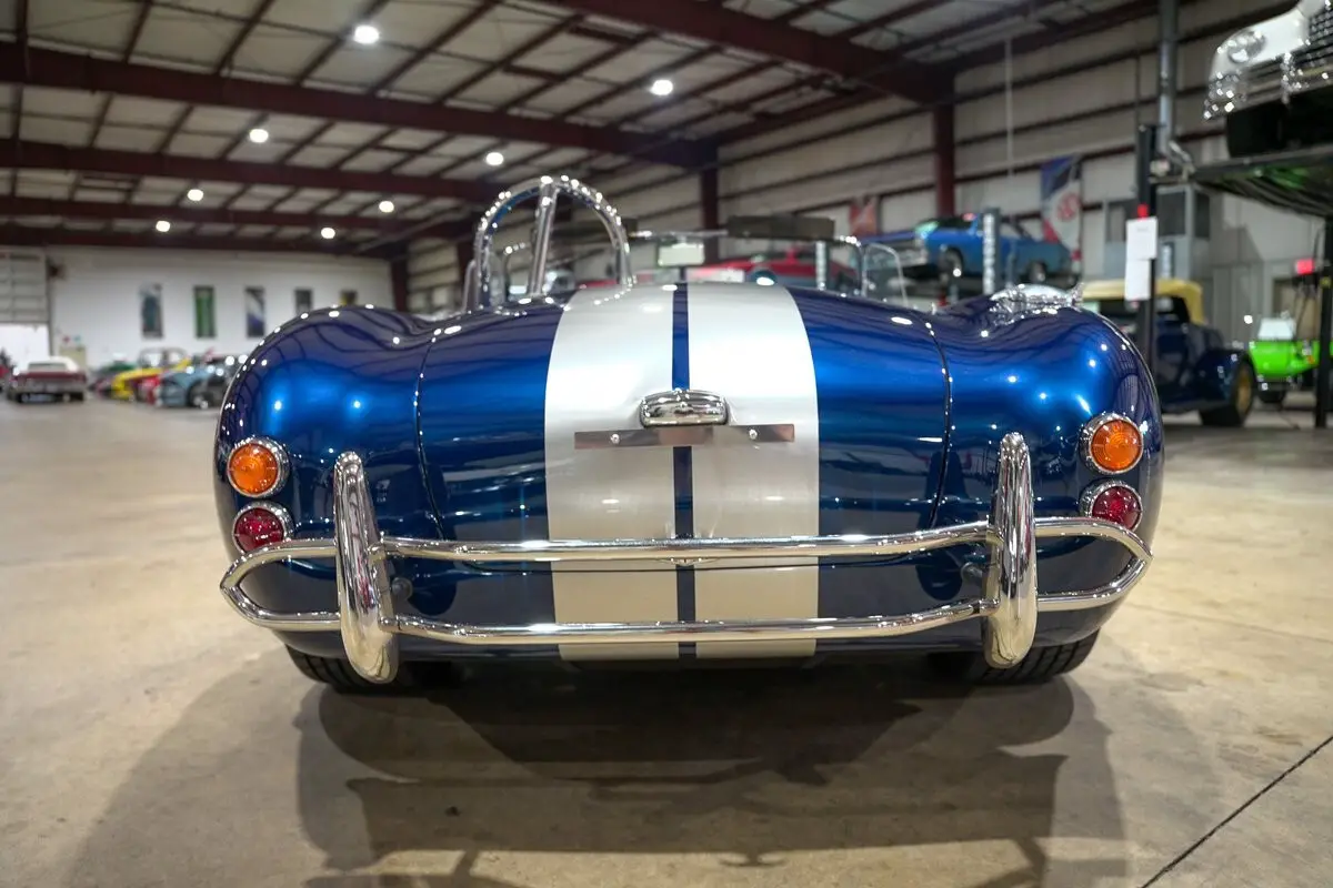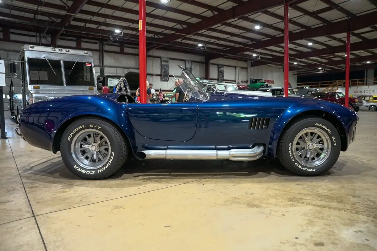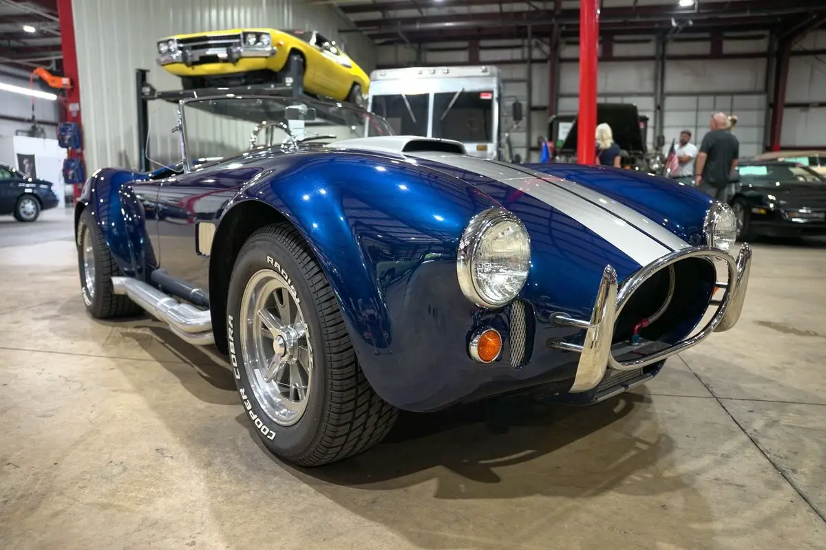 GR Auto Gallery is excited to present this 1965 Shelby Cobra Superformance Replica, finished in Indigo Blue with a titanium stripe over a black leather interior. Built to replicate one of the most iconic sports cars in history, this MKIII from Superformance captures the essence of the original 427 Cobra with remarkable accuracy and craftsmanship. The classic styling cues are all here, from the knock-off style wheels and chrome bumpers to the polished stainless driver's roll bar, hood scoop, and round taillights. The silver ceramic side pipes add both performance and an unmistakable soundtrack, making this Cobra look and sound every bit as menacing as its 1960s inspiration.