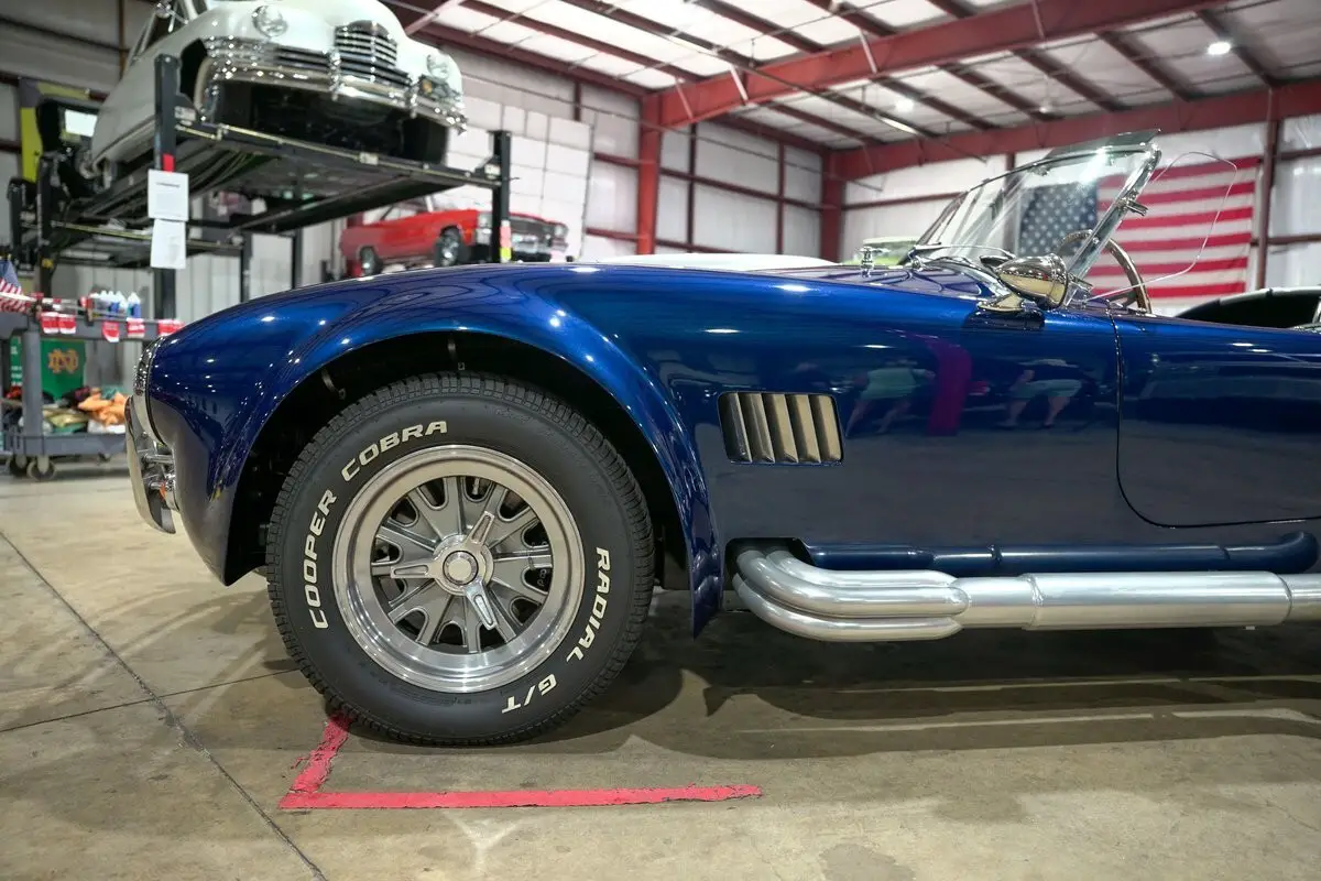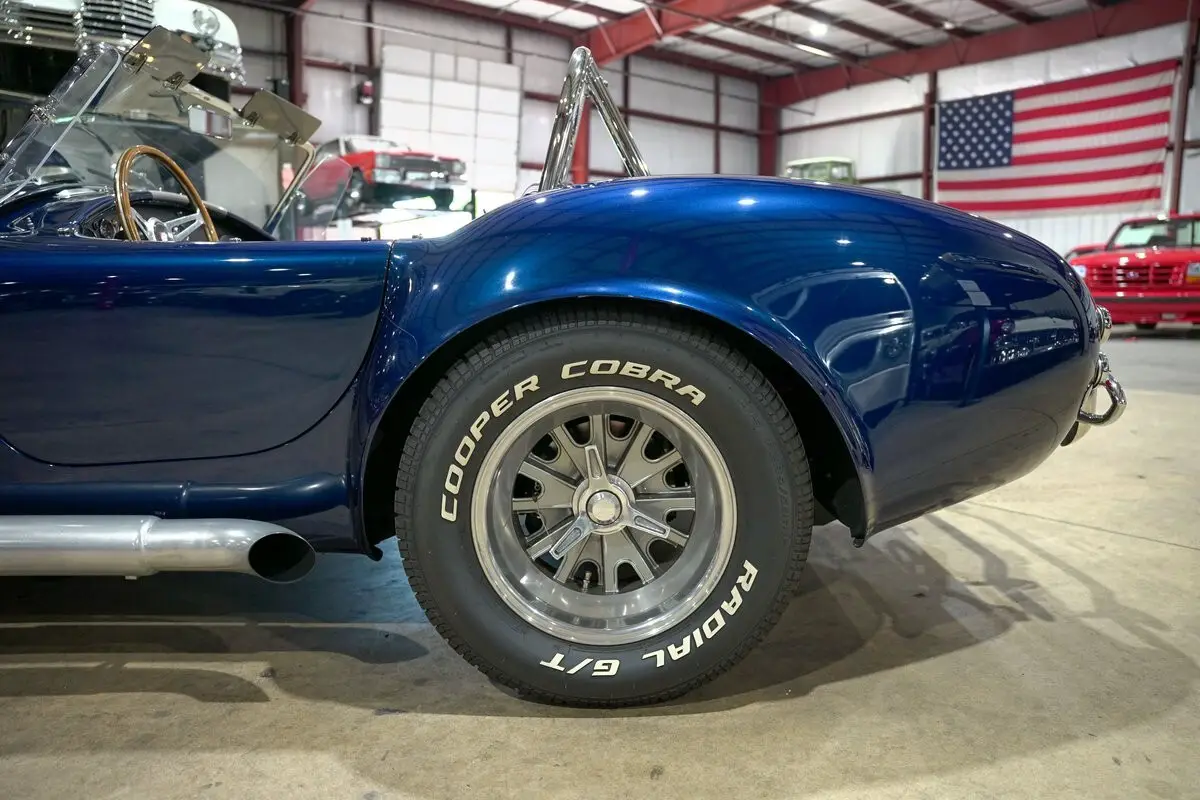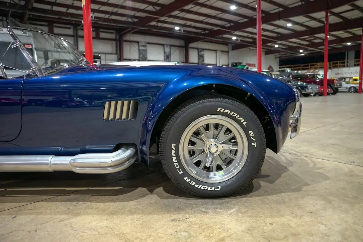 The interior continues the authentic feel with original-style Smiths gauges, a Moto-Lita wooden steering wheel, and original-style AC pedals. The low-slung black leather bucket seats put you right in the heart of the action, while a soft top and tonneau cover are included for practicality. This Cobra is a machine built for enthusiasts who want an immersive, visceral connection to the car every time they turn the key.