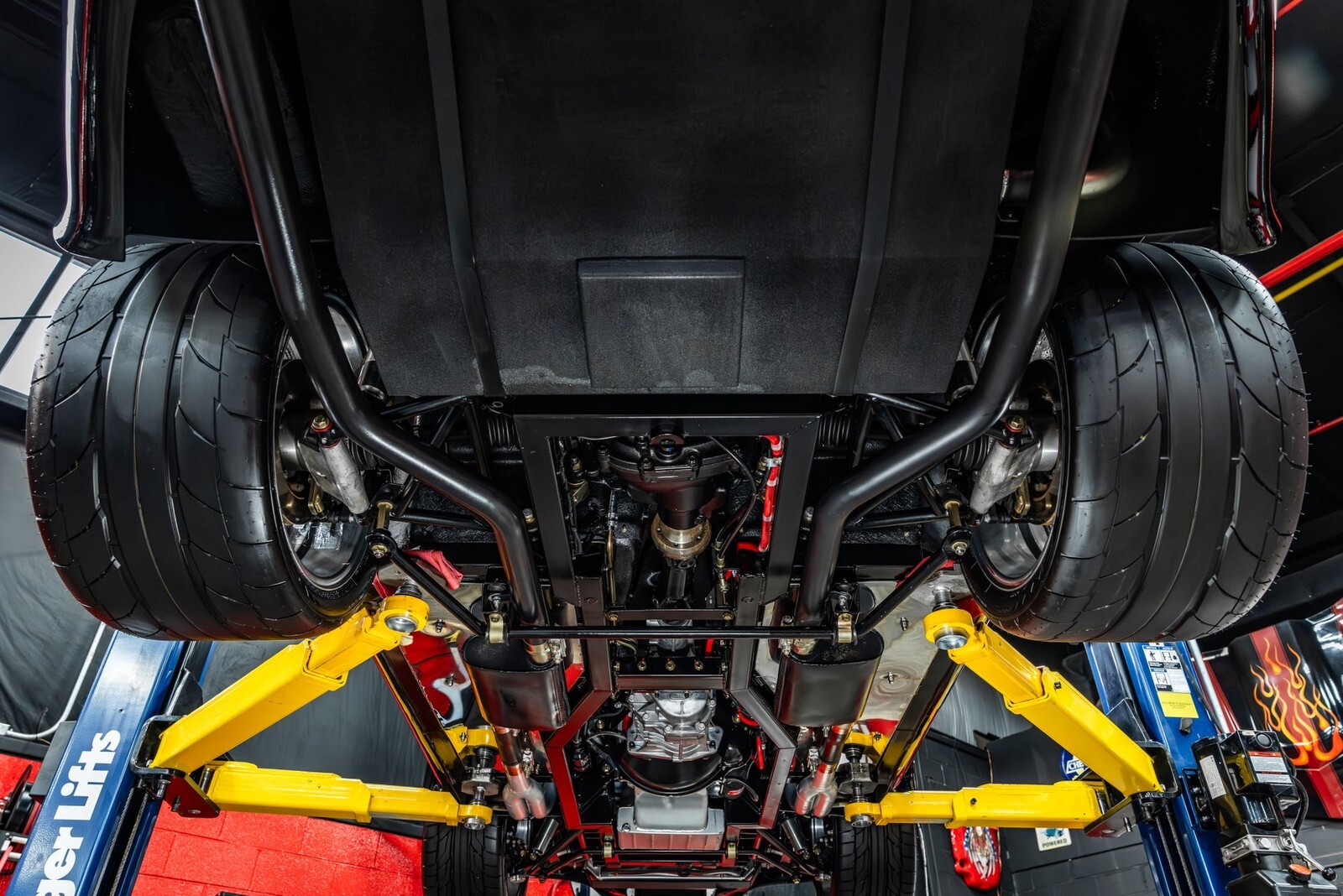 Under the forward-opening hood sits a Prestige 427ci Stroker V8 Engine with a Multi Port Fuel Injection Setup. Power is sent to the Road through a Tremec 5 Speed Manual Transmission and an independent 8.8 Rear End with 3.55:1 Gear Ratio! Additional features include, Power Steering, Power Brakes, Electric Engine Fans, and a Hydraulic Clutch! The underside of this '65 looks brand new like the rest of the car! Take a look underneath to see the Low Mileage Condition of the Painted Frame, Removable Transmission Crossmember, Bed Liner Finished Fuel Tank, and Explosion Proof Bell Housing.