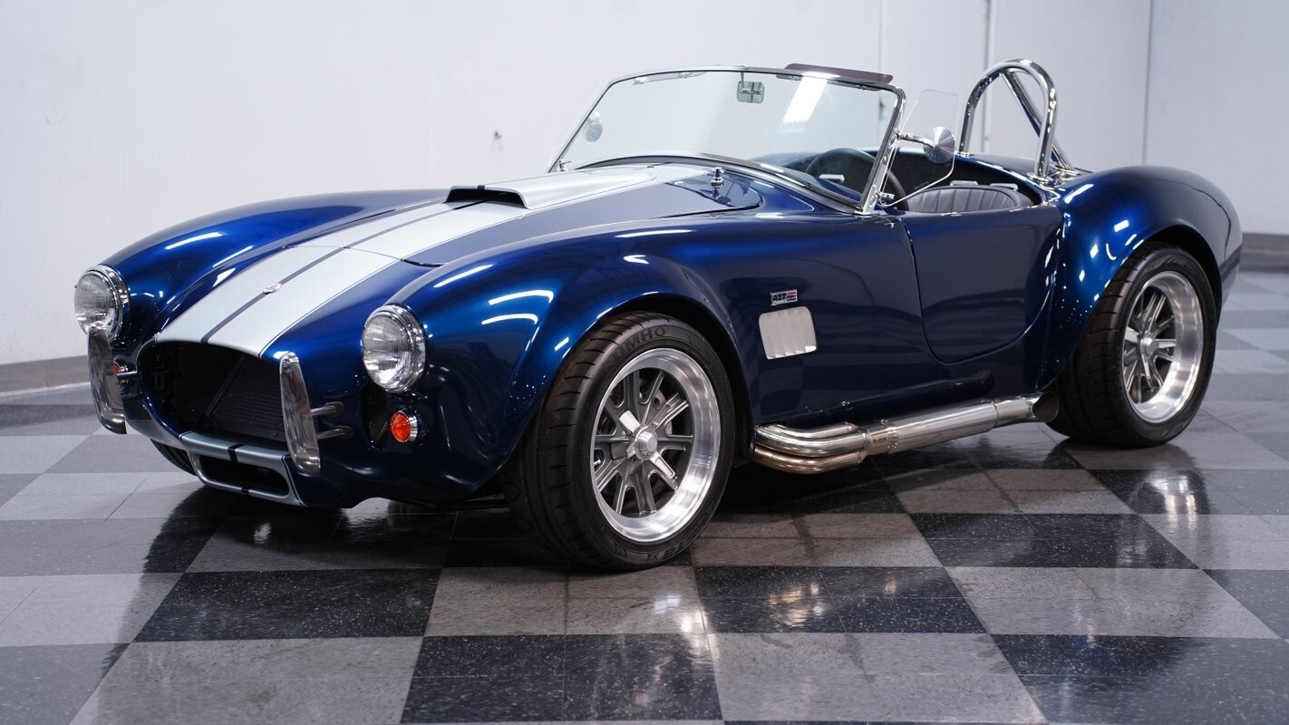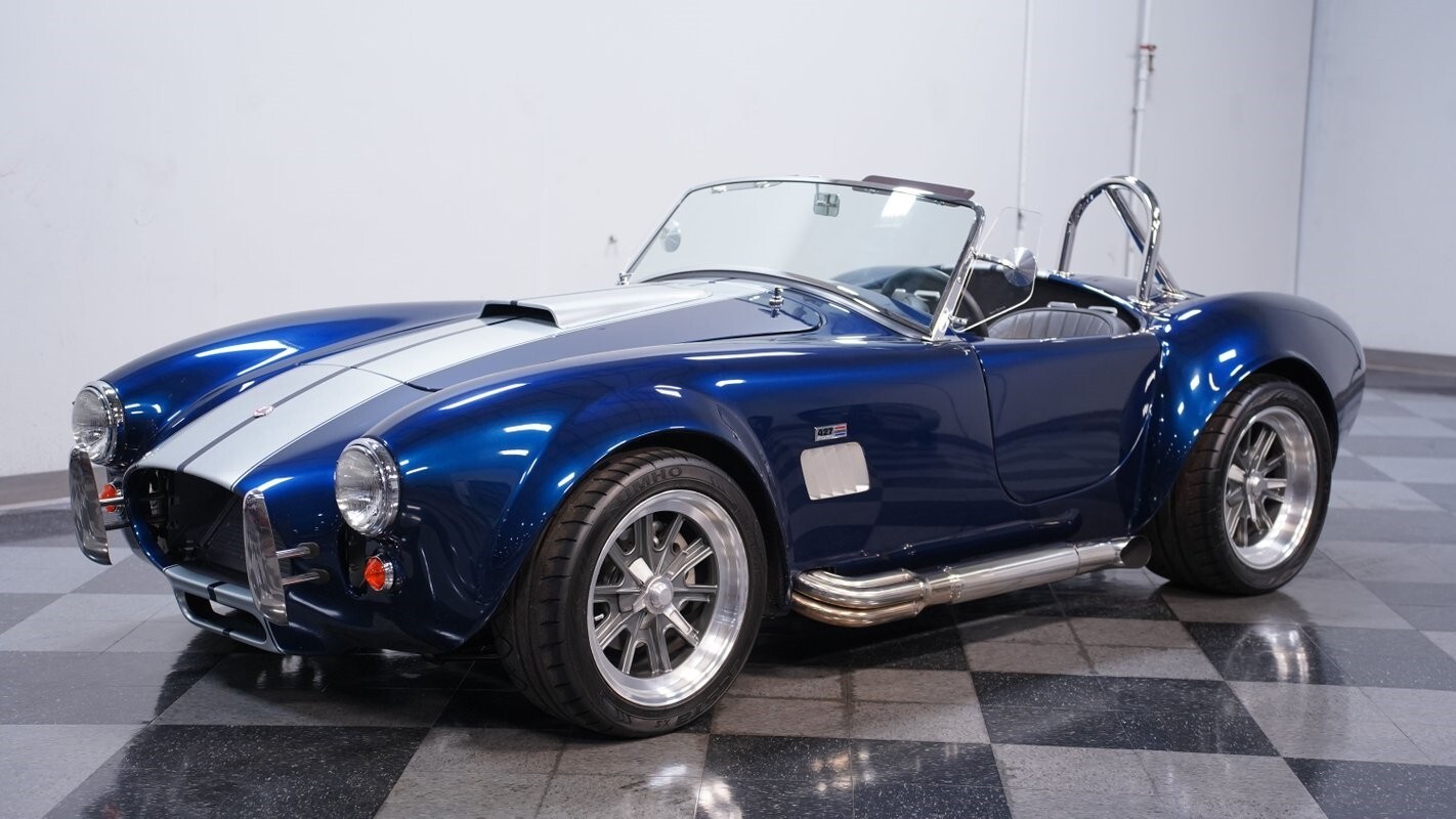 If you are looking for a vehicle that is guaranteed to turn heads and make you a bunch of new friends, then there is no better car than this 1965 Shelby Cobra Factory Five Mark IV 427. Painted in a beautiful Lexus Indigo Blue with a pair of complementary silver racing stripes, this open-top roadster has just 2001 miles on it since it was built and brings all the no-nonsense power and performance of Shelby's original masterpiece, and adds a few extras to make it even more fun to drive.