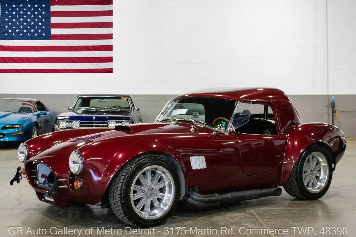 GR Auto Gallery is pleased to present this 1965 Shelby Cobra Factory Five Mark I Roadster for your consideration. Finished in a stunning Merlot exterior over a clean Black interior, this Cobra is powered by a strong 351 cubic inch V8 mated to a 5-speed manual transmission and geared to a posi Ford 3.08 rear end. This professionally built Factory Five kit was completed in 2006 and comes with extensive documentation of the full build process. Highlights include MSD ignition, electric fuel pump with switch, traction bars, side exit exhaust pipes, brand new tires in 2023, a paint-matched removable hard top, and a car cover. Inside, you'll find Simpson racing harnesses, a wood-trimmed steering wheel, Autometer gauges, an MRT shift knob, and more. Additional features include disc brakes up front, Halibrand-style wheels, and the unmistakable performance look and sound of a proper Cobra replica. Drive this one out of our showroom or have us assist with shipping it to you anywhere in the United States! Don't hesitate to call us with any questions or for more information.