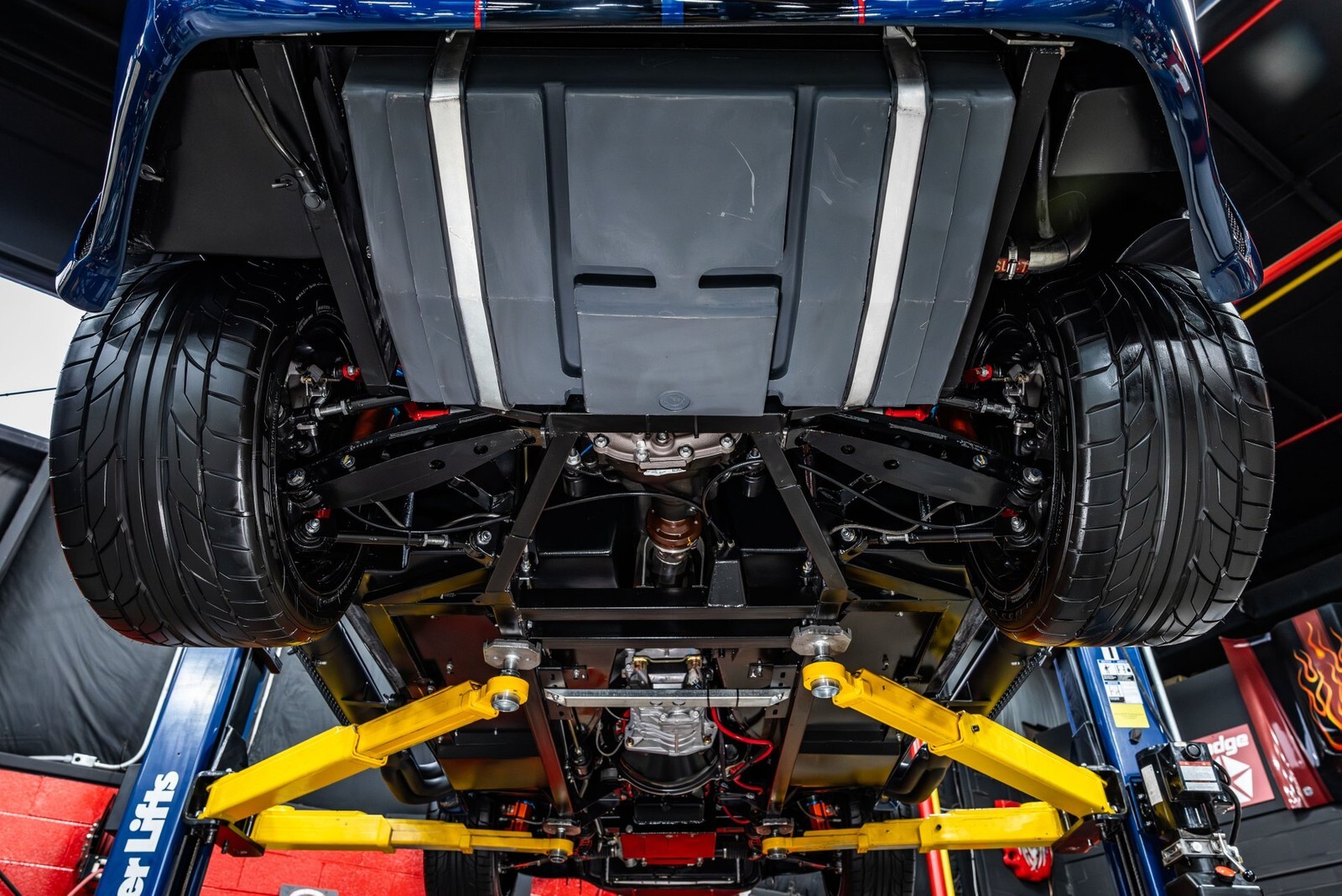 Under the forward-opening hood sits a Roush 427R V8 Engine! Power is sent to the rear tires through a Tremec TKX 5 Speed Manual Transmission and a Ford Rear End with Posi Traction! This Cobra is equipped with Power Brakes, Hydraulic Clutch, Power Steering and Power Brakes! The underside of this '65 looks brand new like the rest of the car! Take a look underneath to see the nice condition of the Painted Frame, Crossmember, Explosion Proof Bellhousing, Four Wheel Disc Brakes, New Fuel Tank and the fully Adjustable Suspension!