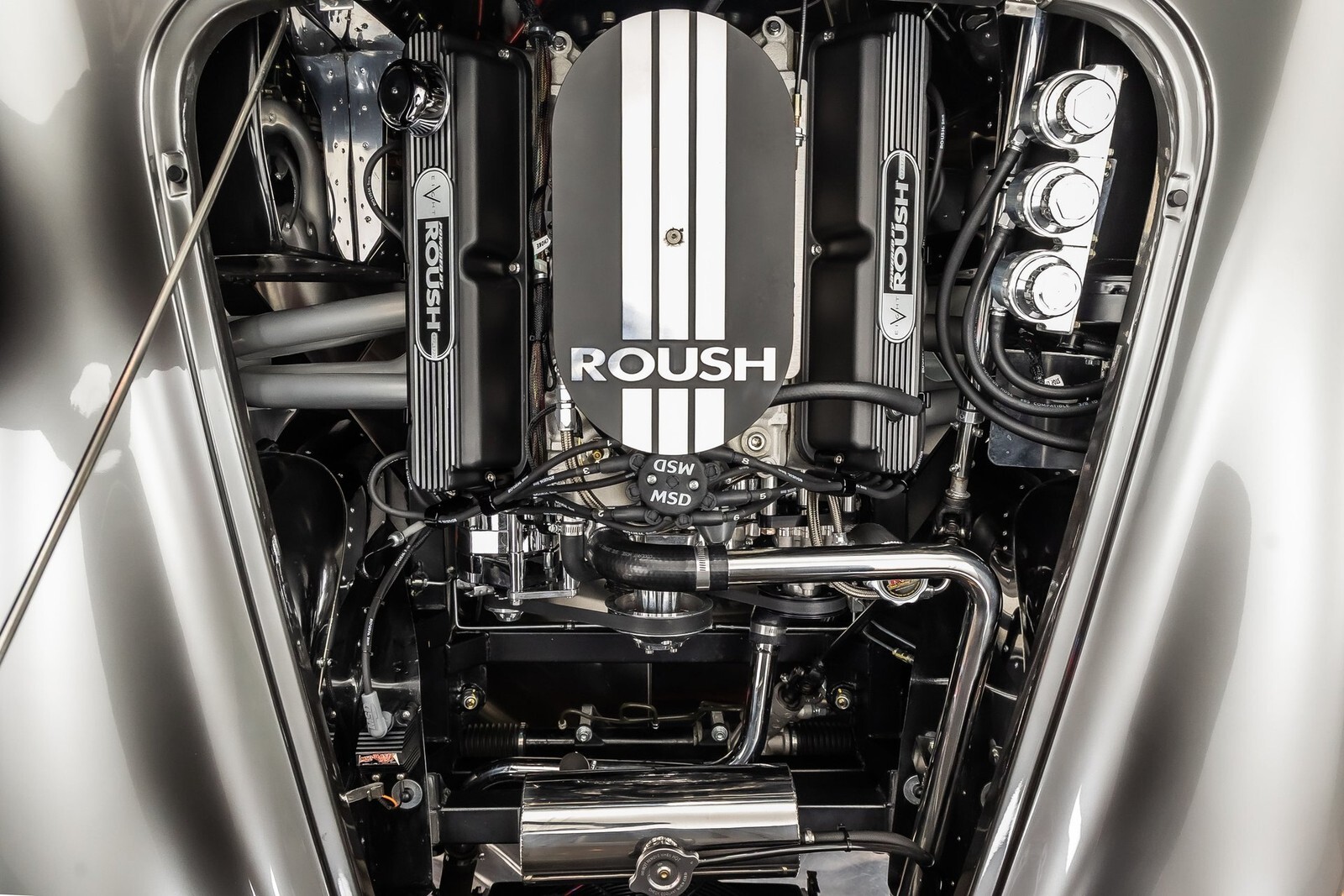 Under the forward-opening hood sits a Roush 427ci V8 Engine Making 560hp! Power is sent to the rear tires through a Tremec 5 Speed Manual Transmission and a Ford 8.8 Rear End with 3.55:1 Gears! This Cobra is equipped with a Hydraulic Clutch and Power Steering! The underside of this '65 looks brand new like the rest of the car! Take a look underneath to see the nice condition of the Painted Frame, Crossmember, Explosion Proof Bellhousing, Four Wheel Disc Brakes, Aluminum Fuel Tank and Independent RT4 Suspension!
