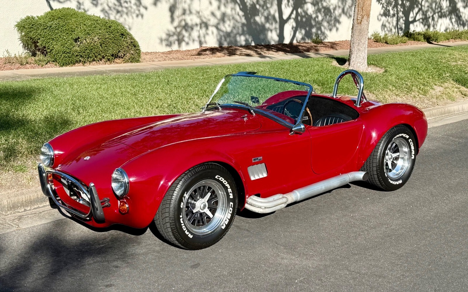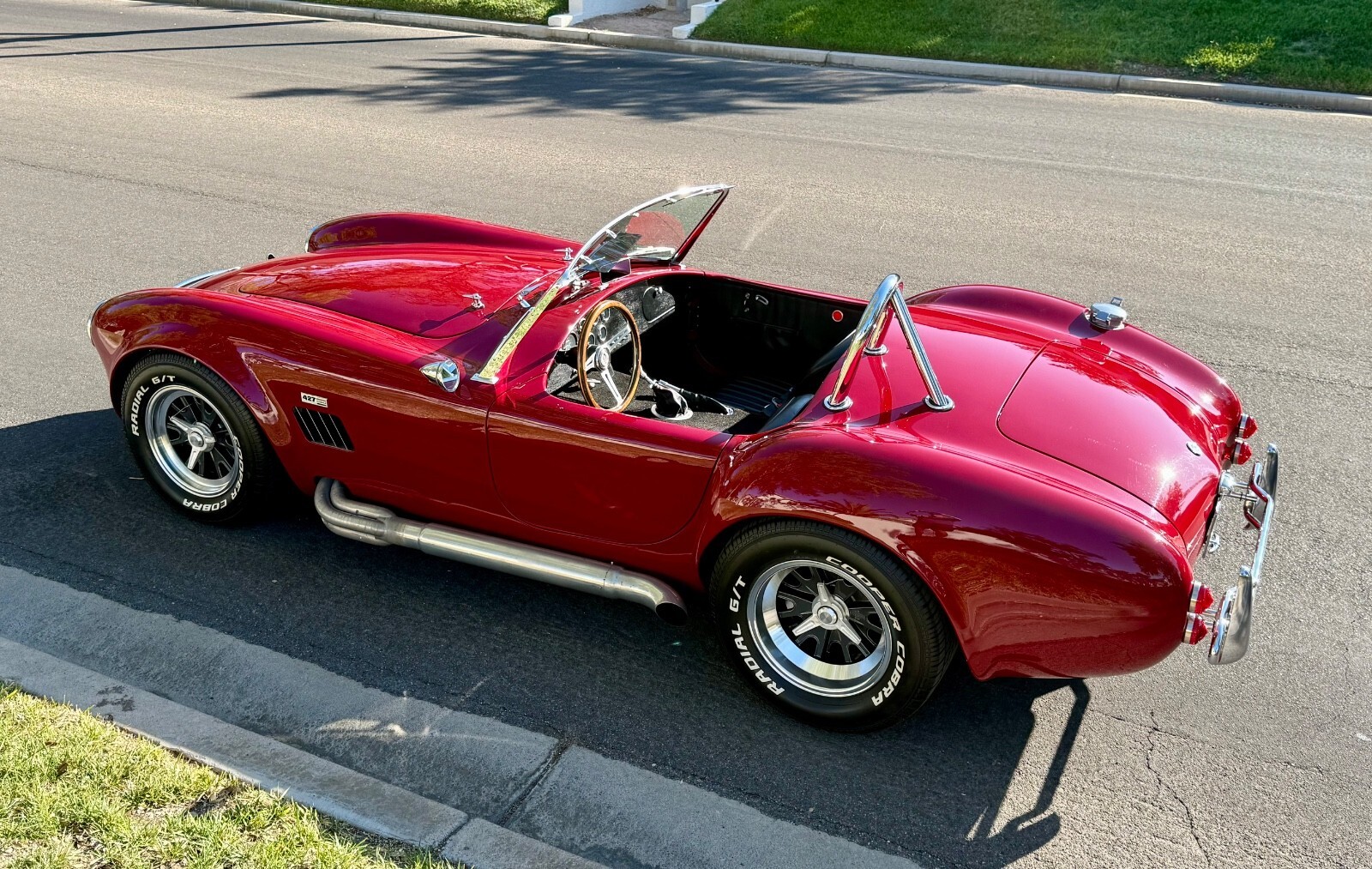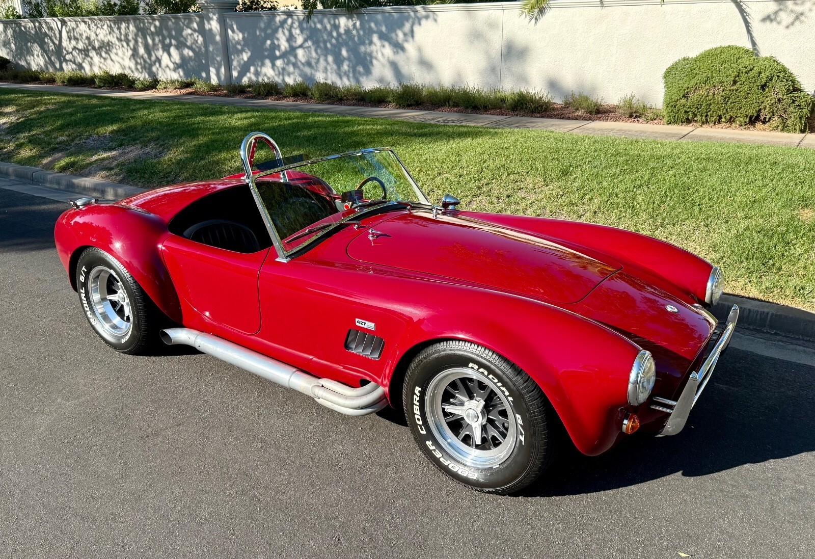 Steven Arntz/Ron Butler body on a G&R chassis. Titled as a 1988 Steven Arnt’z 1965 Shelby Cobra Replica. Ford 351W rebuilt 2023. New Tremec T5 5speed transmission, new 8” Eaton Tru Track posi differential with 3.80 gears. Complete Stewart Warner gages, true pin drive knock off wheels.