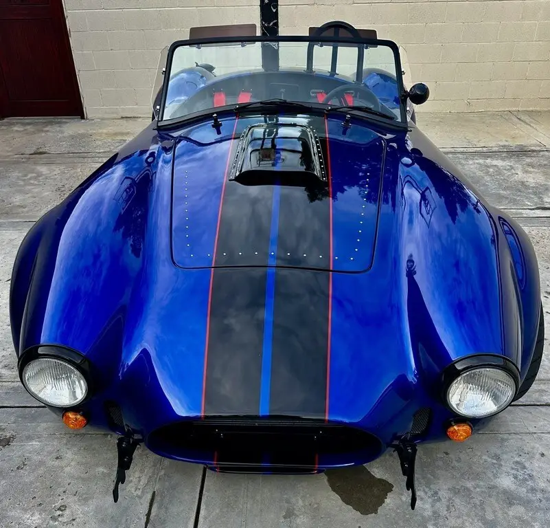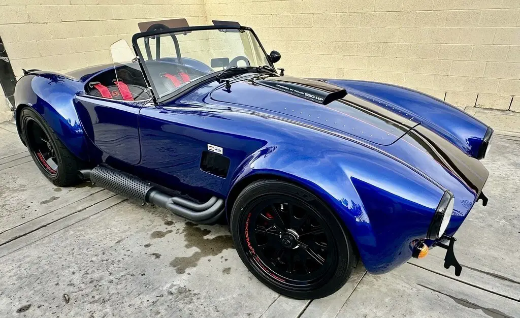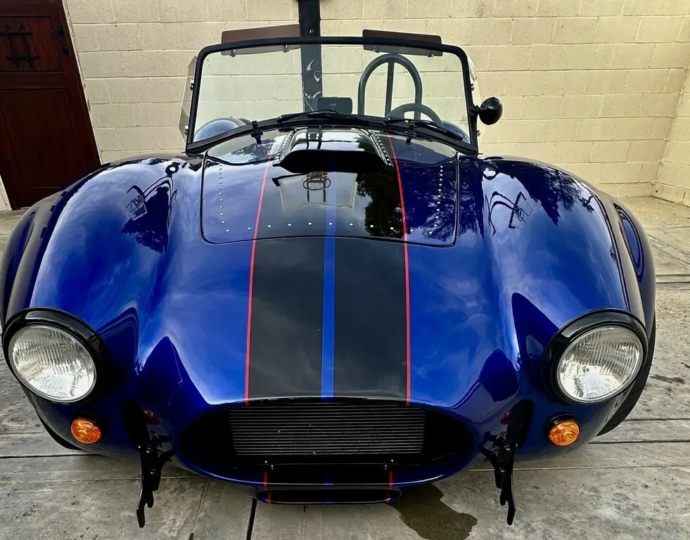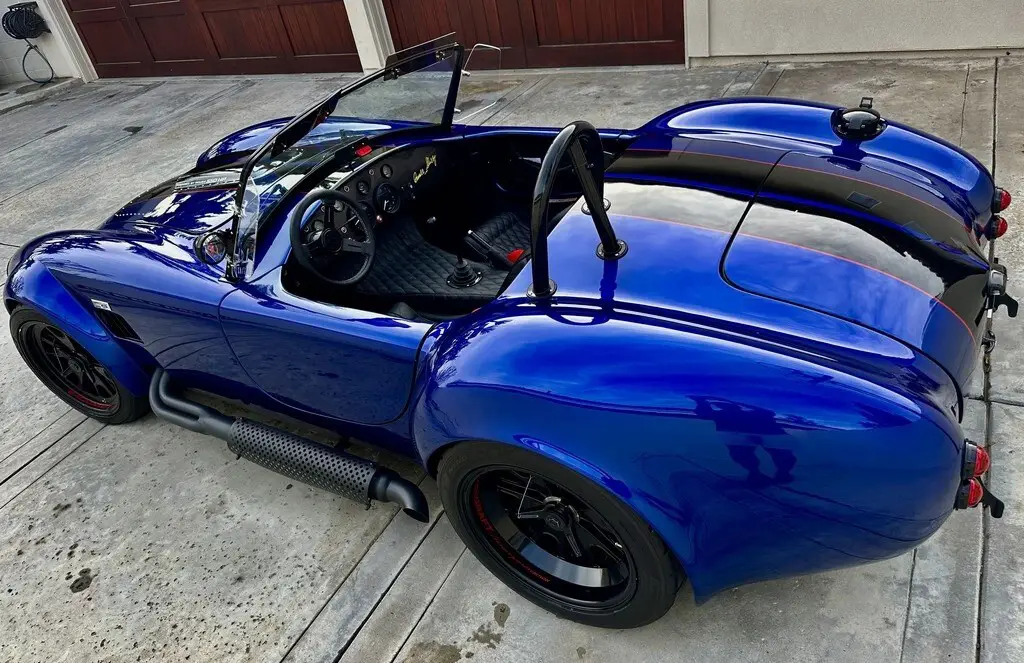 1965 Shelby Cobra Backdraft Racing Replica for Sale in Bakersfield, CA 93311 Roush 427R Crate 8 • 550 HP • 5-Speed Manual Offered for sale is this exceptional 1965 Shelby Cobra Replica, a professionally built Backdraft Roadster powered by a Roush 427R crate engine producing an exhilarating 550 horsepower. With only 1,316 miles, this Cobra presents in excellent condition and delivers the raw performance, sound, and presence these cars are famous for. Finished in a stunning deep blue exterior with black and red racing stripes, paired with a black leather interior accented in red, this Cobra is both aggressive and refined. &