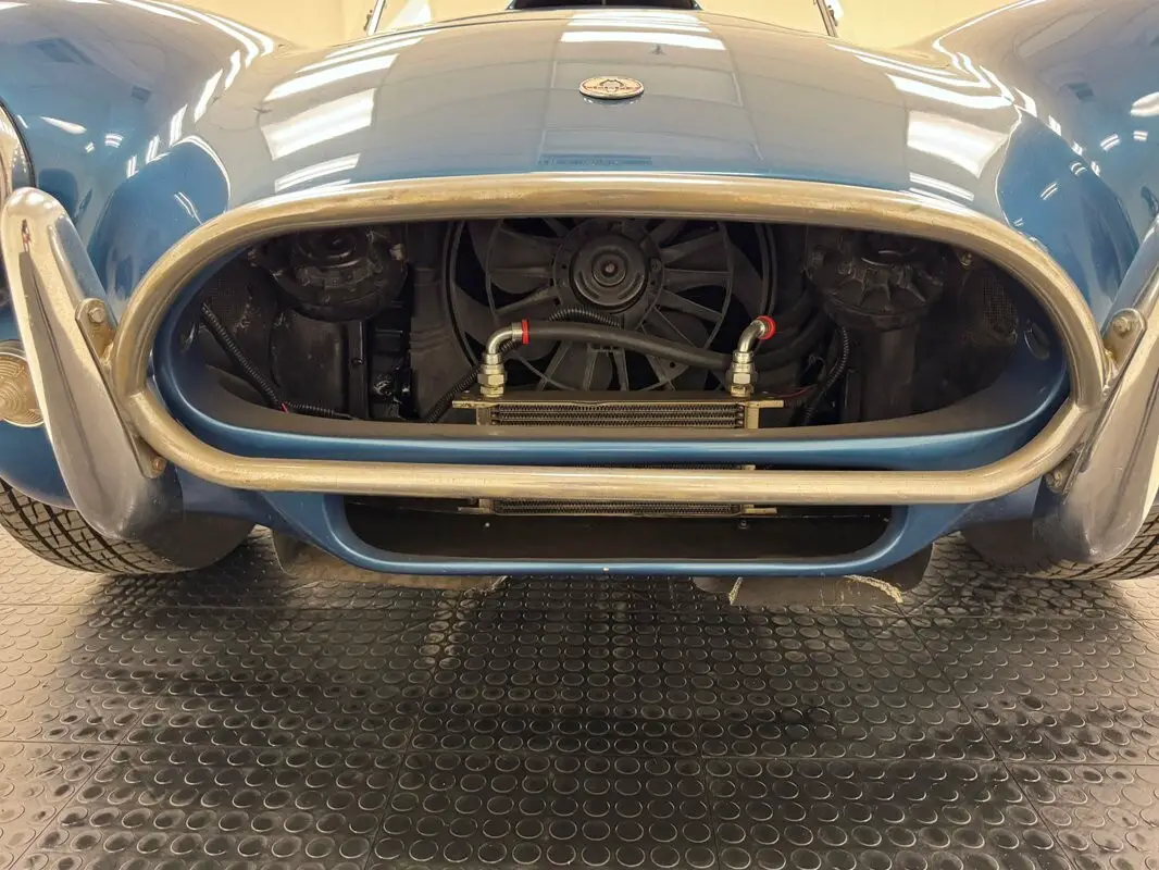 In the mid 70's, a blueprinted 289ci V8 was installed and rated at 271 horsepower, fueled by a Holley 4-barrel carburetor. Behind it is a Toploader 4-speed manual transmission that routed power to 3.77 gears in the rear axle. Finned Cobra stamped valve covers are on board.