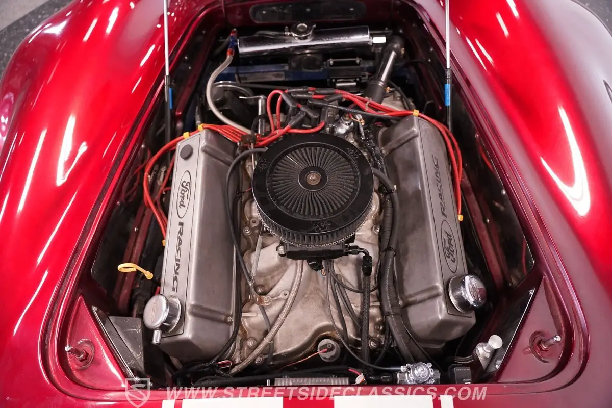 Under the hood lies a formidable 460 V8 big block engine paired with a smooth-shifting 3-speed automatic C6 transmission. Upgrades like the Edelbrock intake manifold combined with a Holley Sniper EFI ensure reliable fuel delivery and enhanced performance. The aluminum radiator keeps temperatures in check, while long tube headers and Ford racing valve covers add both style and function. Power steering and power disc brakes on both front and rear wheels provide confident handling and stopping power, making this Cobra a joy to drive.