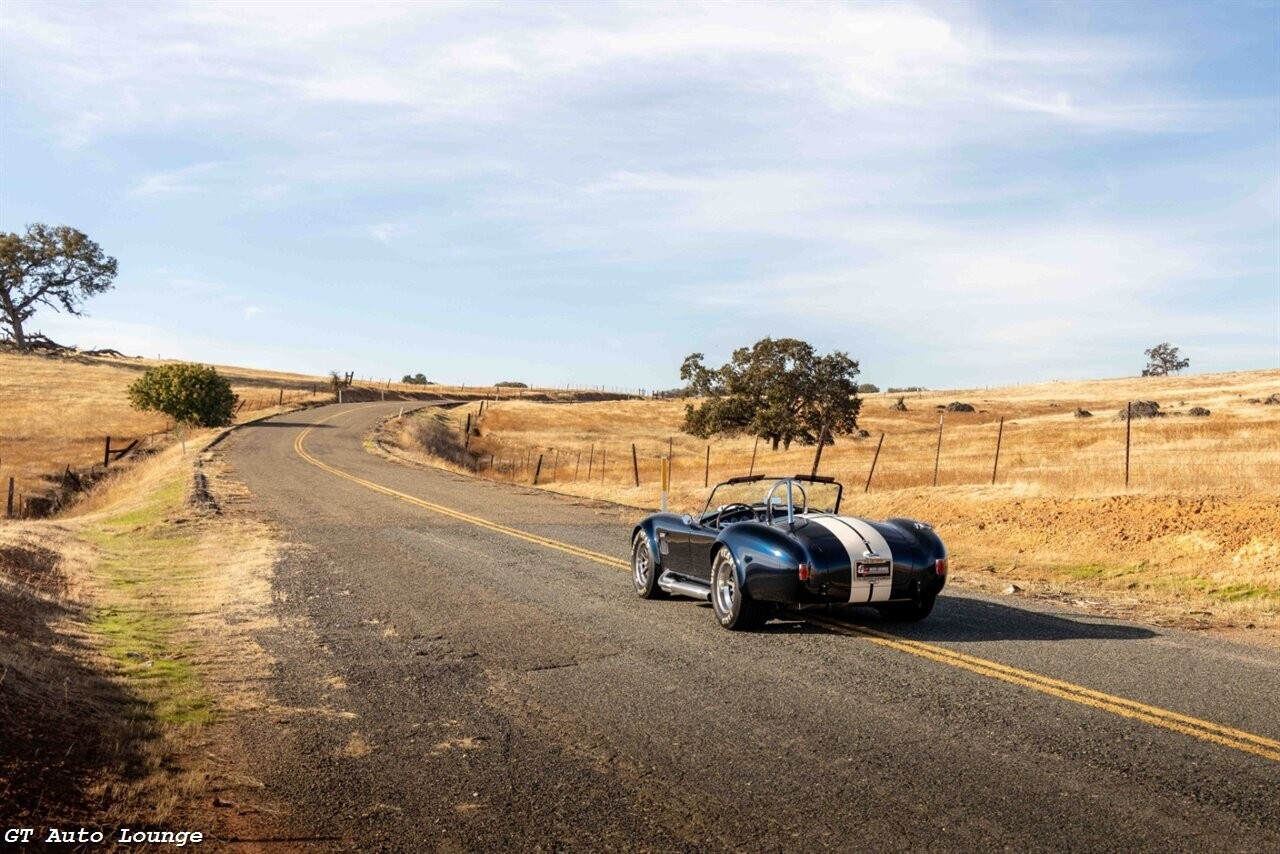 1965 Shelby ERA Cobra "Super Snake" in Dark Blue Metallic w/ Wimbledon White Stripes over Black Interior. Equipped with a Twin-Paxton Supercharged 427ci V8 Engine mated to a Tremec 5 Speed Manual Transmission. This millennium built ERA 427 “Super Snake” Cobra is outfitted with a durable fiberglass body and is powered by an early 427 engine stroked to 454 cu.in. The engine is outfitted with Edelbrock aluminum heads, a medium riser intake with matching 1964 Ford 427 dual quad Holley carburetors and an aluminum “Cobra” oil pan. The Super Snake optioned engine is fitted with period-correct twin SN60J Paxton superchargers and proper Cobra lettered carburetor bonnets. All this power is delivered via a Tremec TKO 600 5-speed manual transmission and Jaguar independent rear suspension with inboard disks. The "Super Snake" twin Paxton Supercharger installation and tuning was performed by Cobra Automotive, a world renowned Shelby race and restoration shop. Ready to be driven and enjoyed! For more information please call 916-387-9997.