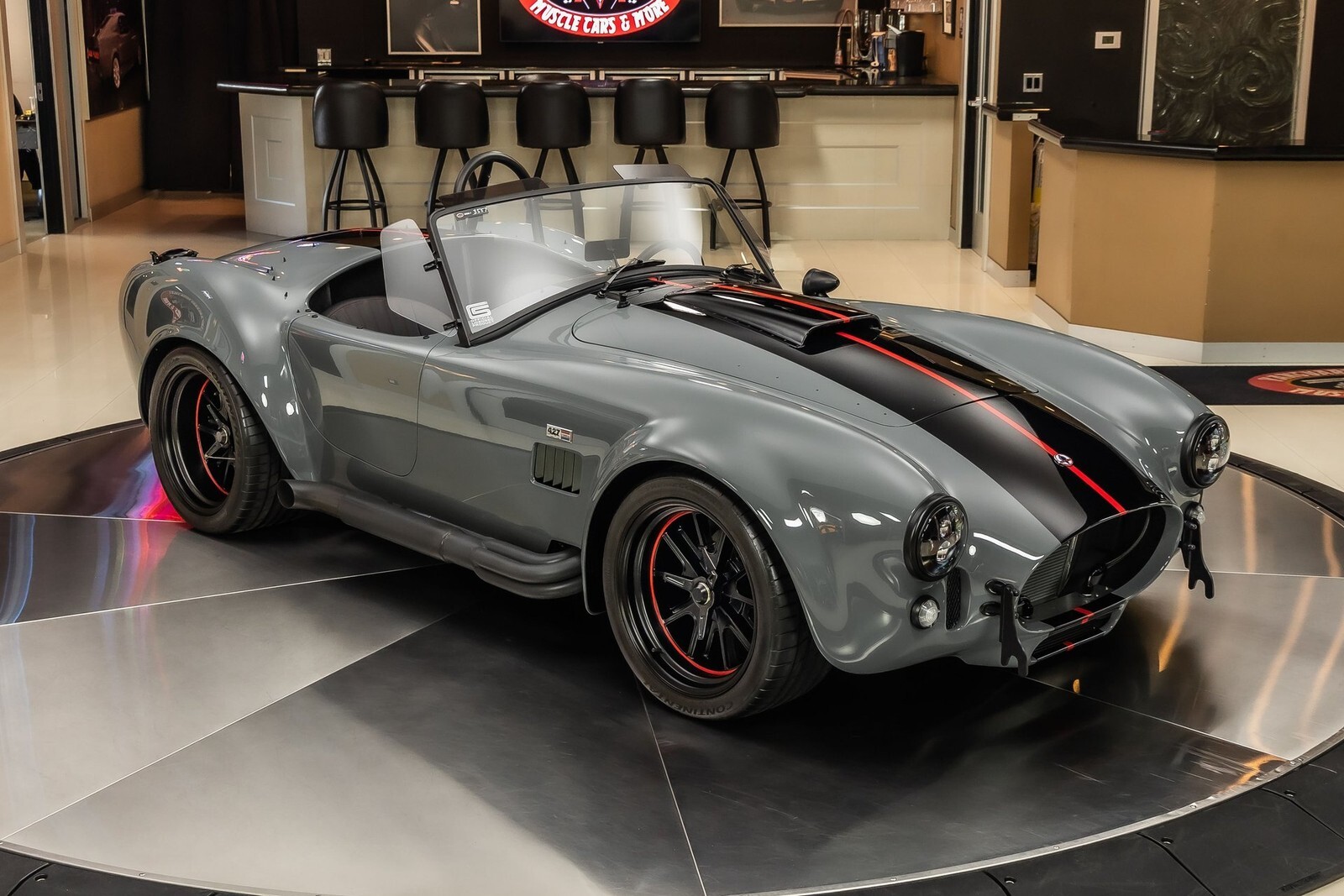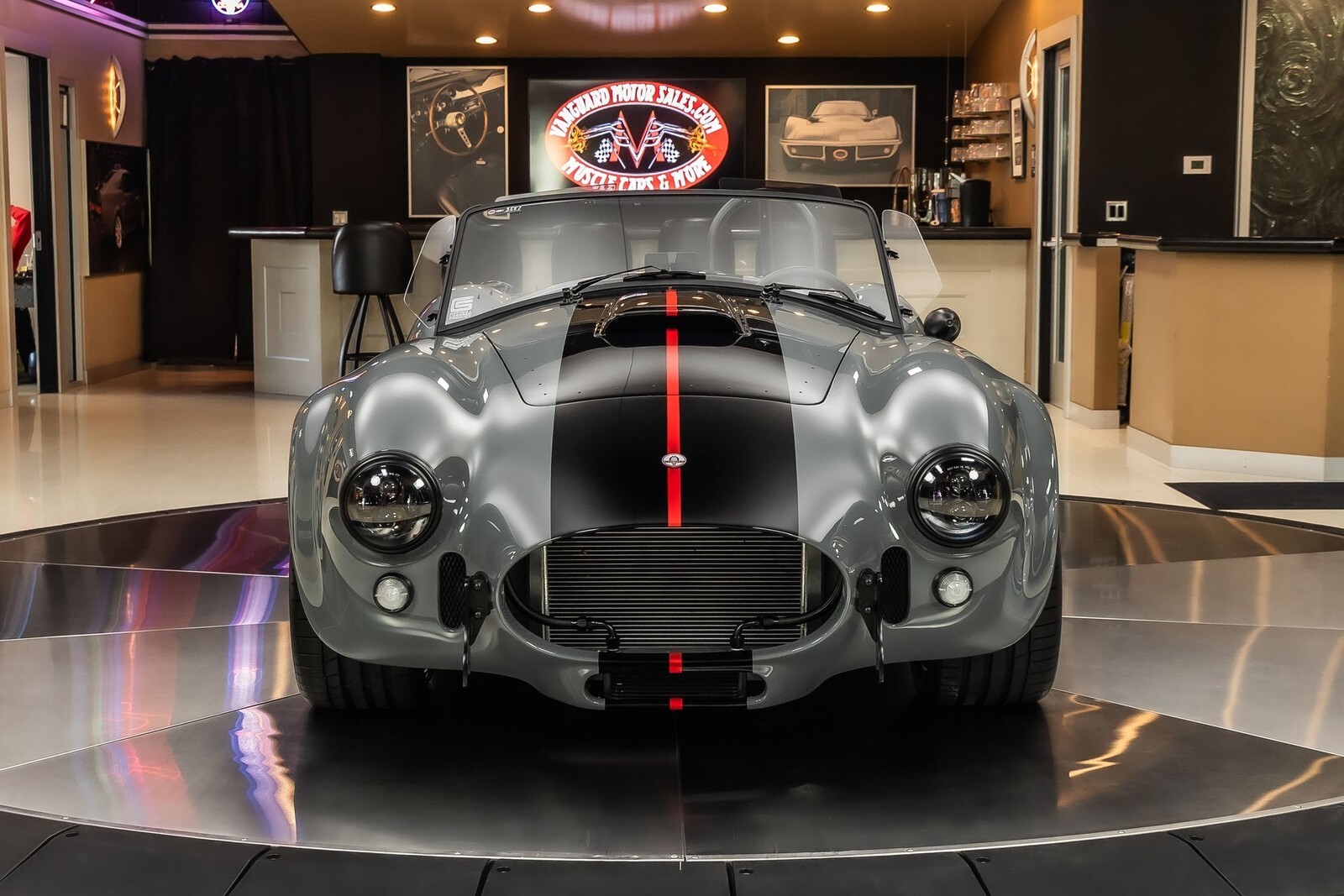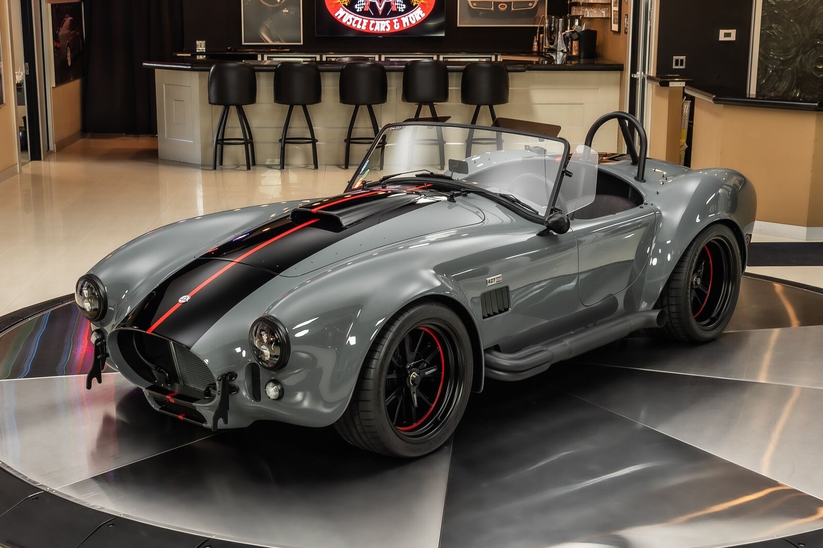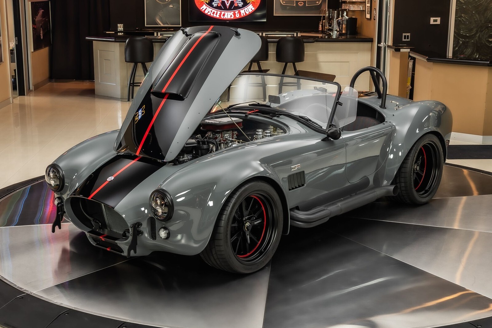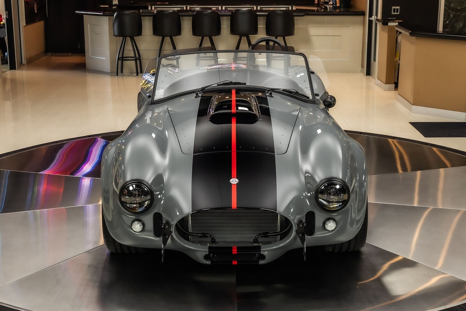 Check out this amazing 1965 Shelby Cobra Superformance! This Cobra Contains under 700 miles and is Finished in Beautiful Dark Grey with GT40 Style American Racing Wheels! Additional features include, Black Out Package, Scooped Hood, Driver Side Roll Bar and Side Pipes! Inside, this roadster is sporting a Black Leather Interior with Red Stitching, Shelby Floor Mats, Bucket Seating, 3 - Spoke Leather Wrapped Steering Wheel, Lap Belts, Smiths Gauges, and a Finished Trunk with a Cover!
