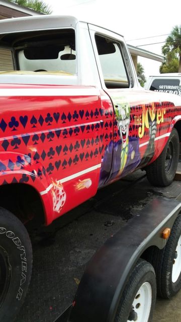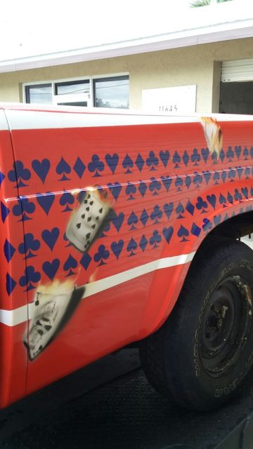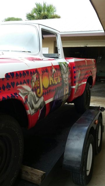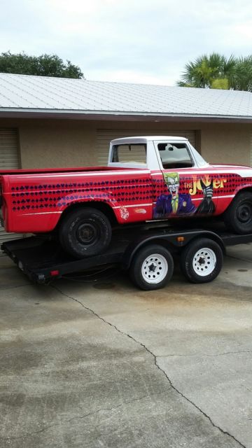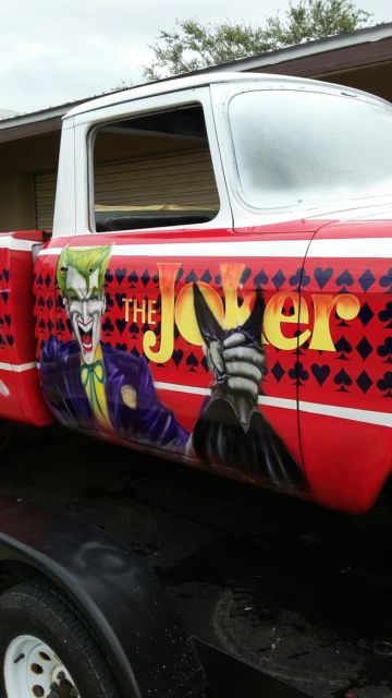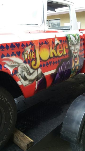 Selling my one off Hot Wheels Champ. Yes! the year of the Joker Studebaker Hot Wheels version. This California Truck has been stripped of it 4 coats of paint. Primer etched and airbrushed and cleared. Needs glass reinstalled, and interior doors covered. Floors are patched solid. The rest of the truck is stock. The 259 was rebuilt at 030 over by local machine shop. Still on break in oil at this point with 500 miles All new brake cylinders and master. New lines. Not been on the road yet but it turning heads on the trailer coming home from the paint booth. Some things need attention. Maybe front end parts ( stock) or Mustang 2 rack. No fancy rims yet. Just basic tires to roll on. The undercarriage needs some blasting and or coating. It has been a fun project but now I am done. I have all the trim and excellent grill. Both bumpers.Someone with energy needs to slam it, bag it, muscle it or just finish it for a daily ride. I know you'll love the " WHAT IS IT" queries. Doug at 772 -589-7873 Sebastian Florida. Just trying to break even on this interesting Hot Wheels one off projecttruck I have some 50 plus pictures of all the solid metal under this paint. It was 98 percent clean metal.One door skin applied and very very little bondowas needed to straighten this California truck. Last time on the road license was 1993 Black plate. A rare Automatic Truck. I have the pull out original engine and trans that go with it. I have a trailer to deliver but this is not included in the final price. The airbrush artist is in Kissimmee Florida. Look at Lex n Fx videos to see this talented man at work. It was a pleasure to watch this Joker come alive. call or email me for more original pictures of the before and after. kdwc1951@yahoo.com Reasonable offers, please. Many hours of layout work that the artist did needs to be addressed in this one off Joker. Notice the Joker has Batman's mask and is flipping the Hot Cards. WOW. Take this to the Cartoon shows in Orlando and dress the part. Look up the Studebaker Champ Hot Wheel version. It's a hoot! We have fun changing it a bit. One of kind. signed "THE JOKER" THANKS FOR LOOKING....enjoy For sale locally so I reserve the right to end this at any time!