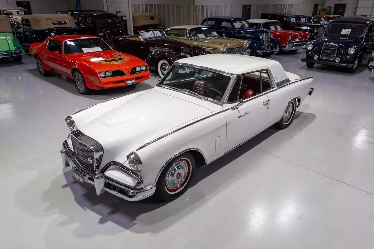 This 1962 Studebaker Gran Truismo Hawk sports a European design influences with fantastic options and is ready to become your next great American classic! By the early 1960s, Studebaker was struggling as evidenced by a sales drop of over 20 percent in 1961 compared to 1960. Perhaps an even more obvious showing of Studebaker's financial troubles is best shown by a comparison of its sales of 103,000 units in 1961, compared to Chevrolet which sold 343,000 Bel Air models; yes, you read that right, a single Chevrolet model outsold the entirety of Studebaker's lineup in 1961. Looking to shake things up, Studebaker's newly minted president, Sherwood H. Egbert, turned to his friend Brooks Stevens, a renowned industrial designer who transformed Willys' passenger car line in the mid-50s, to restyle Studebaker's aging Hawk line. The resulting car was sporty yet luxurious, modern yet timeless, and European-looking but still proudly American. In addition to a brand-new look and feel, the Hawk name was also updated from the standard Hawk to the Gran Turismo Hawk (or GT Hawk for short). The new 1962 Studebaker Gran Turismo Hawk was introduced to the public on the evening of Sunday October 29, 1961, during an advertisement on the famous "Mr. Ed" television program and the next day the '62 GT Hawk was available for public viewing in Studebaker's dealerships nationwide. Despite initially being based on Raymond Loewy's gorgeous '53 Starliner Coupe, the 1962 Gran Turismo looked like a brand new car from nearly every angle, both inside and out. At the nose, a brand new stamped grille with large heavy chrome surrounding band gave the new GT an elegant European look up front. Perhaps the most notable changes were visible from the Gran Turismo's side profile. The roofline was flattened and squared off, further modernizing the GT Hawk's side silhouette. The side beltline trim was also removed in 1962 and replaced with bright rocker panel moldings, providing for a cleaner, updated look as well. Stevens also removed the Hawk's b-pillar returning the Hawk to an open hardtop look, something not seen in the Hawk line since 1958. The rear-end treatment was also updated considerably. Stevens' design was quick to remove the outdated-looking fins on rear quarter panels. The decklid also sported updated trim comprised of a with a simulated grille design. The rear window was also modernized with a new recessed appearance, completing the modernization of the Hawk's exterior. The GT Hawk's interiors were also upgraded considerably during the major '62 redesign. 1962 was actually the second year for bucket seats in the Studebaker Hawk and the design for 1962 was significantly updated from the previous year and now featured a center console with a small storage compartment and ashtray incorporated into the layout. The other substantial update occurring in the '62 Gran Turismo's interior was the new-look, woodgrain-trimmed, three-panel instrument cluster that almost looked like it was straight out of an airplane's cockpit with a touch of European luxury. While the new '62 Gran Turismo Hawk outsold the '61 Hawks by more the 2.5 times, a mere 9,335 GT Hawks were produced in 1962 which makes this particular example quite a rare piece of automotive history. This particular Gran Turismo comes to us from the hands of a southern based collector who clearly took great care of this classic Studebaker while under their stewardship. Under the hood on this '62 GT Hawk is a 289 cubic inch Studebaker V8 fed by a single 2 barrel carburetor that together were said to have created 210 horsepower when new. The Studebaker 289 is mated to an Automatic transmission that makes this Gran Turismo an easy car for just about anybody to take for a spin around the block. Exhaust exits this Studebaker's power plant via dual exhaust setup that generates a terrific throaty sound out of the rear tailpipes. This '62 Studebaker GT is loaded with options! With power steering, squeezing into a tight parking space at the local car show or drive-in is almost effortless and can be accomplished one-handed. A pair of chrome outside mirrors further help with parking efforts and improve the overall driving experience because you have improved visibility from the cockpit of this classic Studebaker. Riding on a set of whitewall radial tires mounted on painted steel wheels and accented with full Studebaker wheel covers, this Gran Turismo Hawk has a fantastic look and even better ride cruising down the road. The brightwork around the exterior of this Studebaker GT looks great! The body of this Studebaker Hawk has been refinished in beautiful Ermine White paint that completes the exterior look of the car. The interior of this 1962 Studebaker Gran Turismo Hawk is absolutely gorgeous! The front bucket seats and center console, along with the rear bench seat have been restored in red upholstery that provides a European-inspired look. The matching red and stainless trimmed door panels, red carpeting, steering wheel, and black padded dash all appear to be in wonderful shape as well and all retain a beautiful stock appearance. The three-panel woodgrain-trimmed instrument cluster provides a wide array of instrumentation including a 120 MPH speedometer, 6,000 RPM tachometer, oil pressure gauge, amp gauge, temperature gauge, and fuel gauge, along with a clock, odometer, and turn signal indicators. The perforated metal dash is finished off with a glove box, push-button AM radio, and various other controls. Whether you're buying your very first collector car or you're adding to an existing collection of classic cars, this 1962 Studebaker Gran Turismo Hawk would make an excellent choice. Give Ellingson's a call today at763-428-7337!