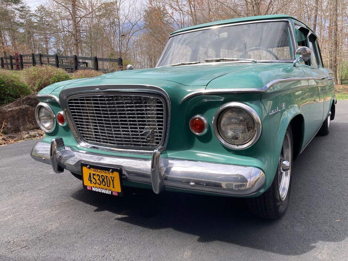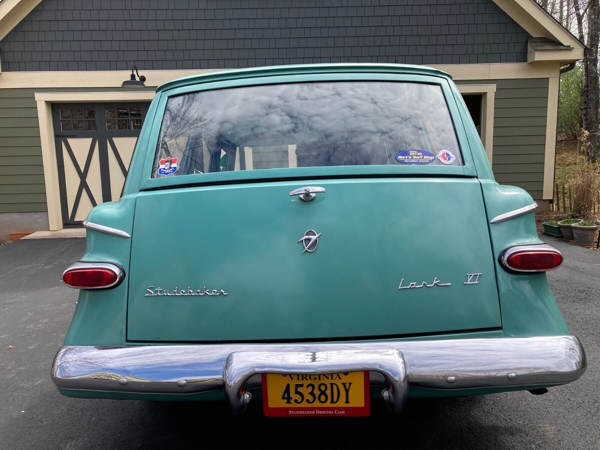Beautiful, partially restored/mostly original 1961 Studebaker Lark VI Deluxe 4-door wagon finished in Jade Green and car show ready. This car was offered for sale by Harwood Motors in Macedonia, Ohio for $16,900 and purchased by the prior owner in October 2021 (sales receipts provided and photo included showing the car with stock wheels that also come with the car). Let me know if you'd like a link to see the original listing and photos from 2021. Approximately 2,000 miles have been added since and the odometer now reads 87,105 and is true and accurate. The clean Virginia title shows as "actual miles".This Lark was originally sold by Shaull & Hildebrand in Thomasville, Pa. for $2,569.36Build date: October 14, 1960shipped from factory: October 17,1960Serial/vin# 61S9409engine# S-181285body# 755Significant upgrades and renewed parts over the past 2k miles have made this car a turn-key, well-sorted collector classic. Here's a summary of work done since December 2021:NEW Turner split master brake cylinderNEW brake shoesNEW brake hosesNEW shocks front and rearNew Radiator, thermostat and hosesElectronic ignition cutoff security switch under dashNEW electric fuel pump (with dash mounted on/off switch)Remain mechanical fuel pumpNew points, plugs, condenser and spark plug wiresNEW hood insulation padNEW under carpet sound deadening materialNEW tachometer installed in the dash clusterNEW Studebaker brand rubber floor mats front and backNEW Strato Vue side mirrorsNEW Studebaker branded front and rear lap seat beltsNew 15" American Racing "torque thrust" wheelsNEW front chrome bumper guardsAll fluids (oil, coolant etc) changedNew filters, beltsNEW rubber door weatherstrippingNew door windlaceNEW exhaust downpipe and mufflerreplaced rear axle seals and bearingsnew correct engine bay decalsChassis greasedFront end alignmentNEW Studebaker rear mud flapsAll glass is excellent and windows roll up and down properly. The interior carpet is fairly new and factory correct. The seats and door cards are original and excellent except for one minor 2" seam split on the back center area of the front seat. The headliner is excellent. This wagon has a split rear tailgate.This was a radio delete car from the factory and has the radio delete plate with Studebaker Lark symbol. All gauges are operational.15" tires are very good and have 2019 date codes. The car will also be sold with the original Studebaker stock wheels and hubcaps as shown in photos. I have included two images of the car from the 2021 sale showing the car with the stock wheels.Beneath the rear cargo lid is a spare tire, jack and lock down bracket (see photo)Comes with original 1961 owners manual, some service and parts receipts, Studebaker Museum history reports etc.The car starts, idles, drives, shifts (three on the tree) exceptionally well and runs straight down the road. There's a minor oil leak from the rear main seal but I have never needed to add oil. The body is mostly original paint but shows signs of prior minor body work on the lower front fenders. Typical dings and scratches but the paint shows well and the chrome is very good.This is a collector owned car and has always been garaged. Being sold on a clear Virginia title in seller's name. Currently registered, insured and on the road. Personal inspections are encouraged and welcomed by appointment. Location is Central Virginia near Charlottesville (22936). Yes, you could drive this one home!Important: Seller requires an immediate $500 non-refundable deposit with balance paid within three days by Bank Wire transfer or cash in person. I will NOT participate with Ebay's new buying assist service Caramel so contact me prior to purchase if you have any questions. I am happy to assist your shipper on pick up.
